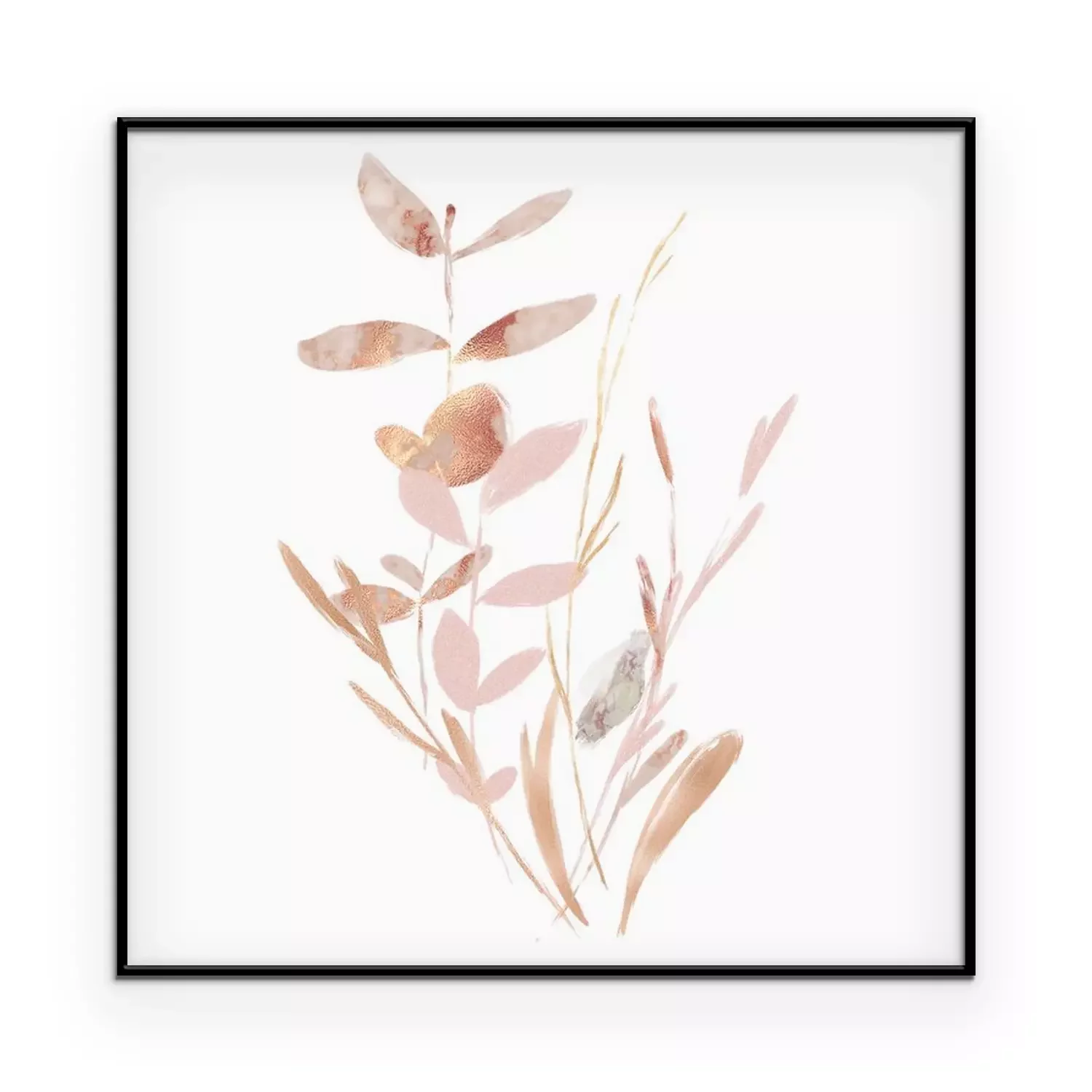 Poster: Flower Plant Botanical Frame texture Background Watercolor Gold Pink Leaf Bouquet Wedding