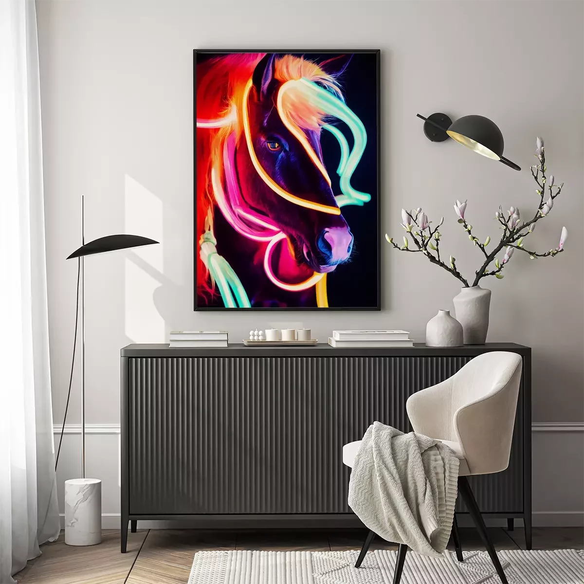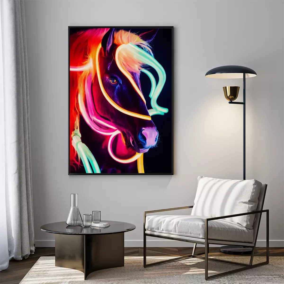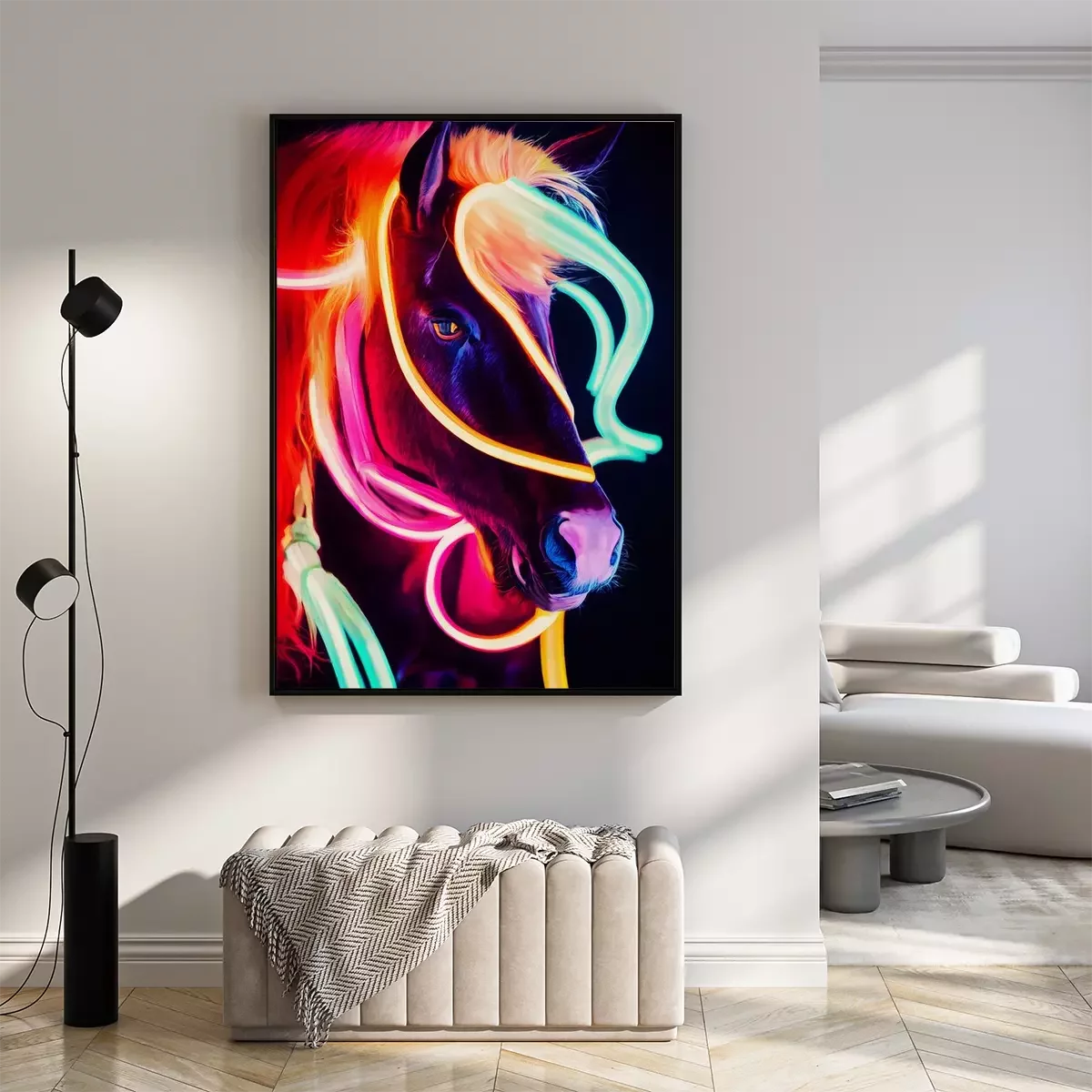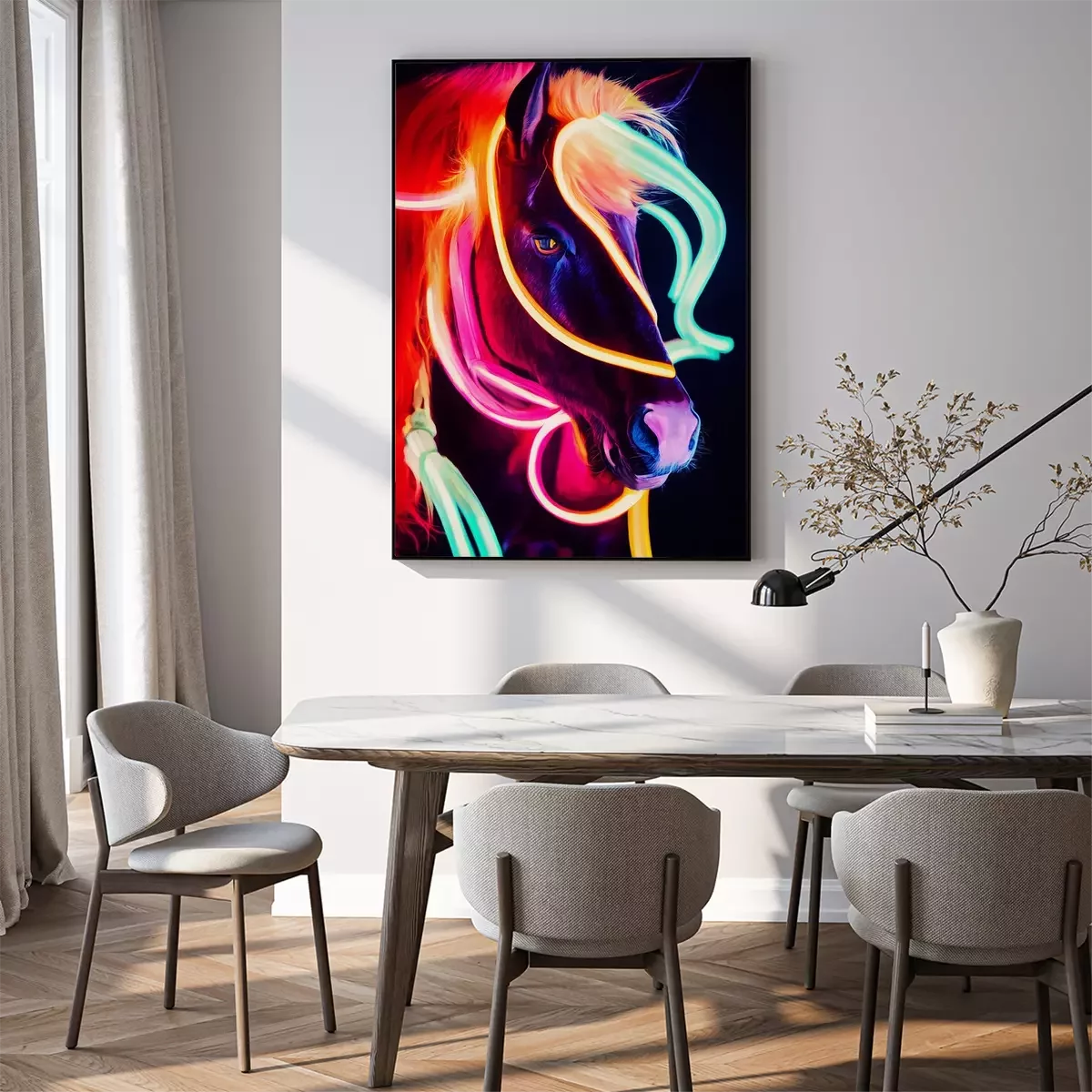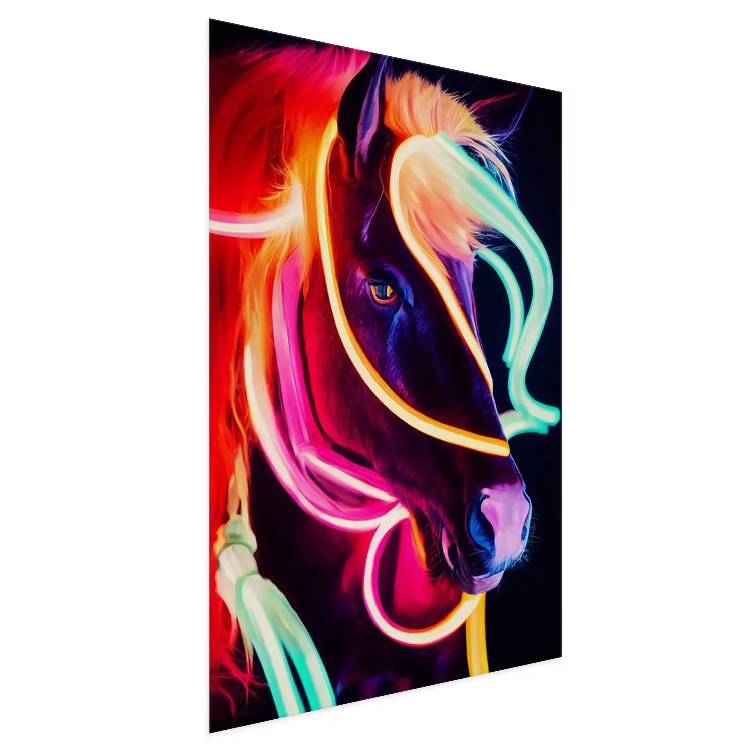 Poster: Fluorescerende kleuren van een paardenportret