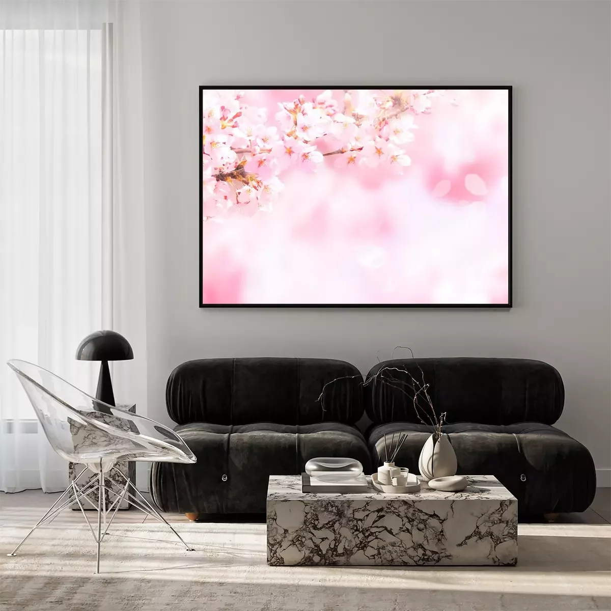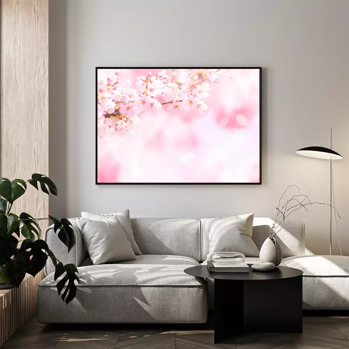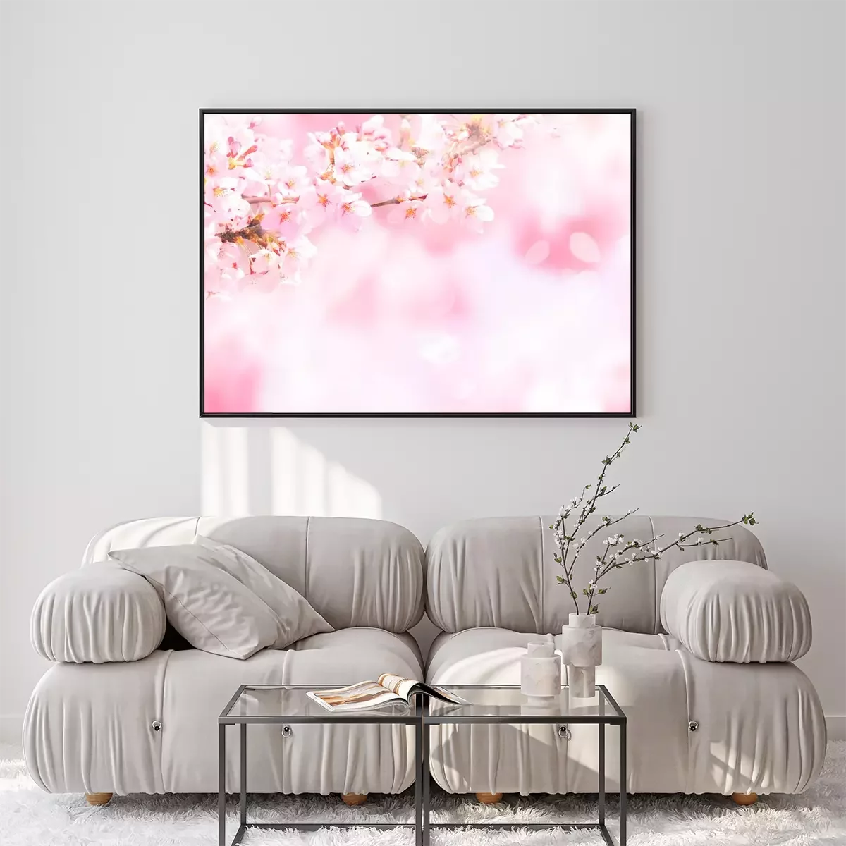 Poster: Foto van een bloeiend takje in roze kleuren