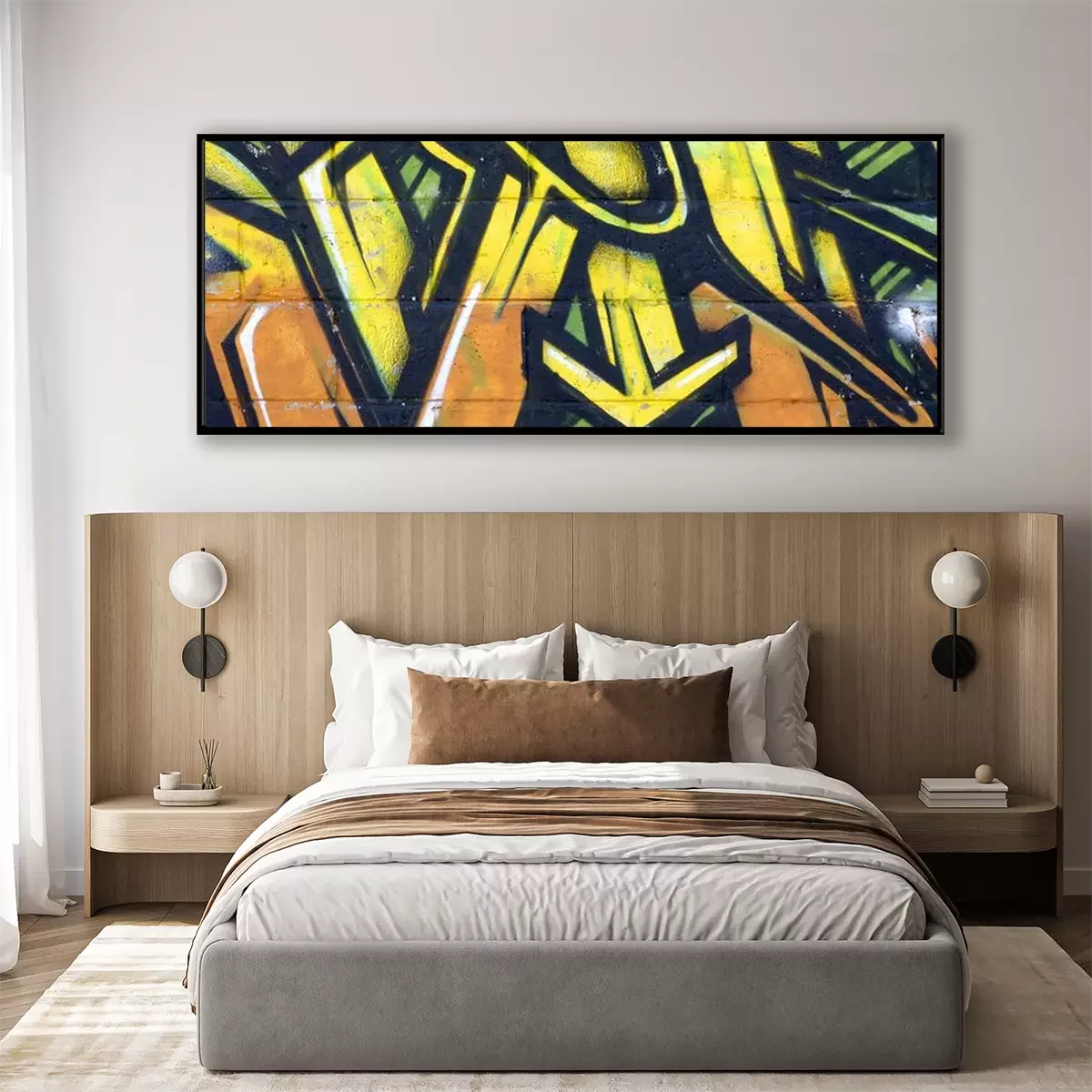 Poster: Fragment of colored street art graffiti paintings with contours and shading close up