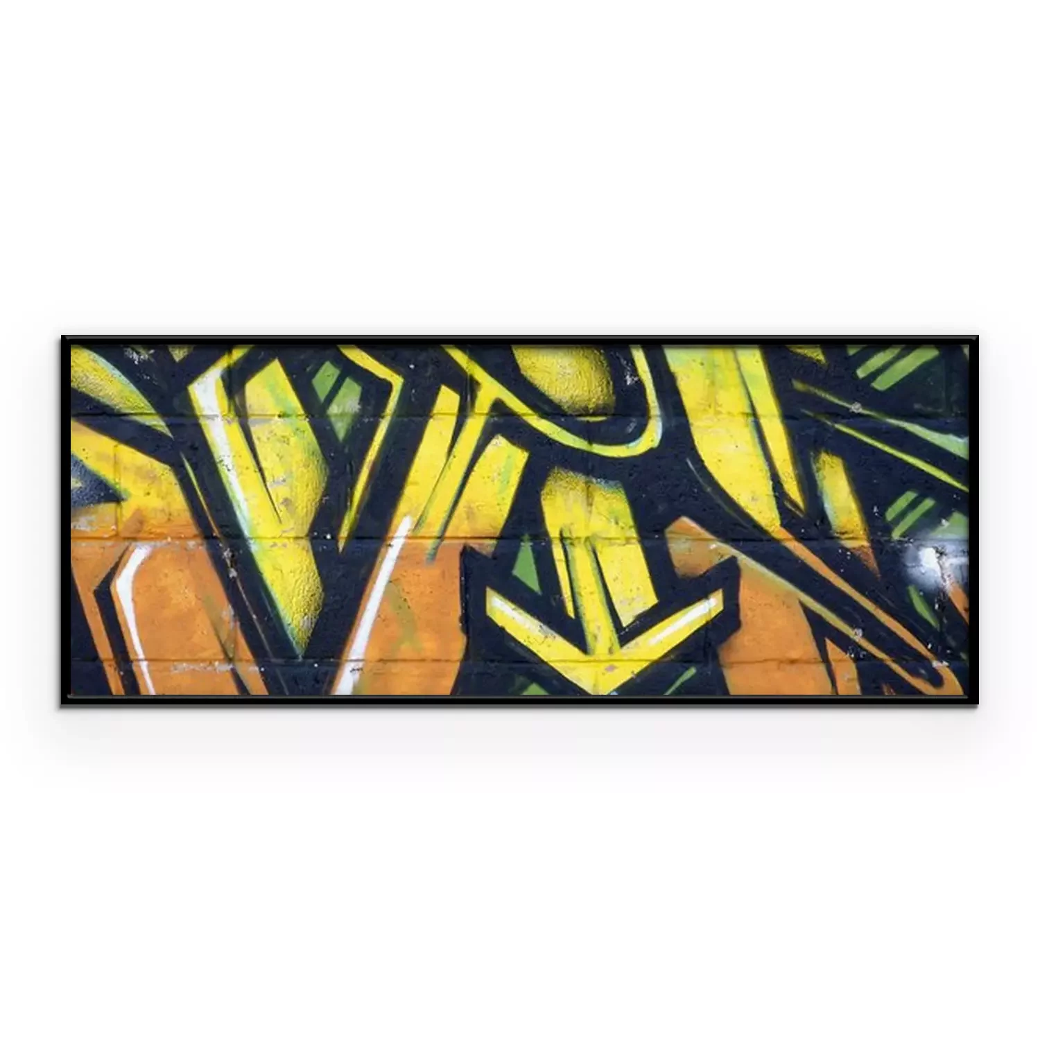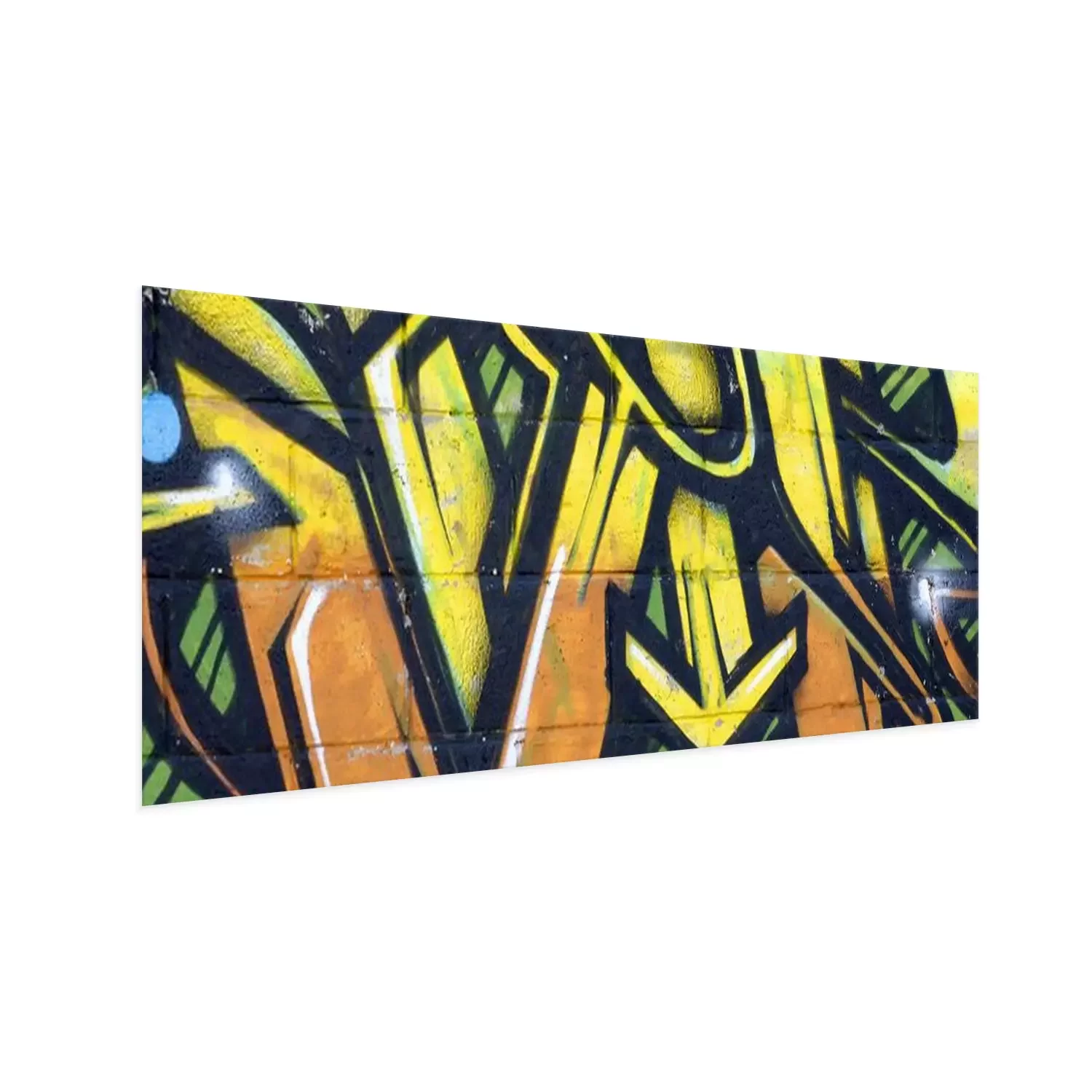 Poster Fragment of colored street art graffiti paintings with contours and shading close up