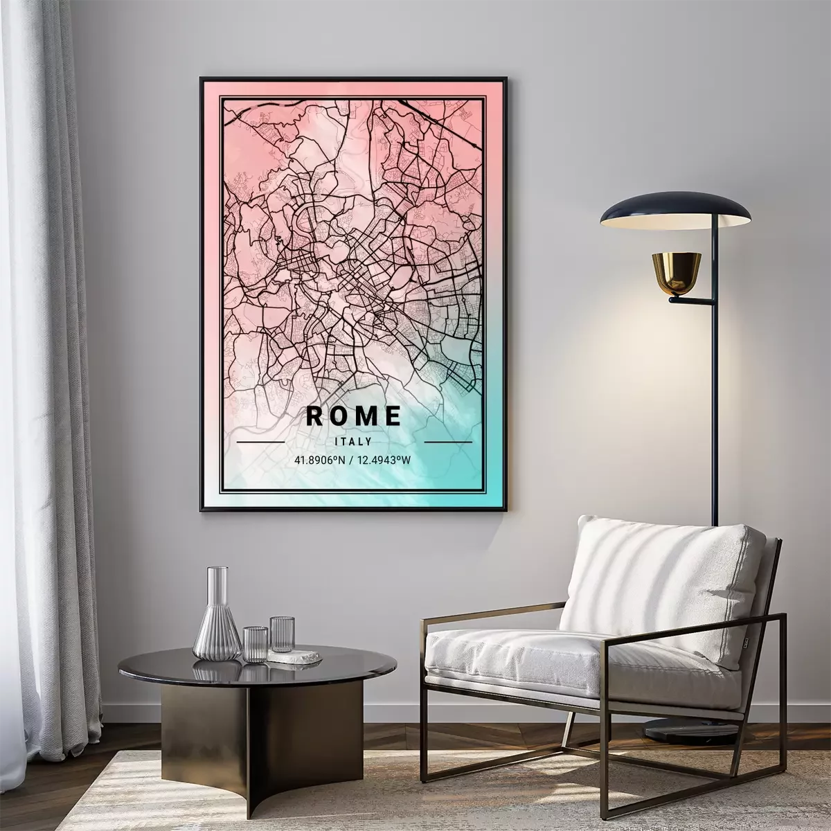 Poster Gearceerde kaart van Rome