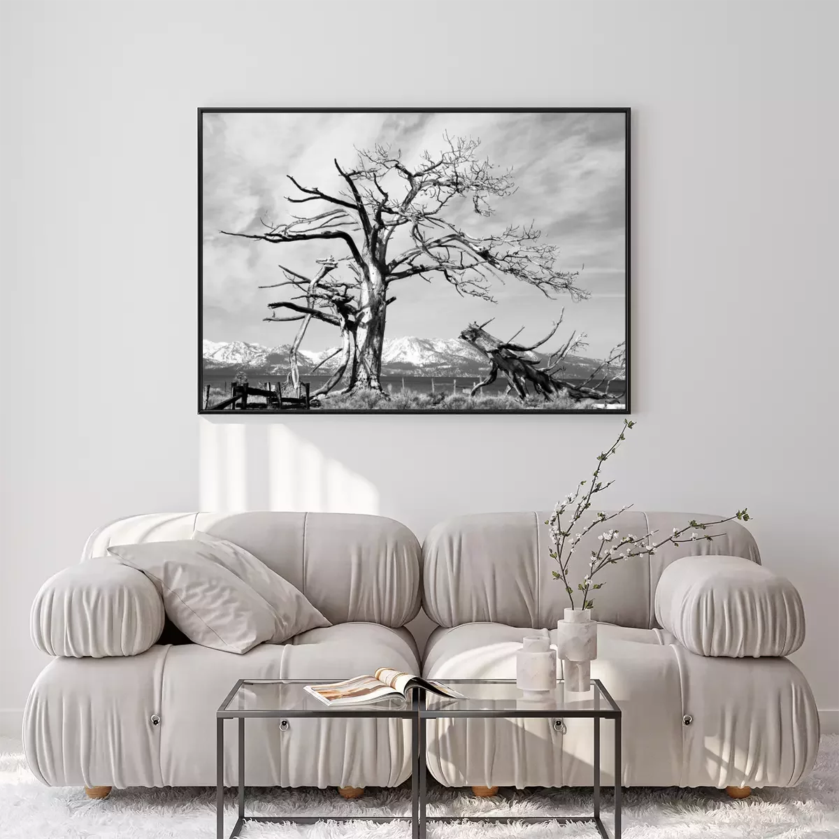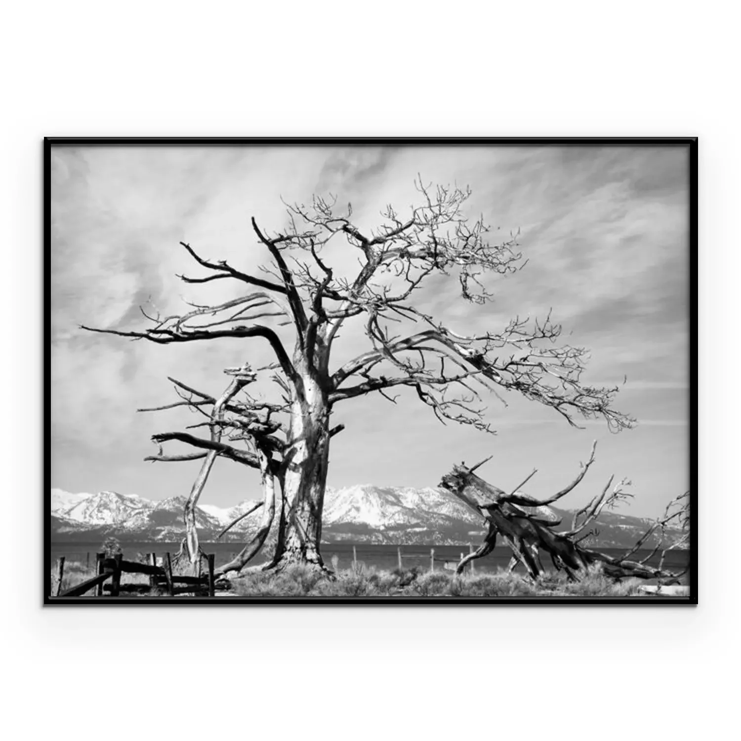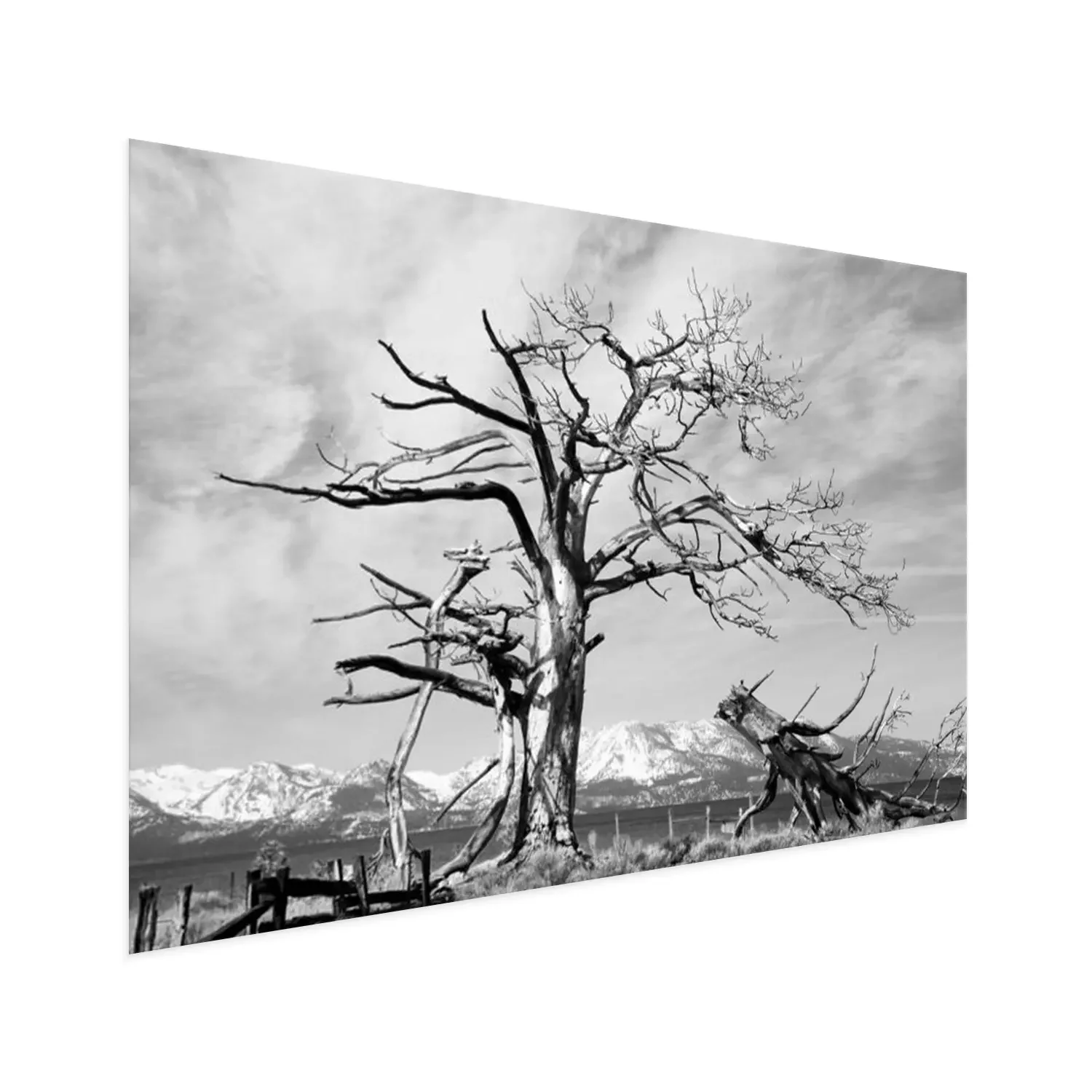 Poster: Gebroken takken tegen de achtergrond van de bergen