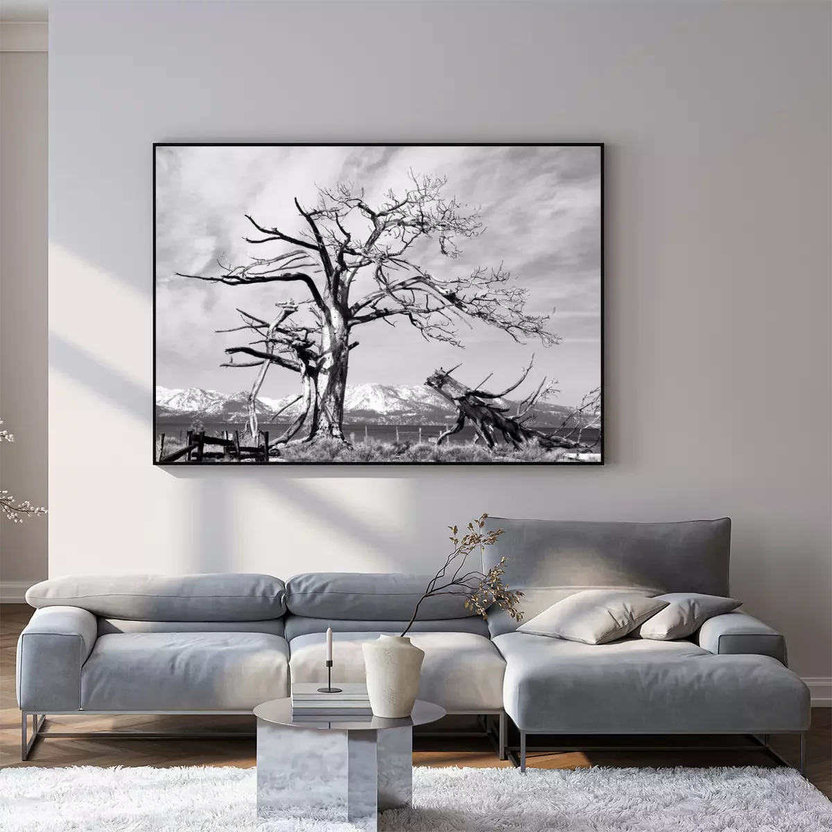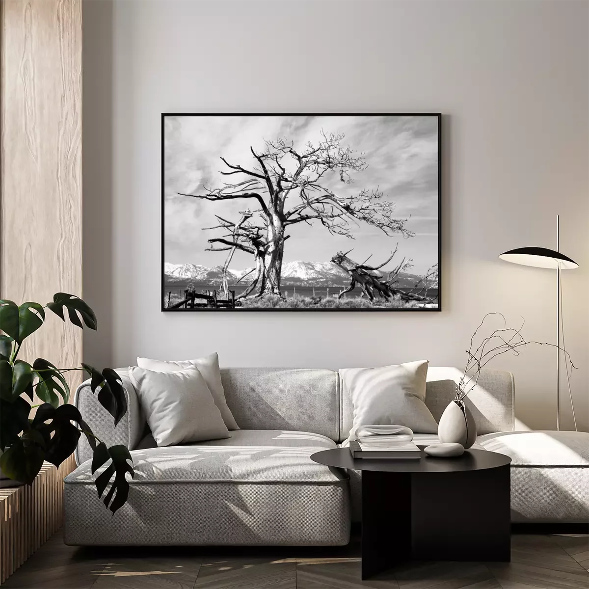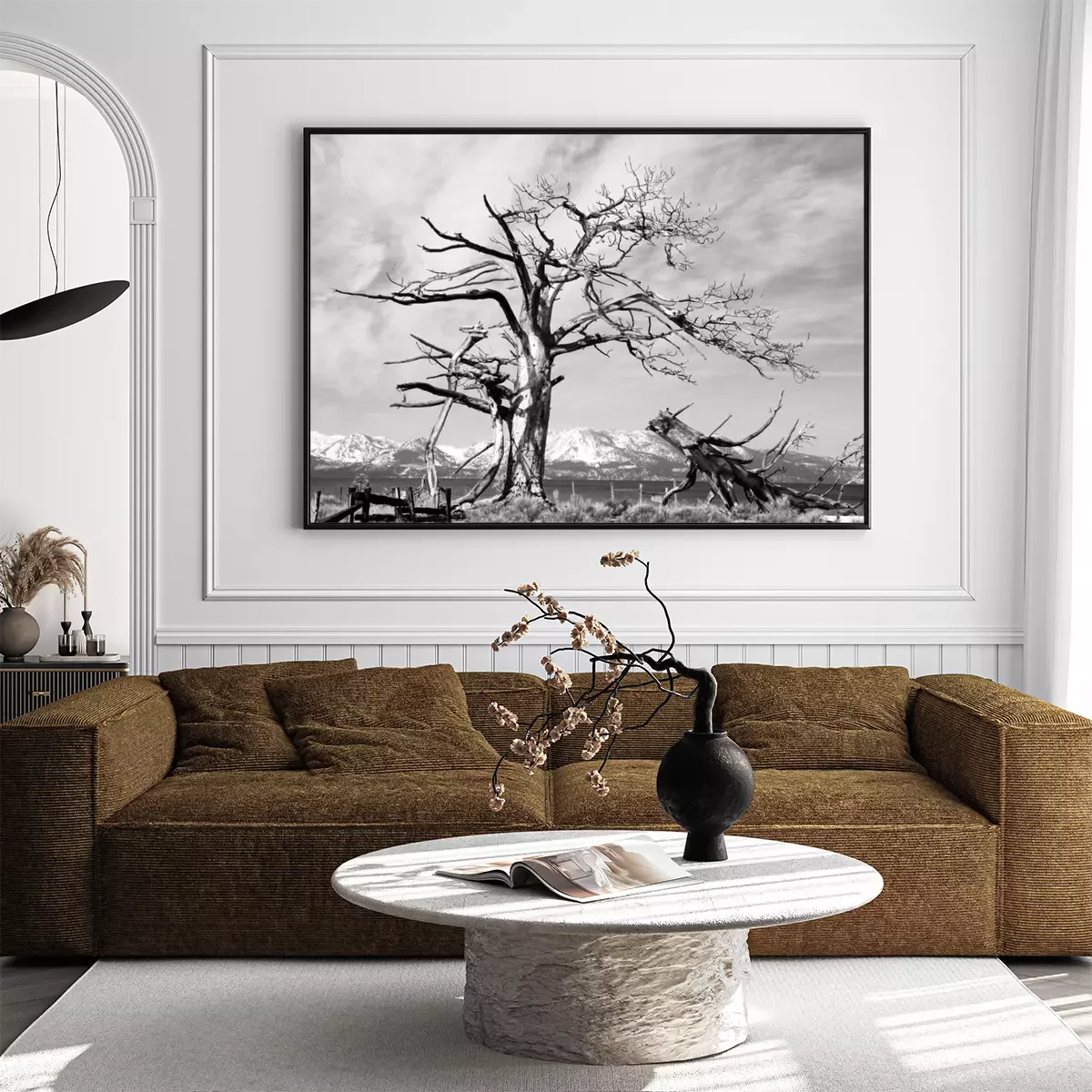 Poster: Gebroken takken tegen de achtergrond van de bergen