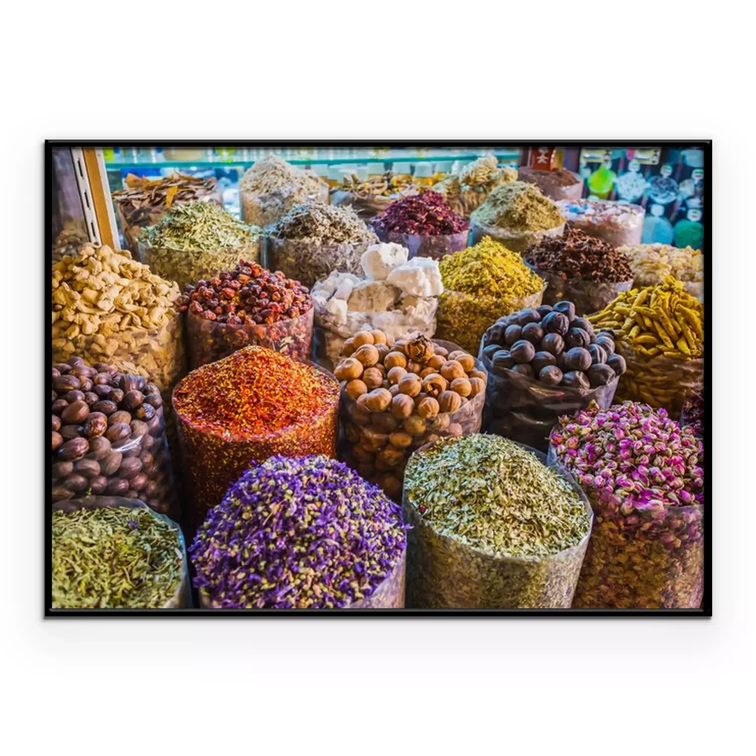 Poster gedroogde kruiden bloemen kruiden in de spice souq in Deira