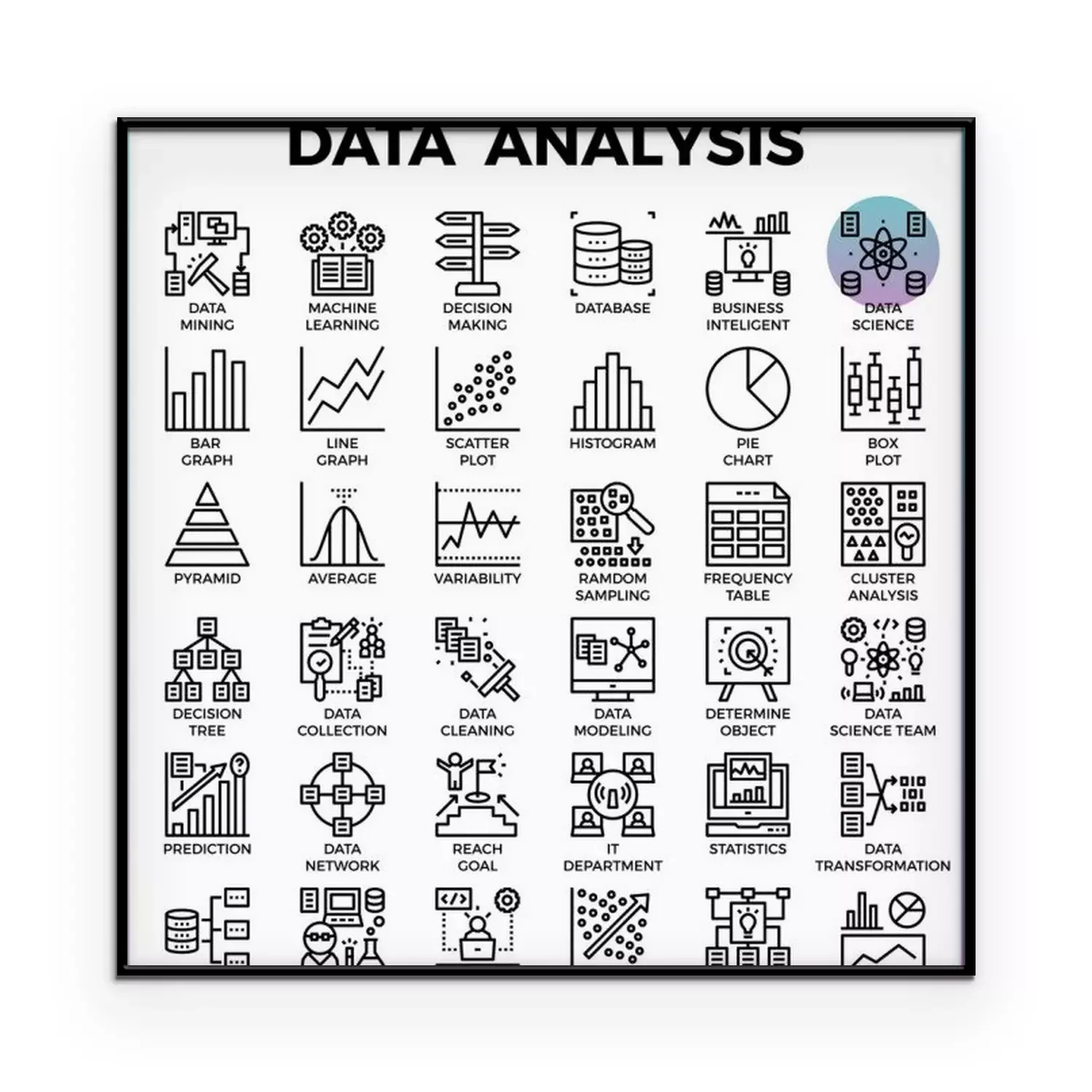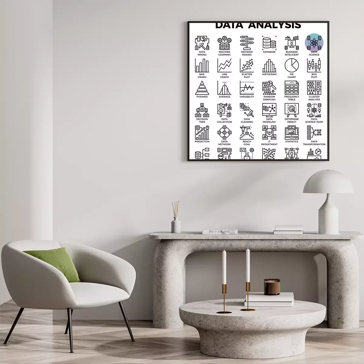 Poster: Gegevens analyse concept gedetailleerde lijn iconen