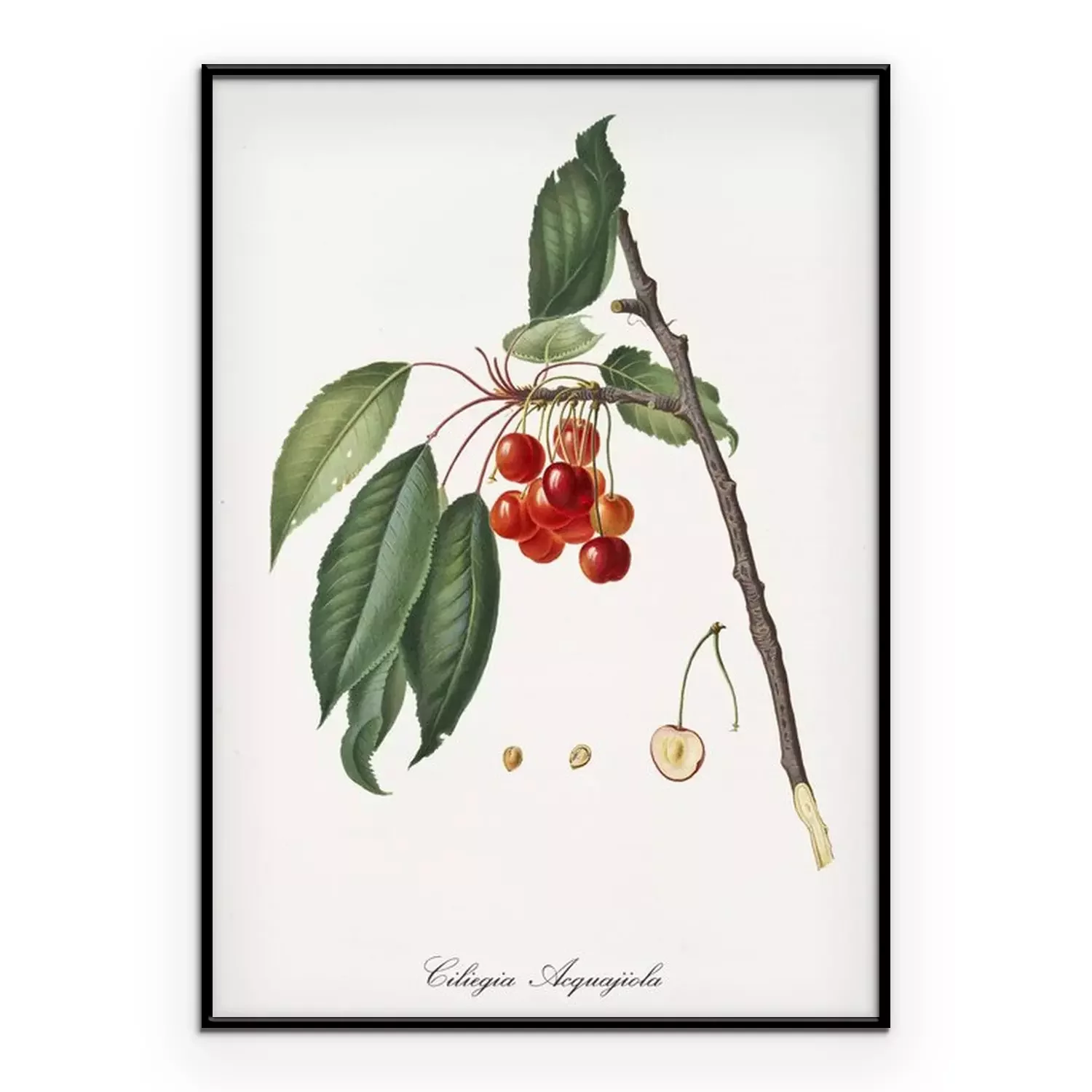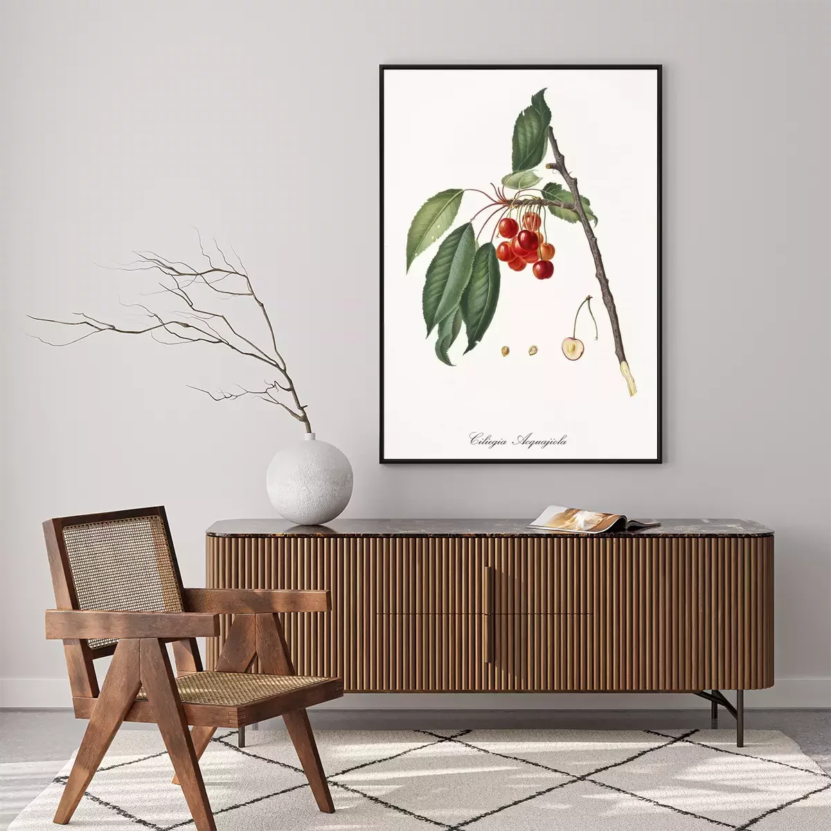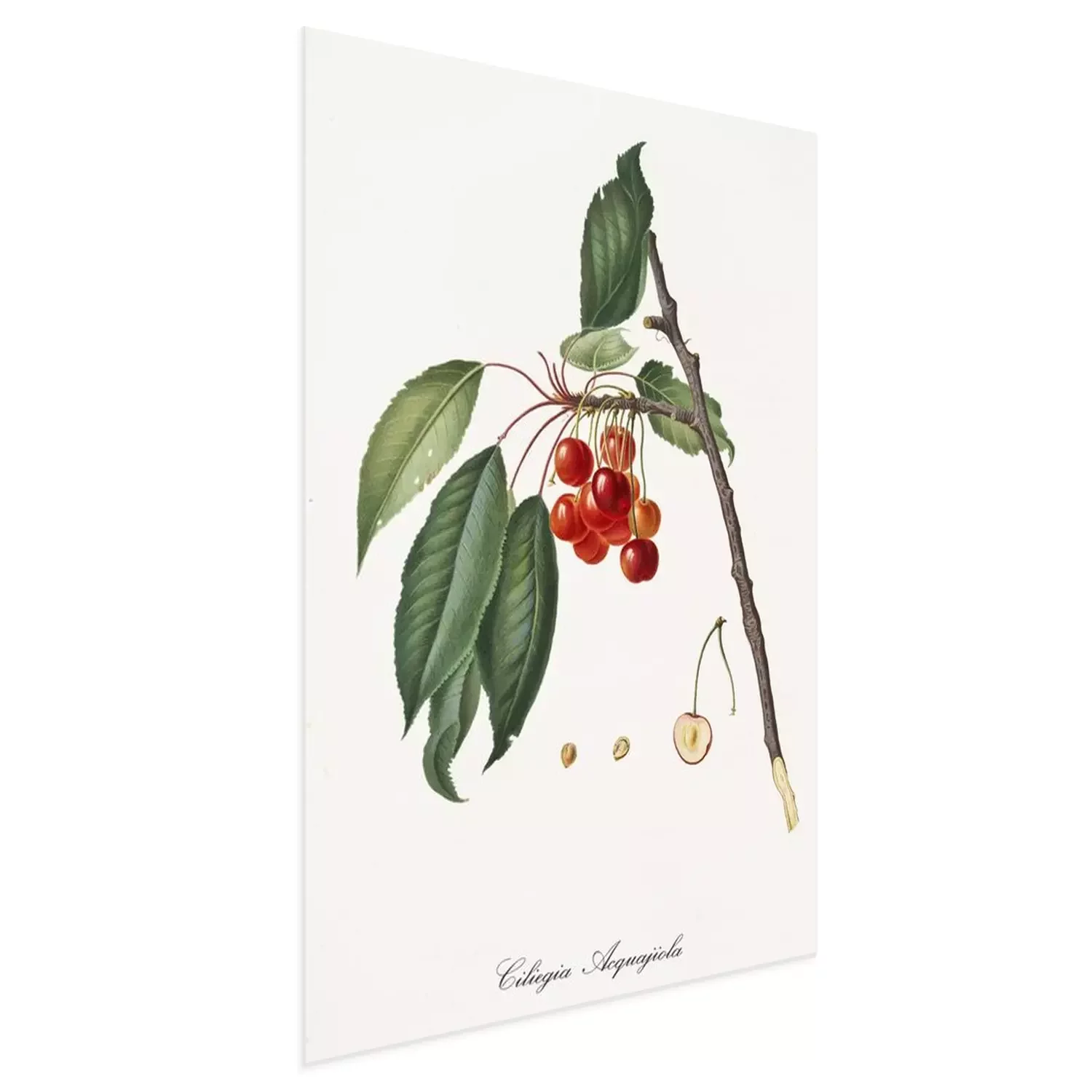 Poster: Geïllustreerd natuurtakje met bungelende kersen