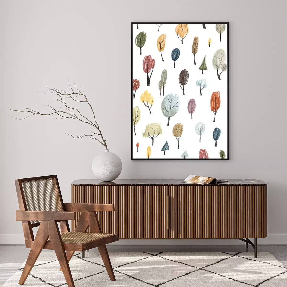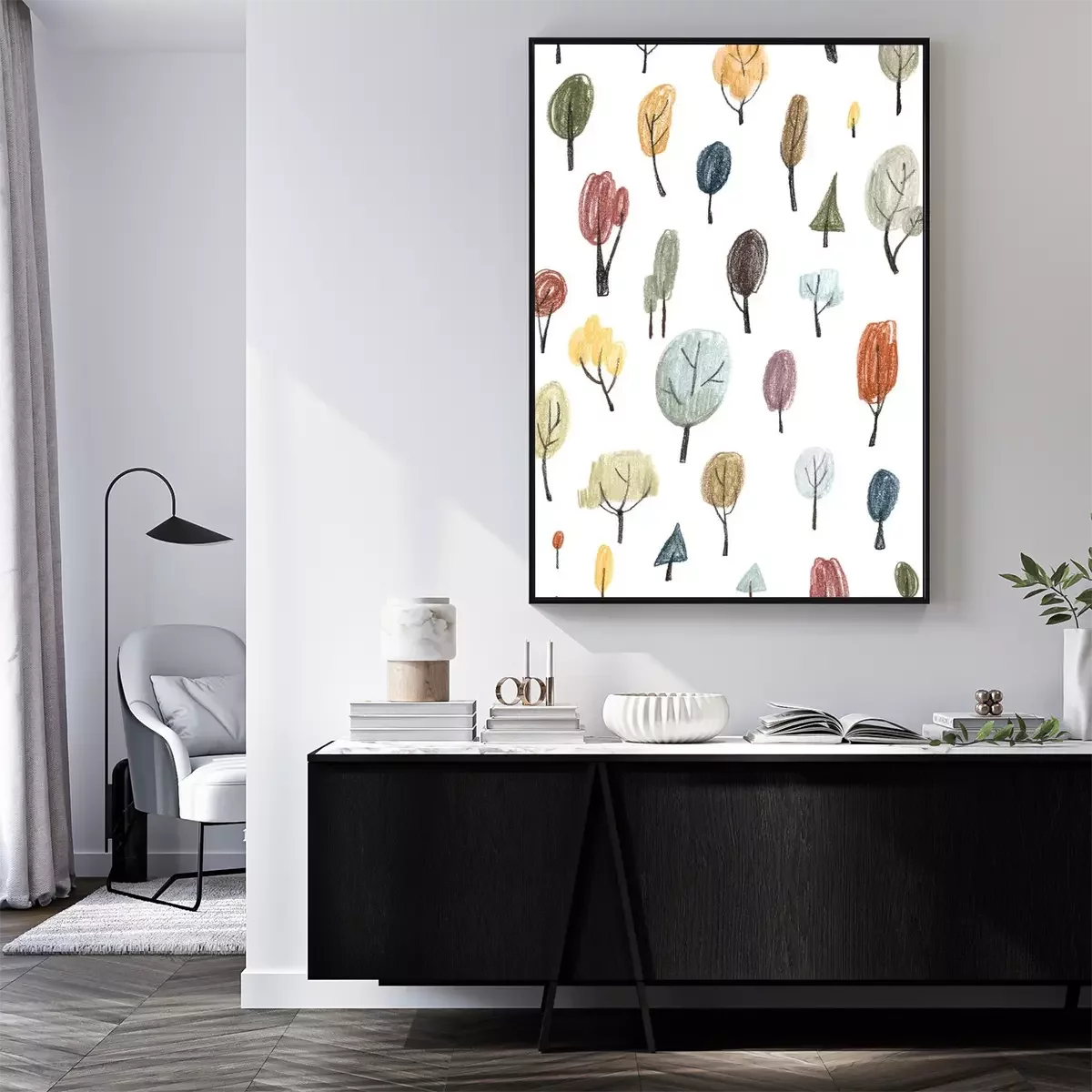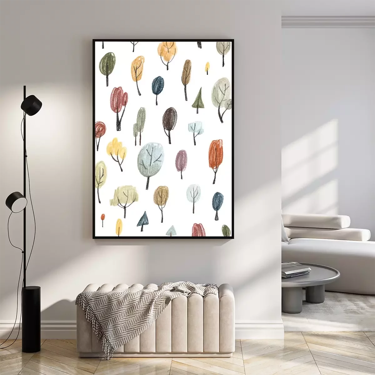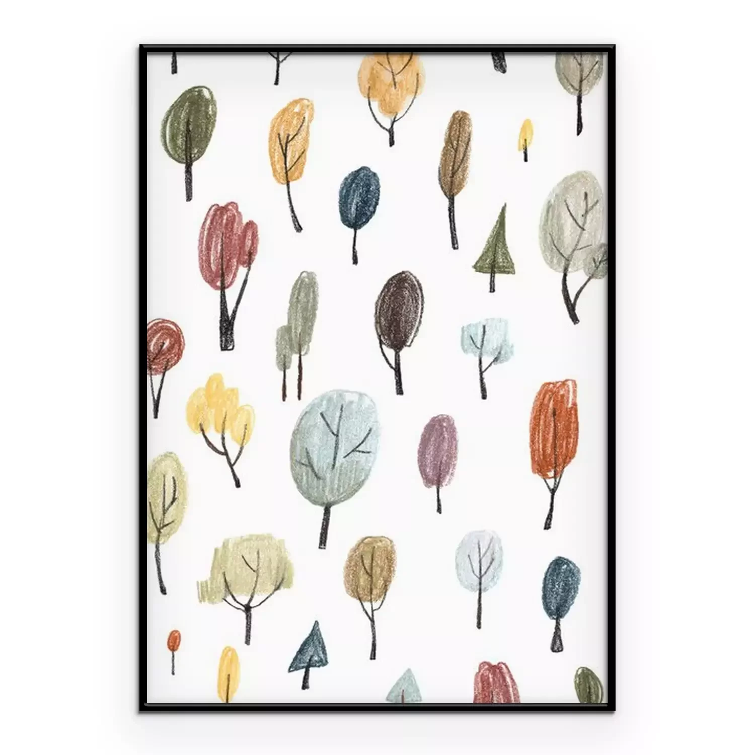 Poster: Gekleurde bomen in de stijl van een kindertekening