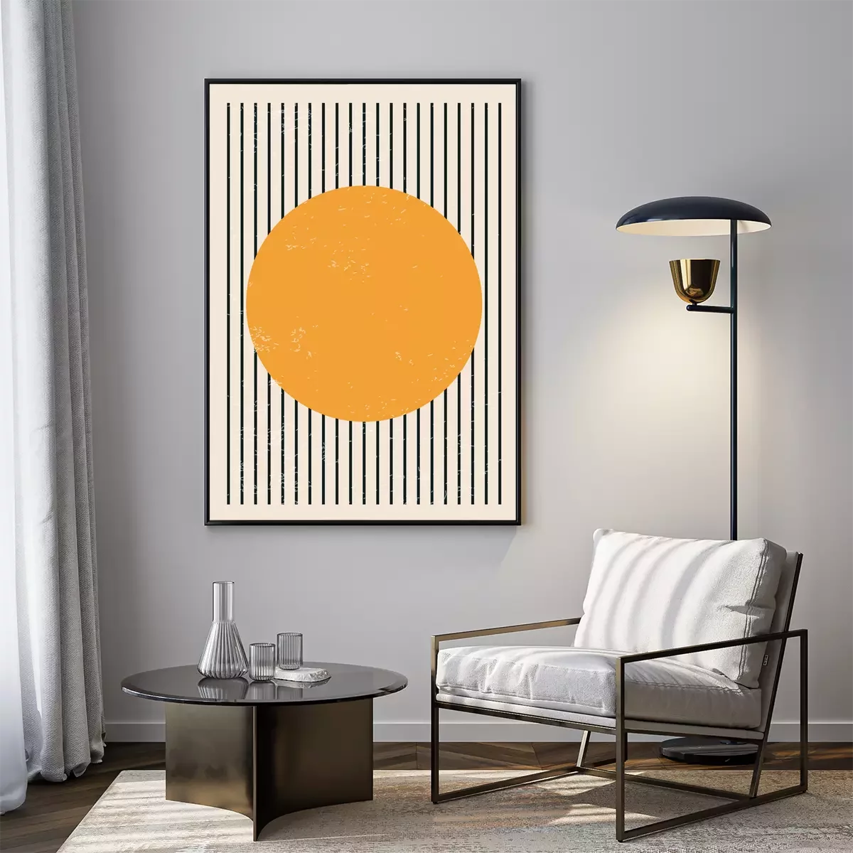 Poster: Gele cirkel op strepen