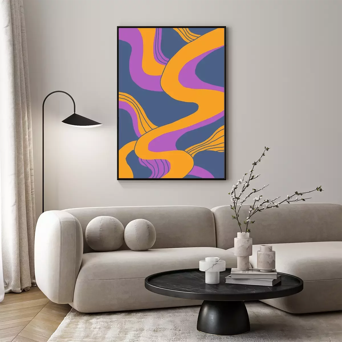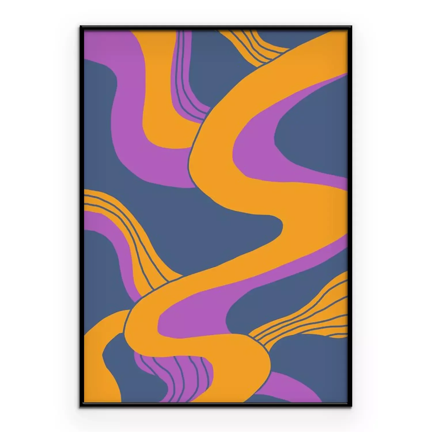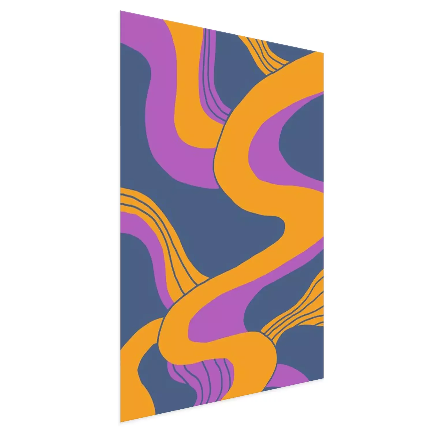 Poster: Gele en paarse wervelingen op een grafietachtergrond