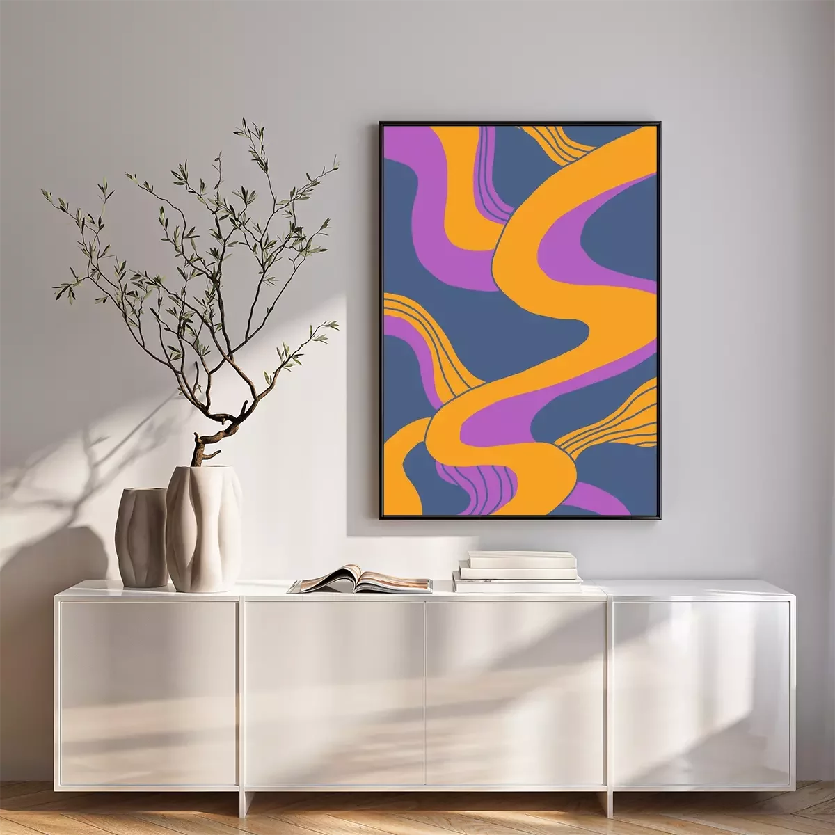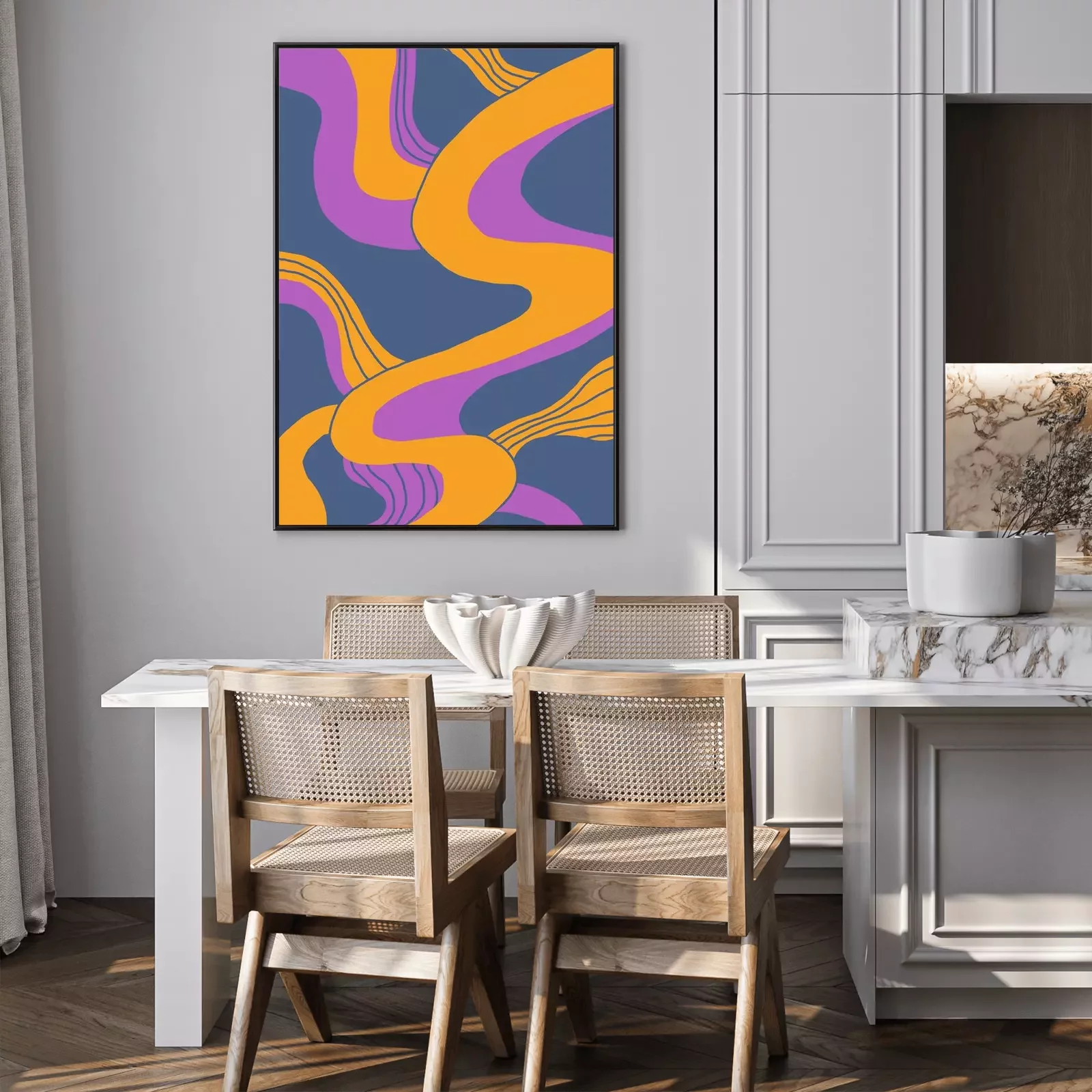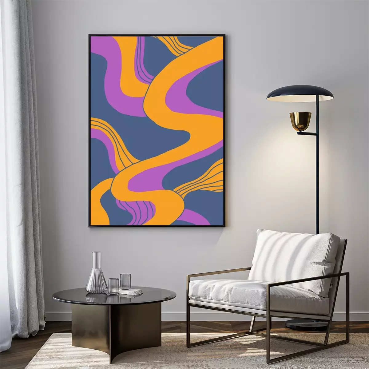 Poster: Gele en paarse wervelingen op een grafietachtergrond