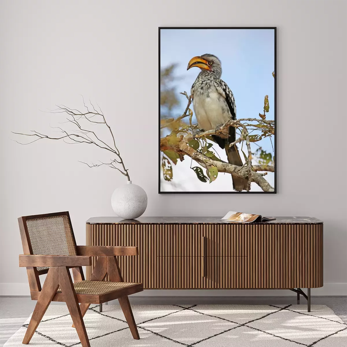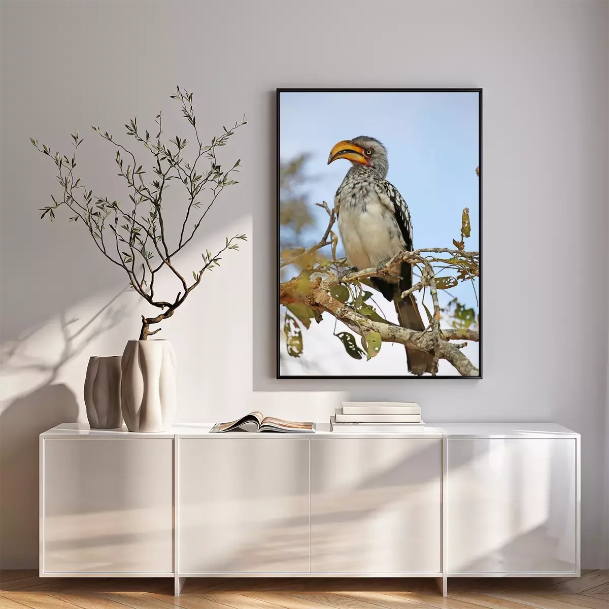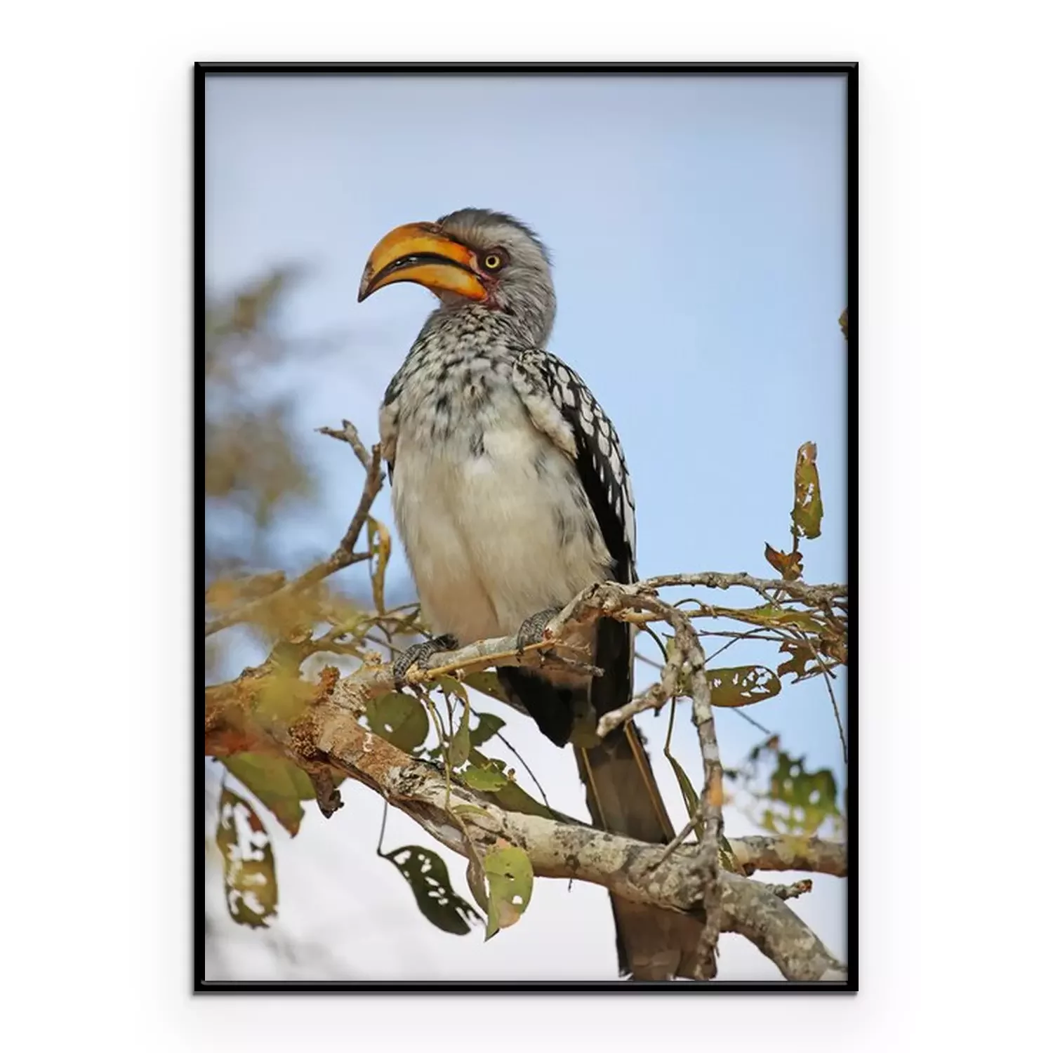 Poster: gele gefactureerde neushoornvogel. wild dier in Kruger National Park, Zuid-Afrika.