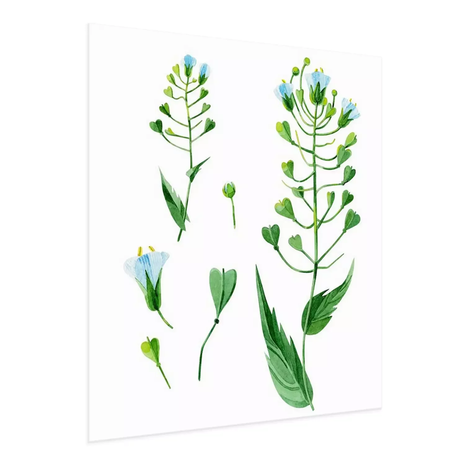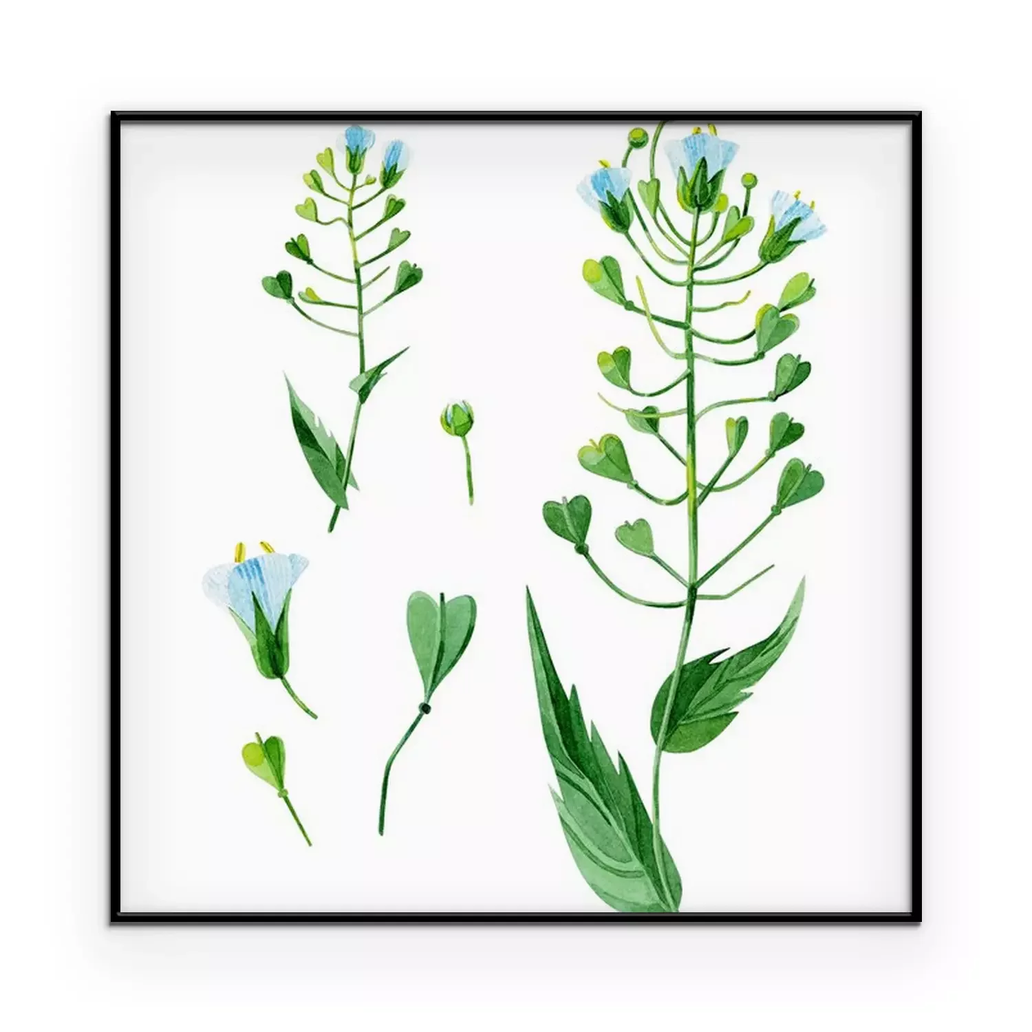 Poster: Gemeenschappelijke herderstasje met stengels bladeren en bloemen