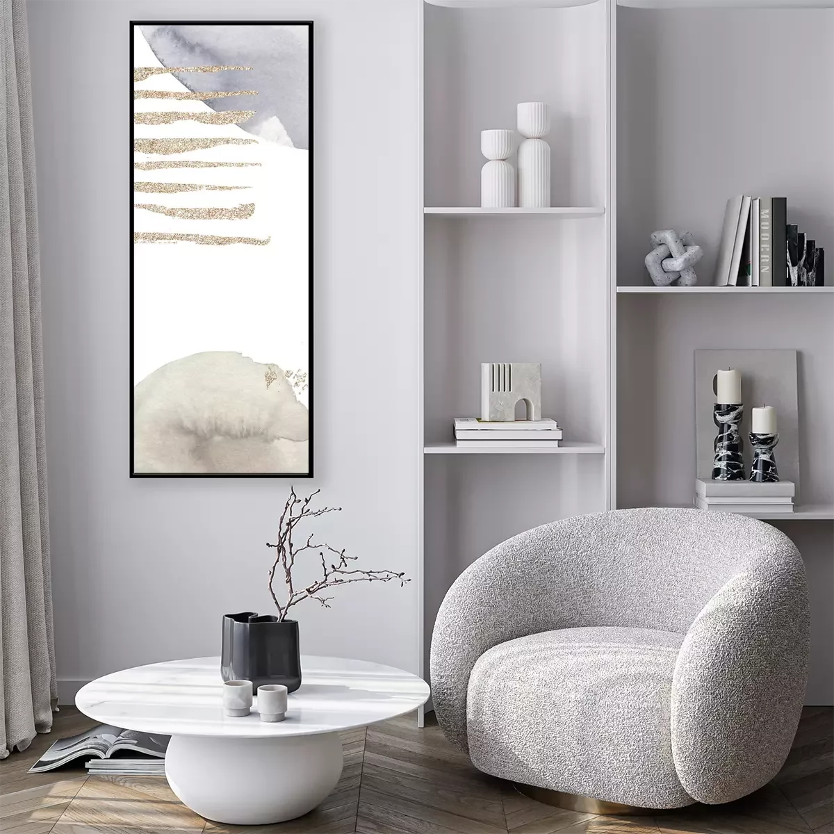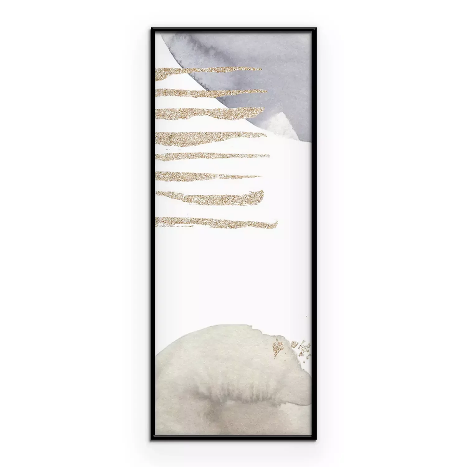 Poster Geometric poster with watercolor and gold elements on white background. Abstract nordic print. Scandinavian style. Hand drawn illustration. Mixed media art collage