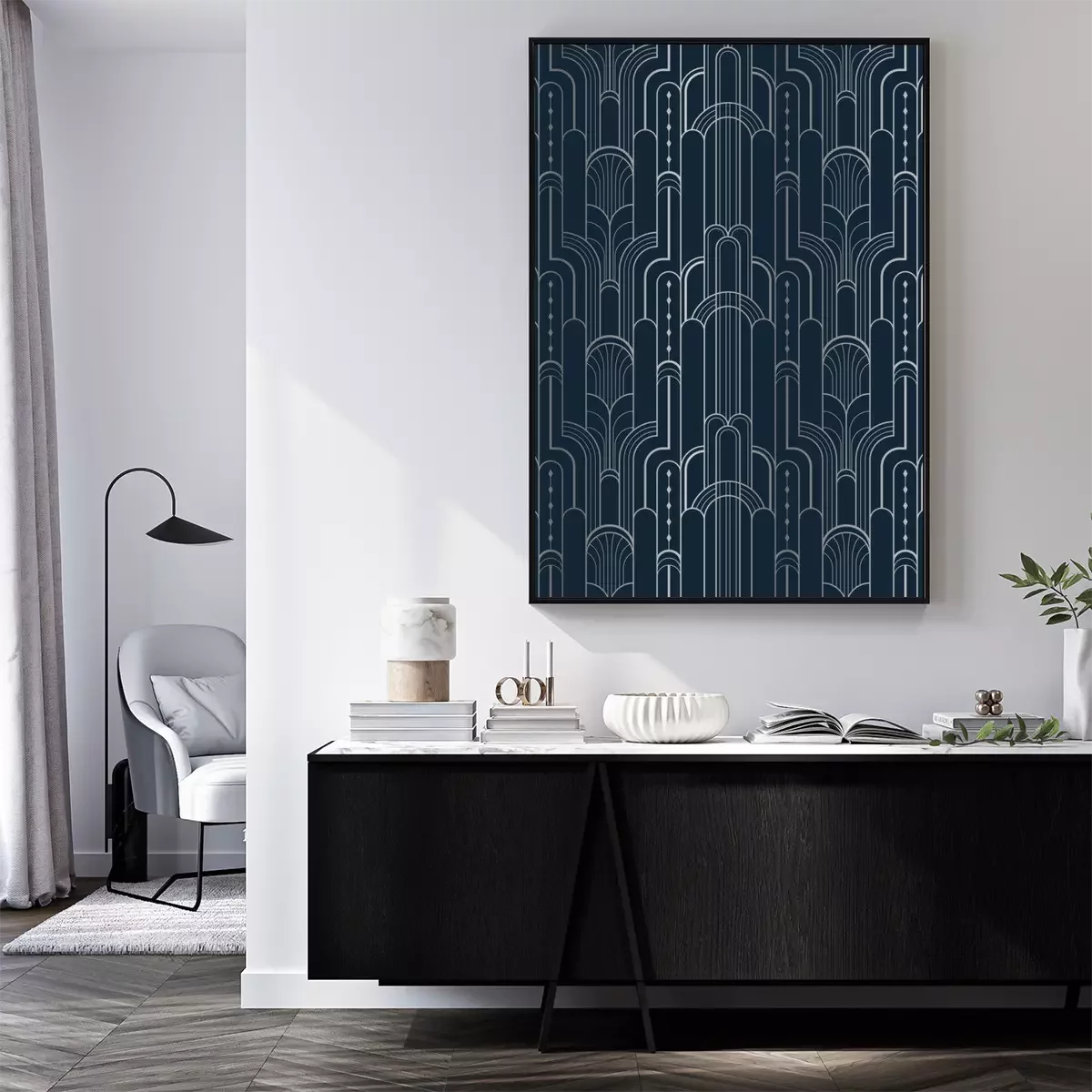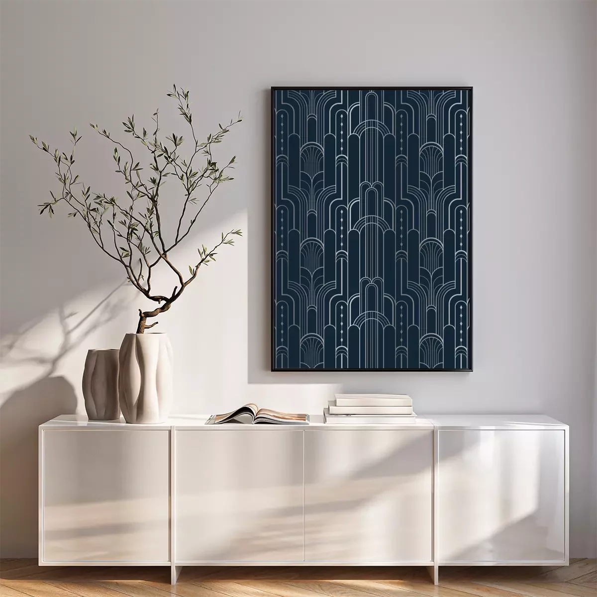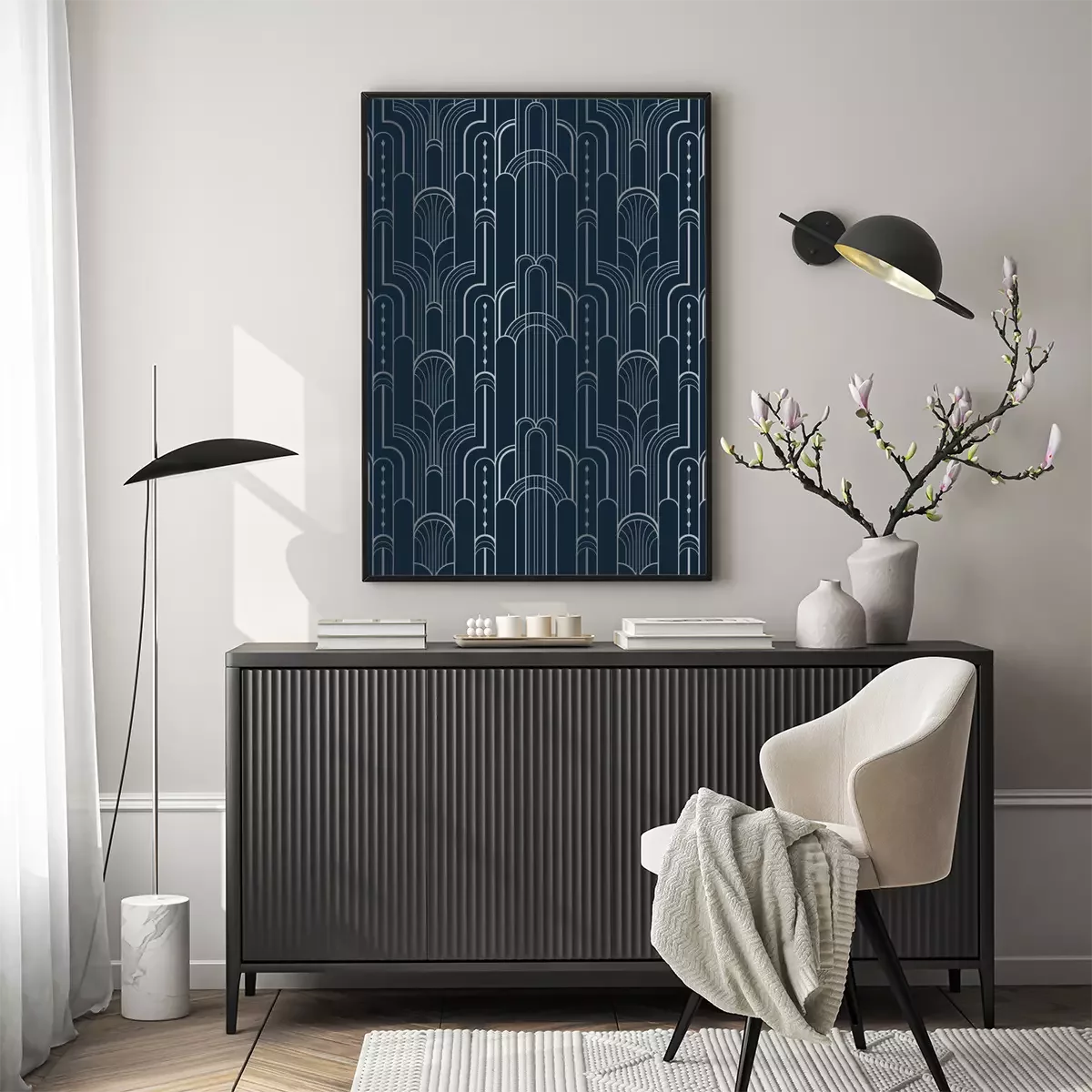 Poster: Geometrisch patroon op donkerblauwe achtergrond