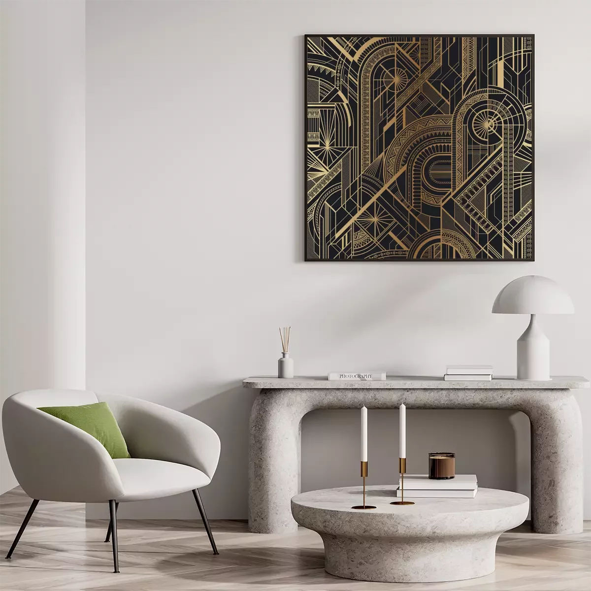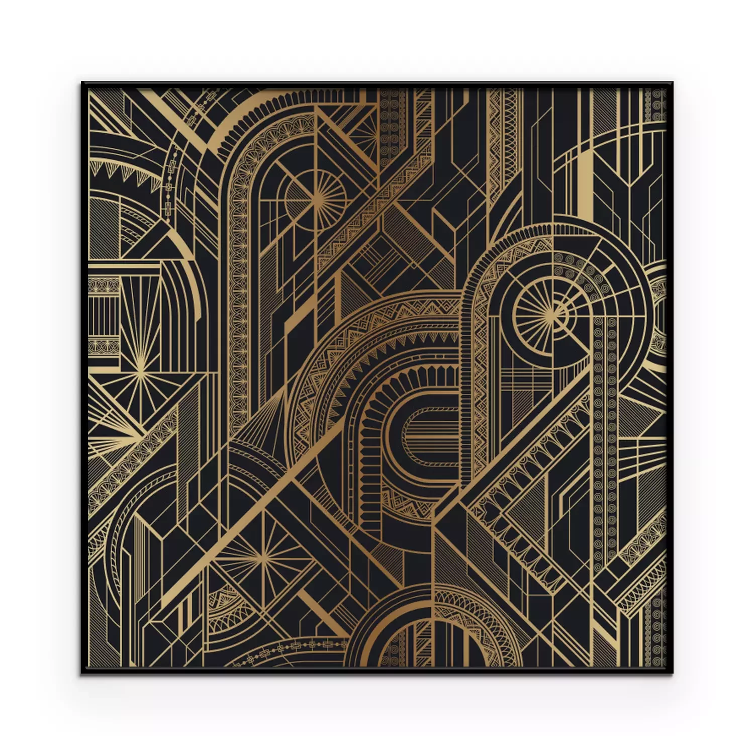 Poster: Geometrisch patroon op zwarte achtergrond in art deco stijl