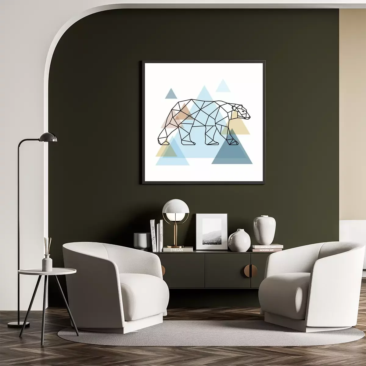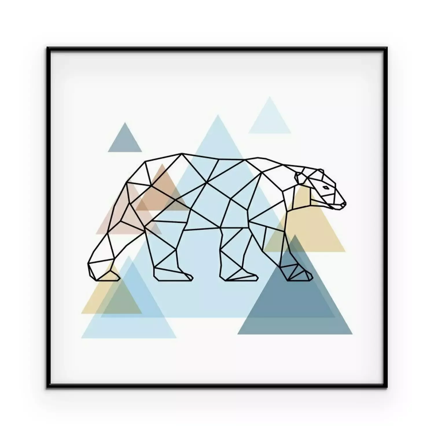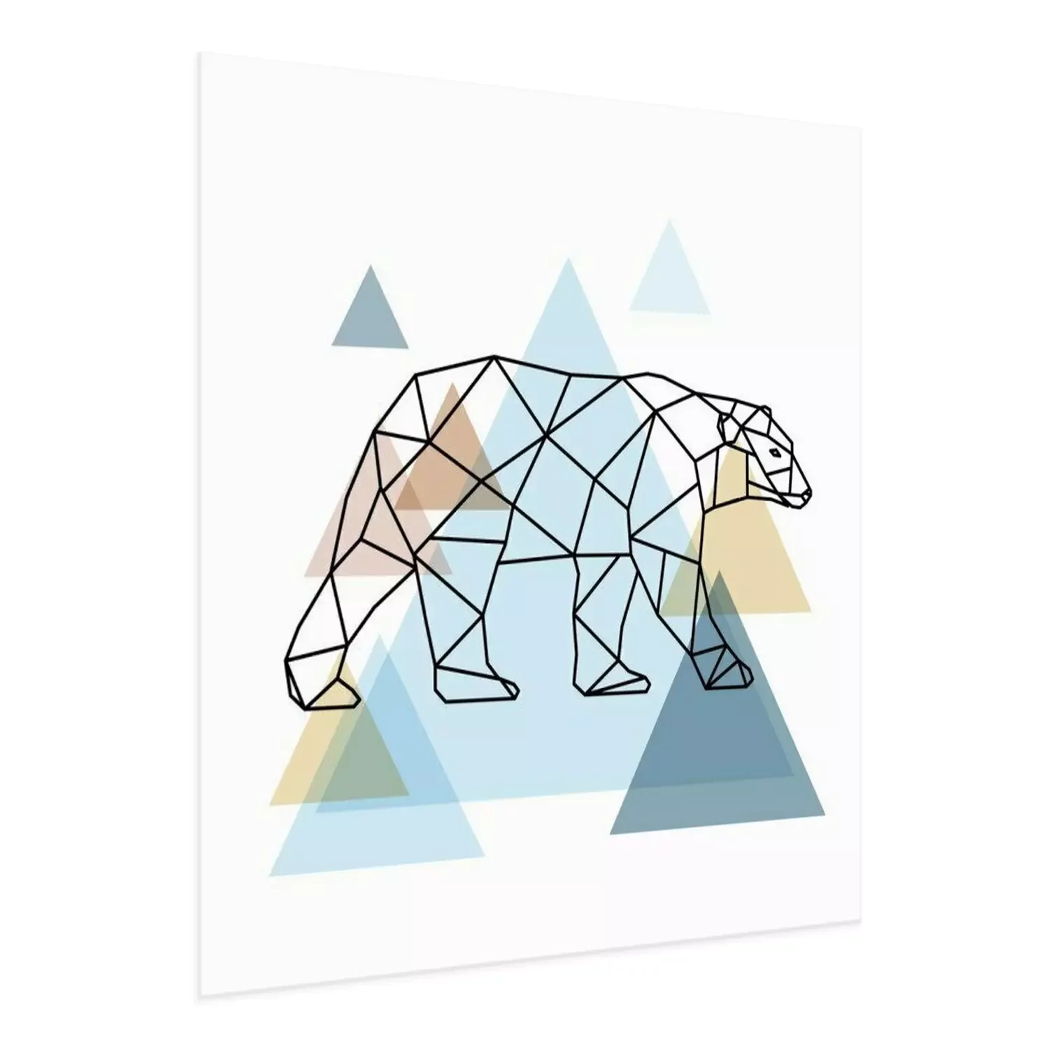 Poster: Geometrische beer op een achtergrond van driehoeken