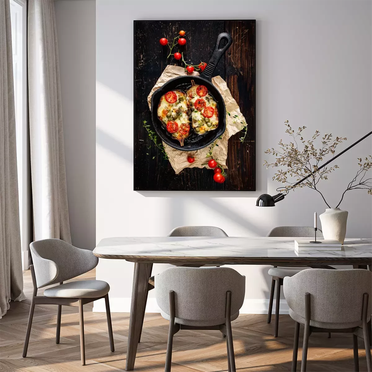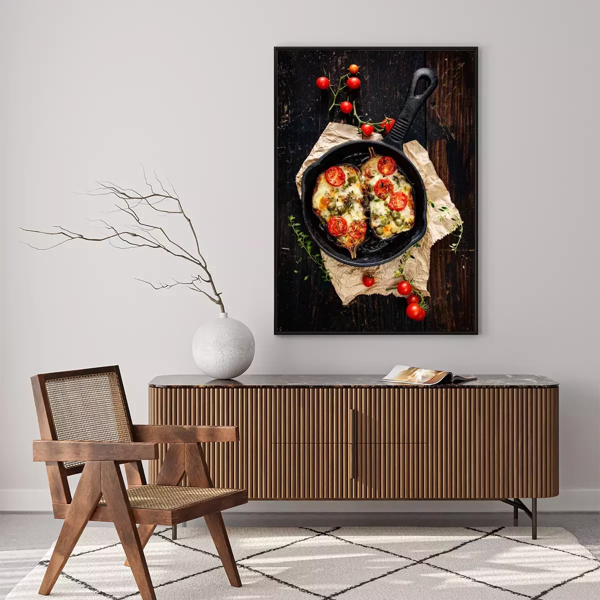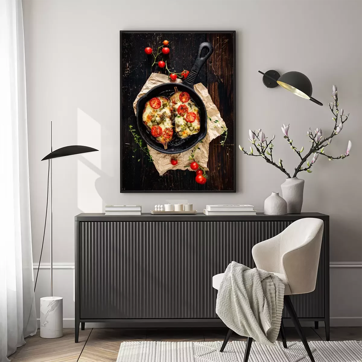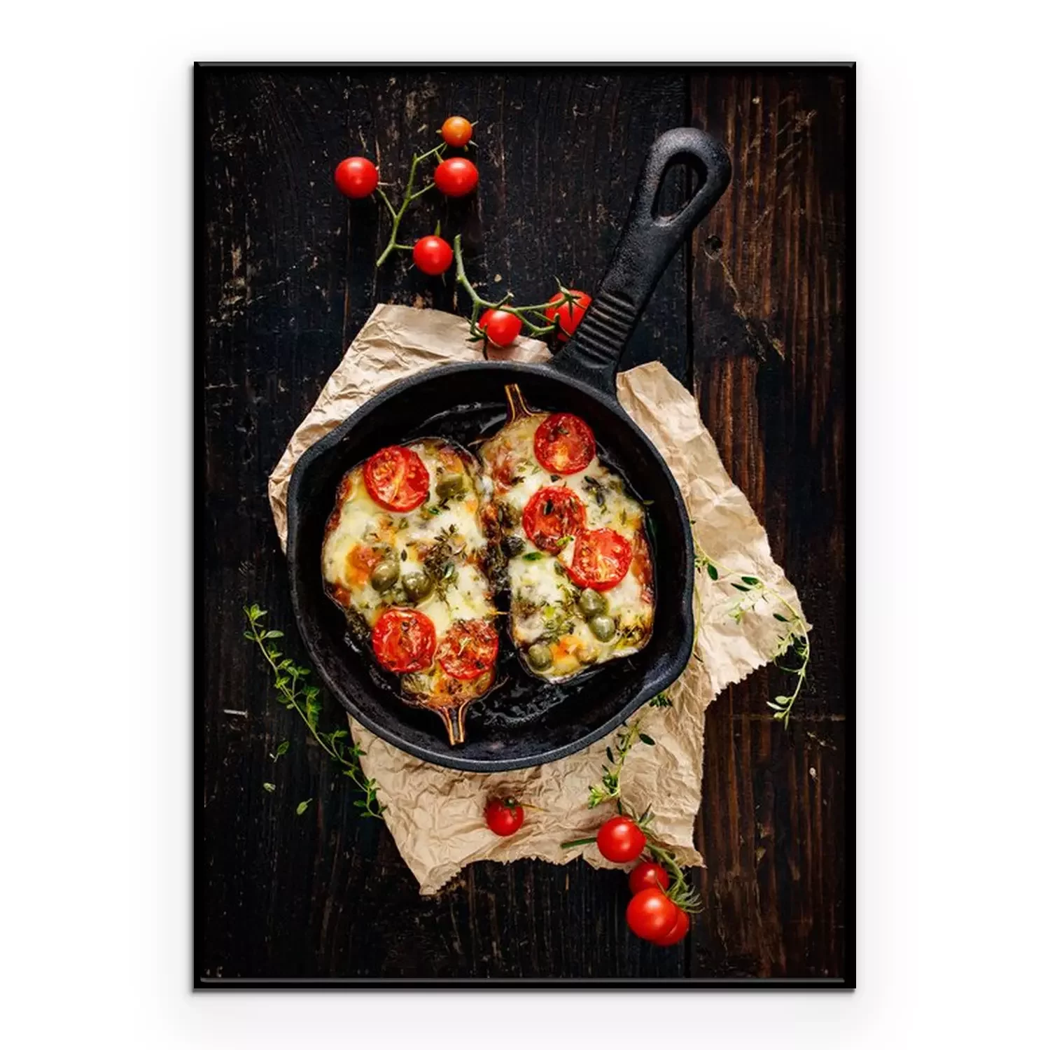 Poster: Geroosterde aubergine gevuld met groenten en mozzarella kaas