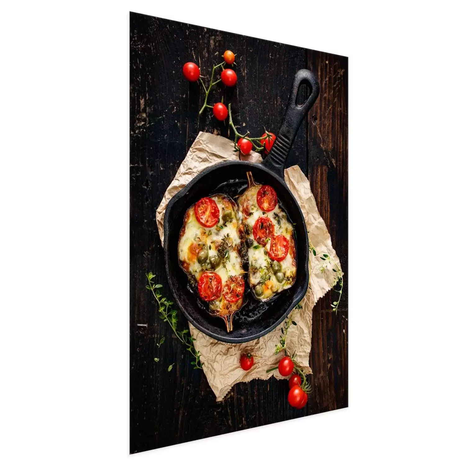 Poster Geroosterde aubergine gevuld met groenten en mozzarella kaas