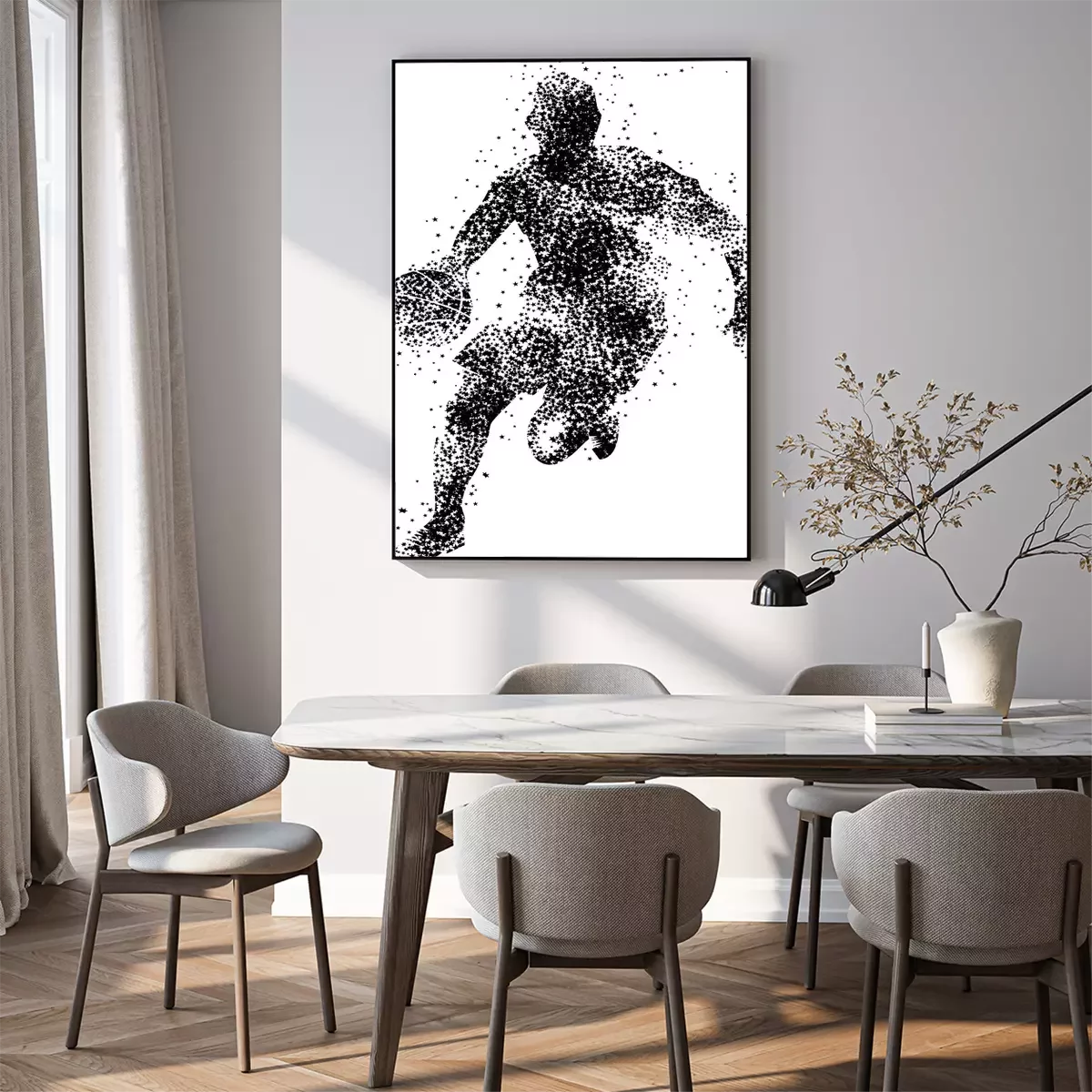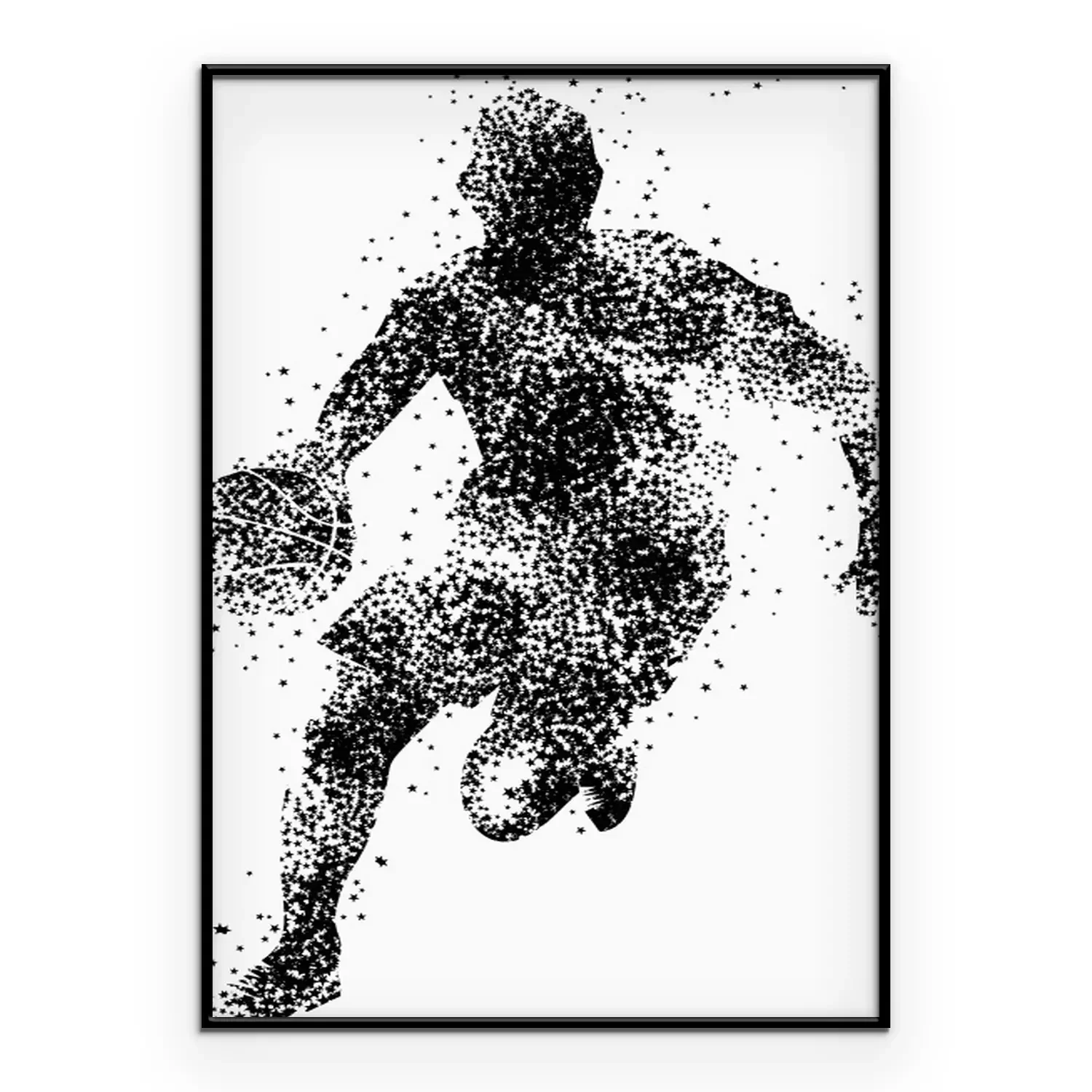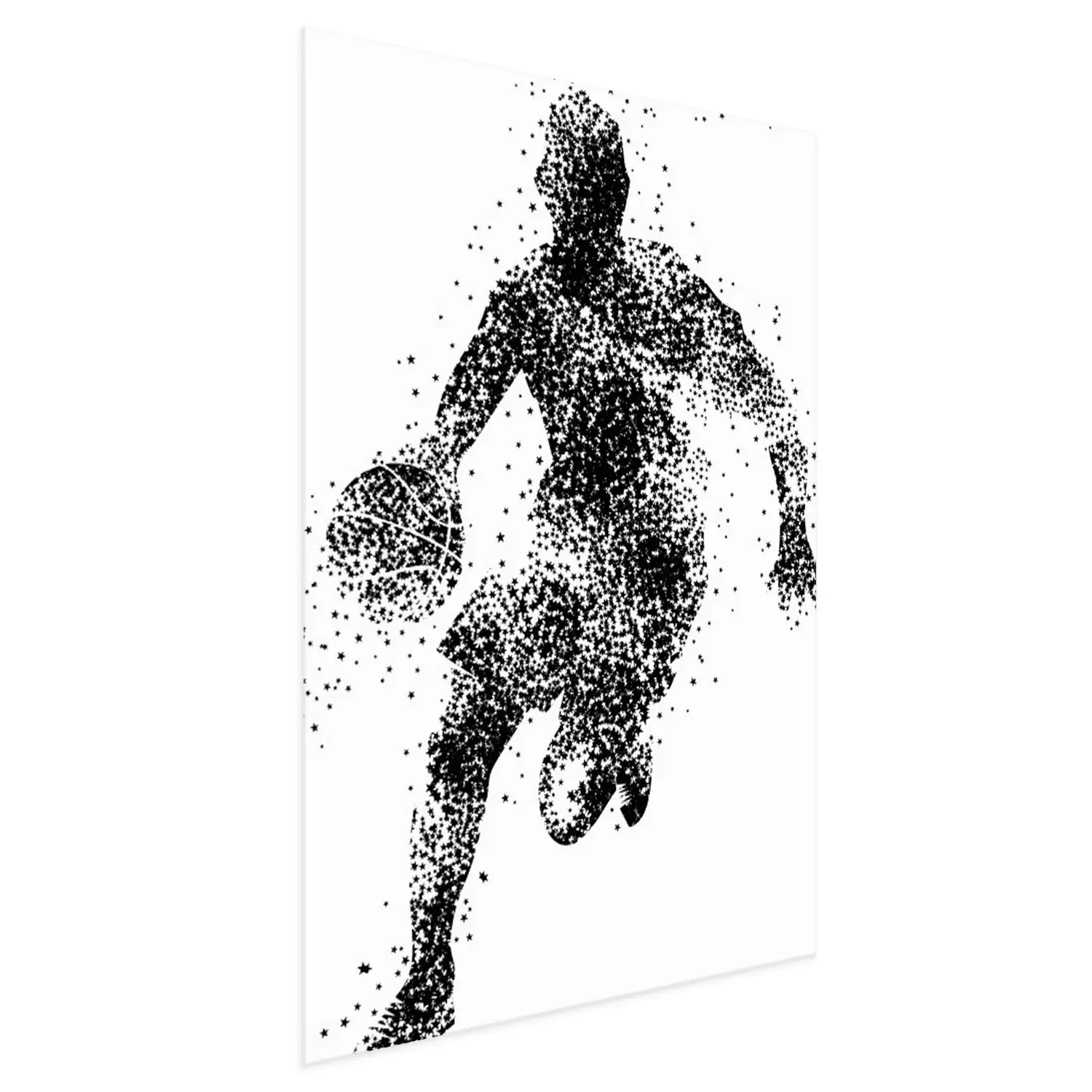Poster: Gestippeld silhouet van een basketballer met een bal