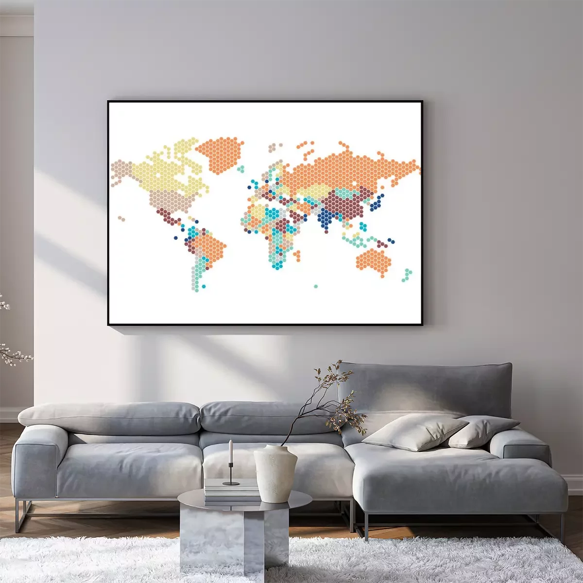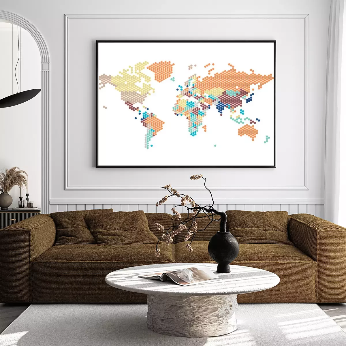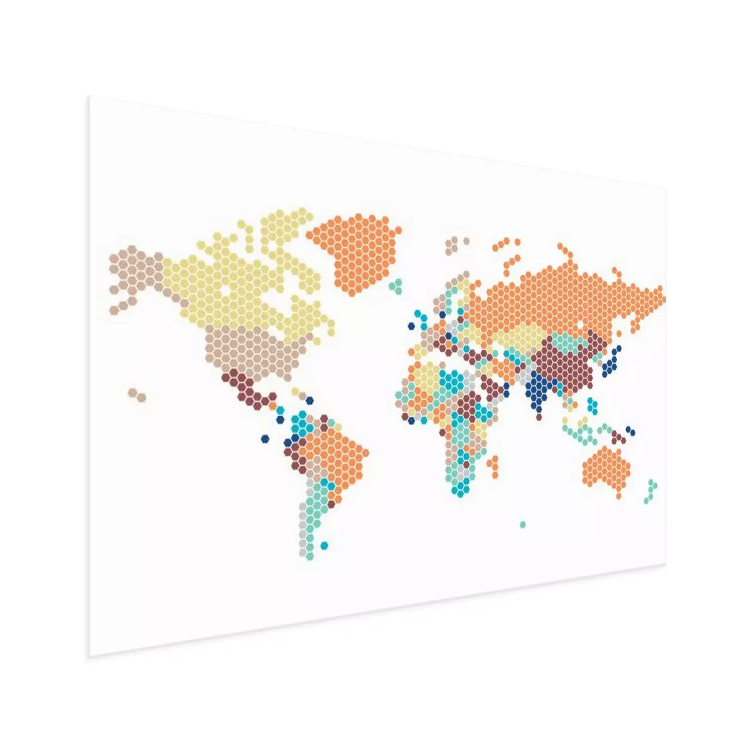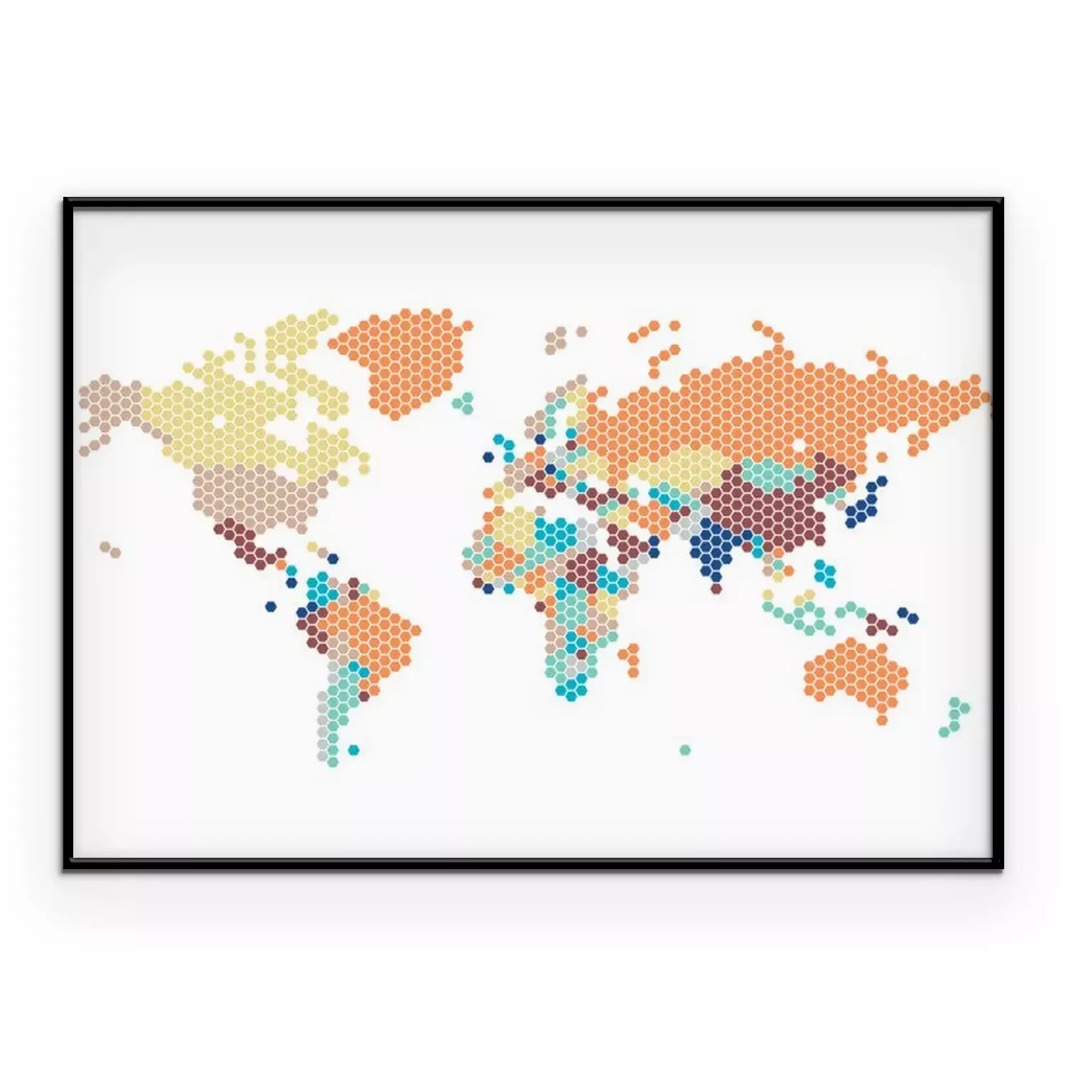 Poster: Gestippelde kaart World of zeshoekige stippen