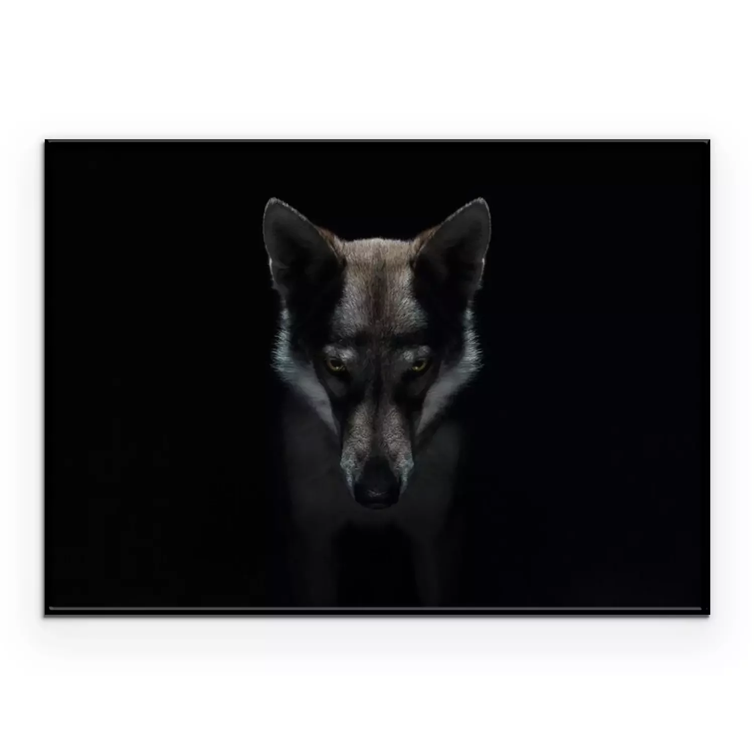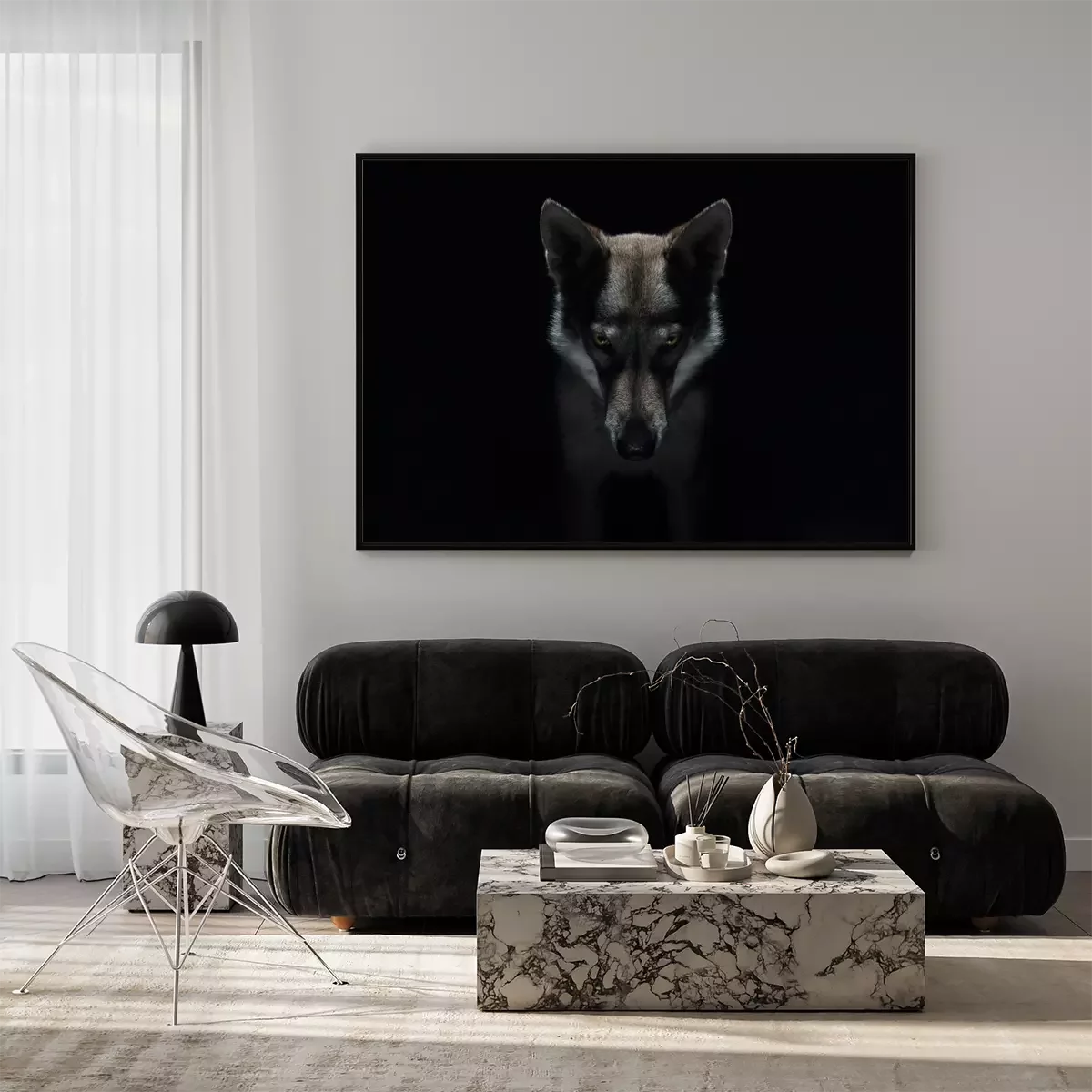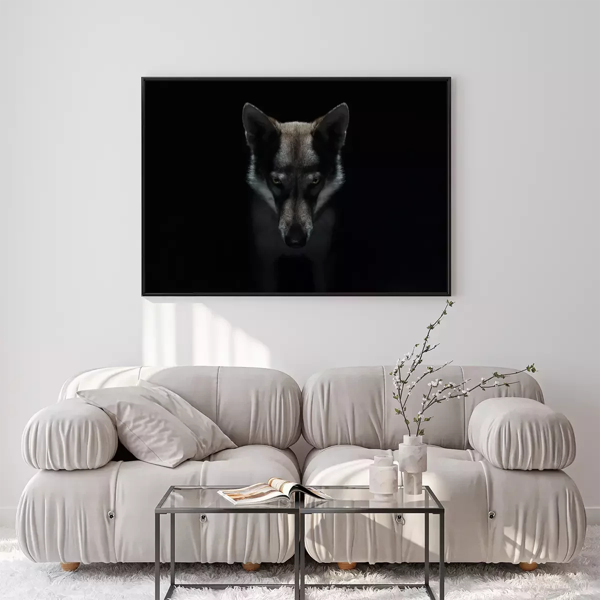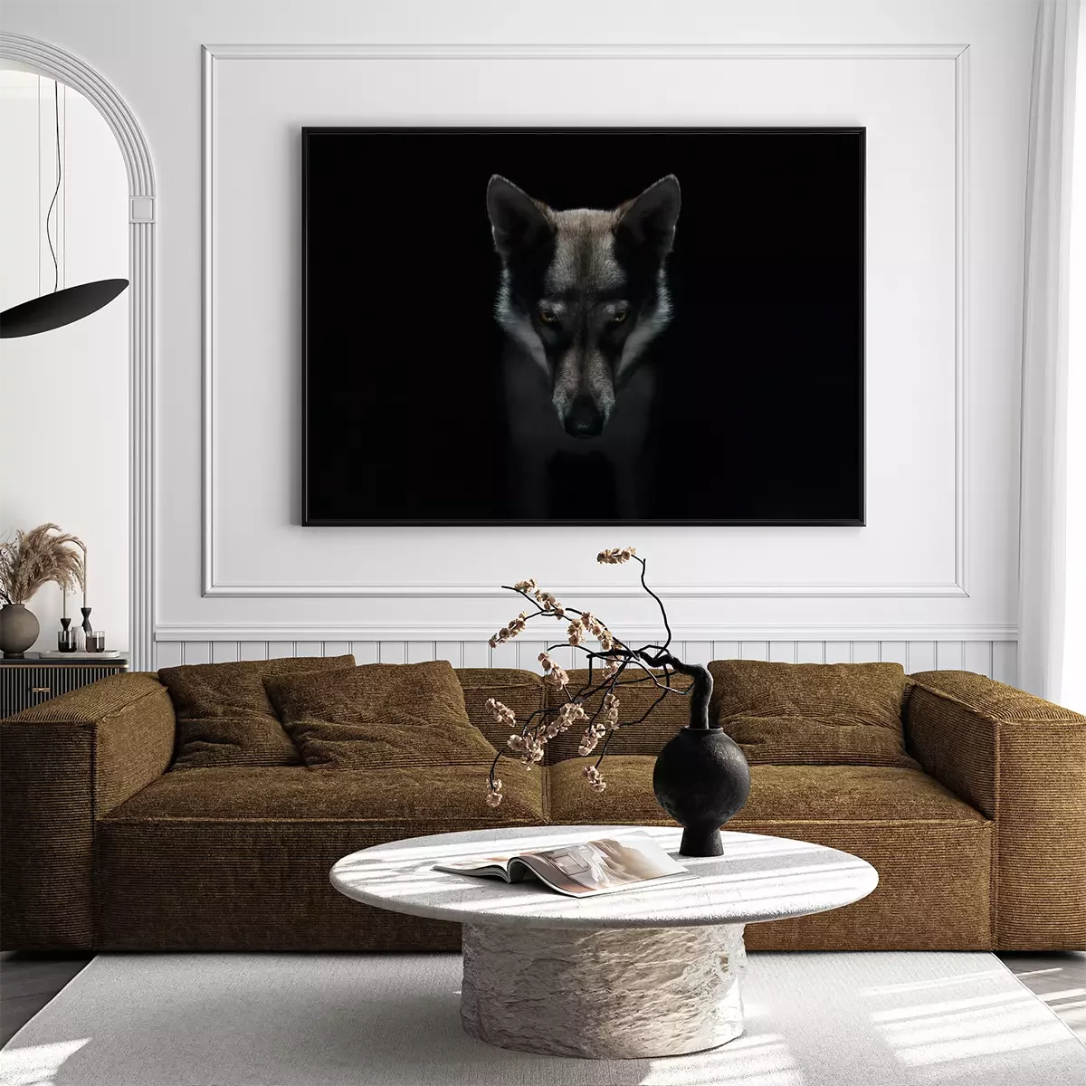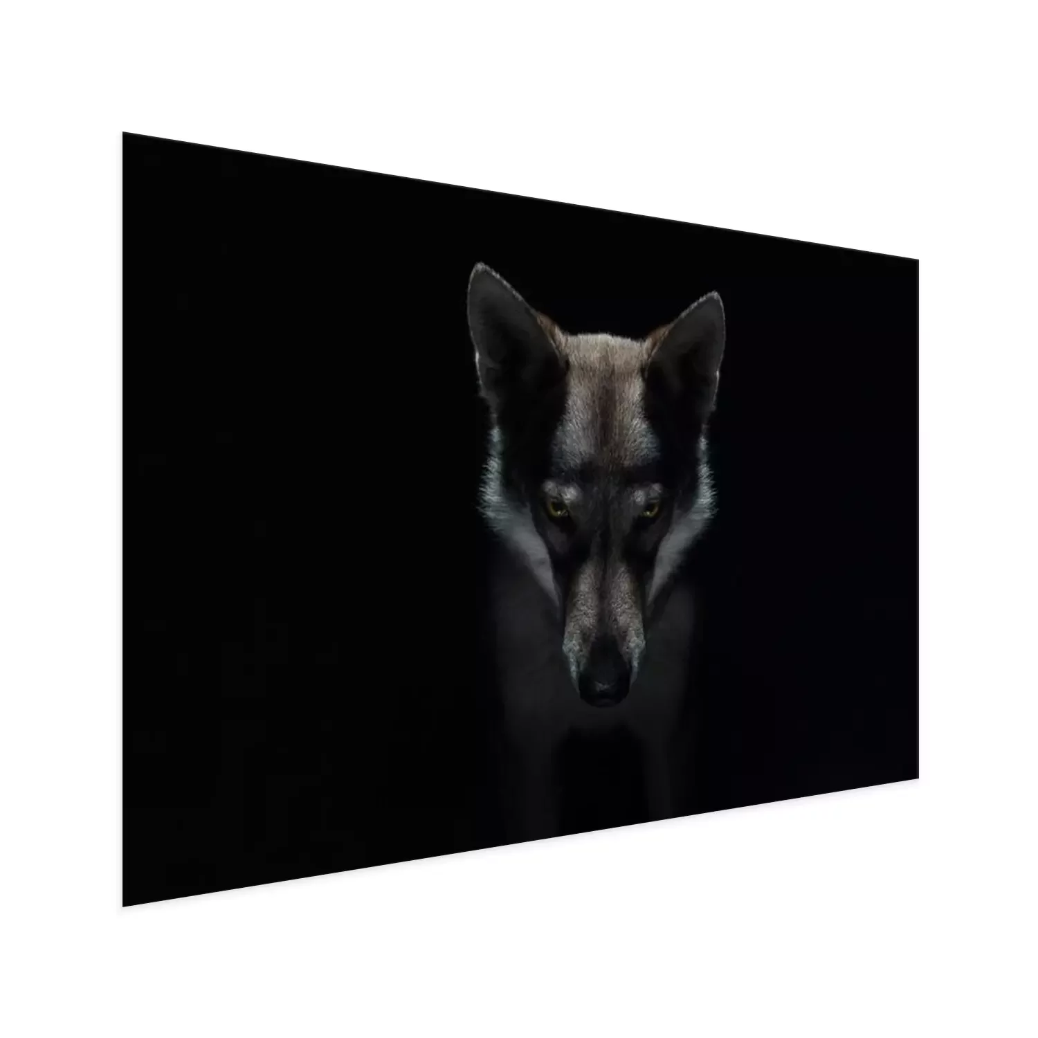 Poster: Gevaarlijke wolf op een donkere achtergrond