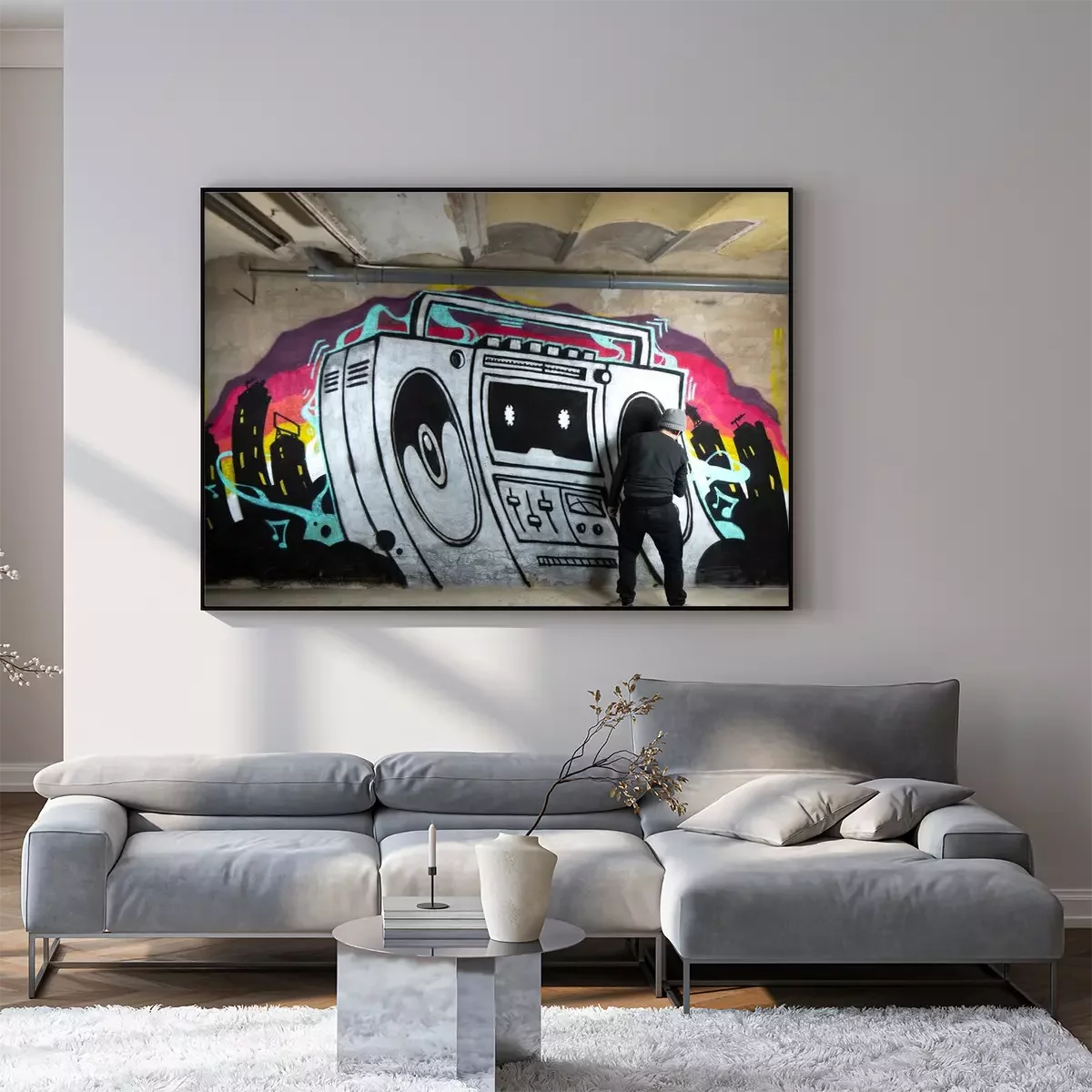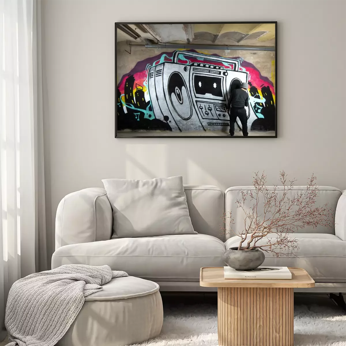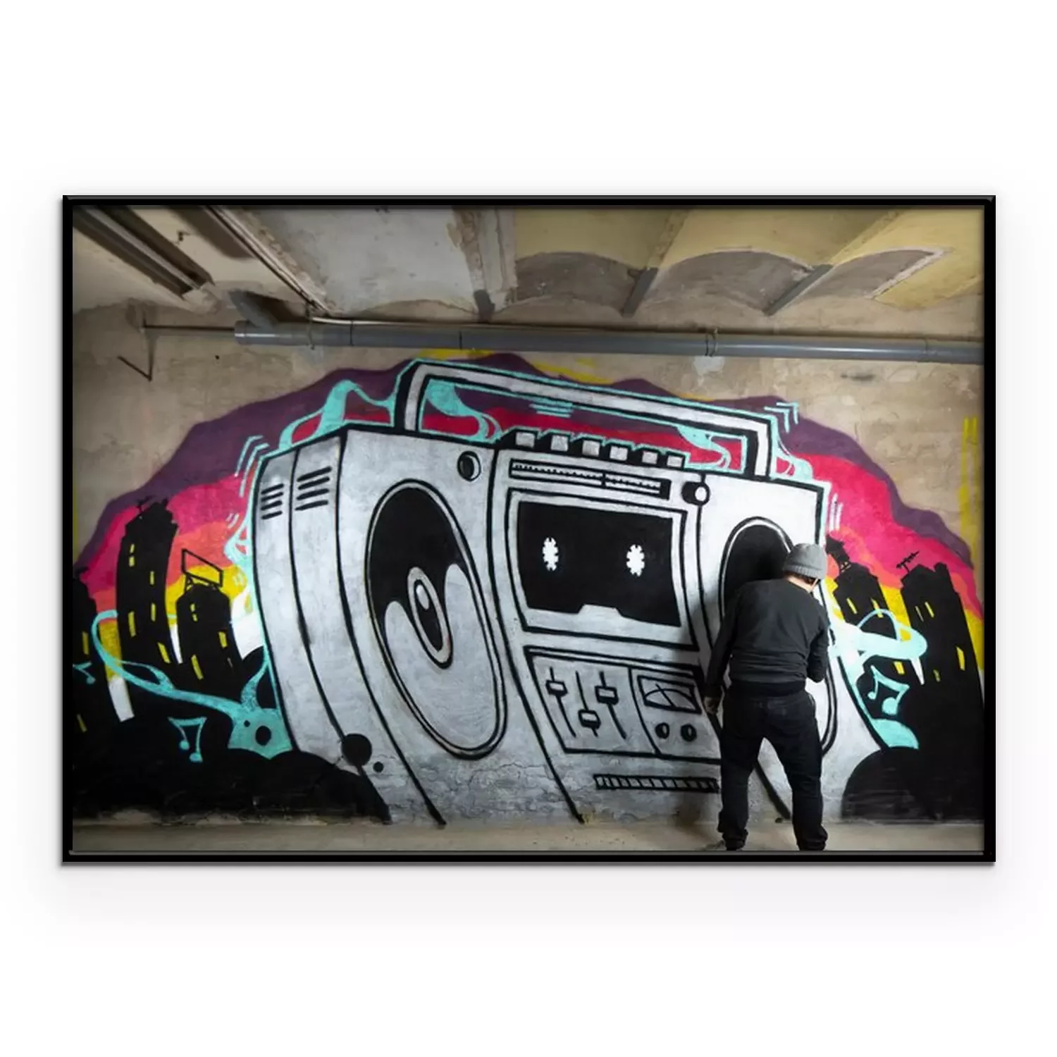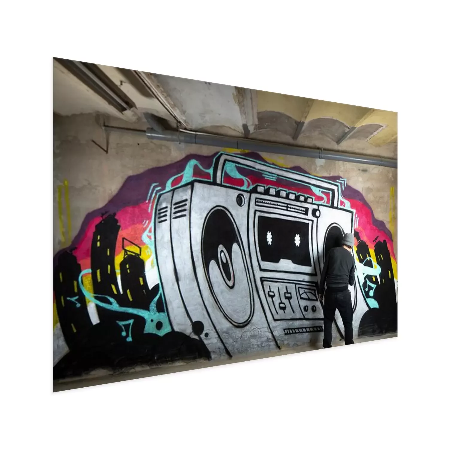 Poster: ghettoblaster graffiti on a wall