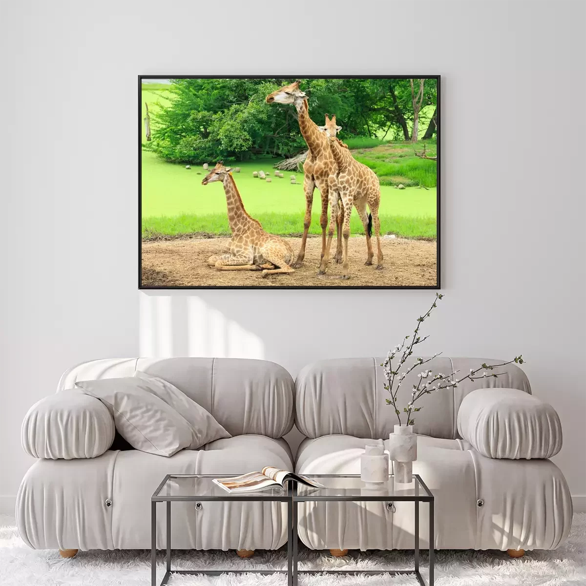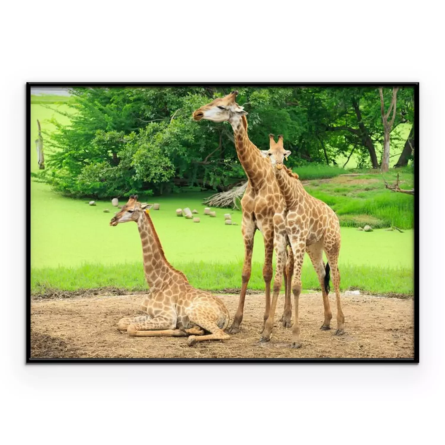 Poster: Giraf in de dierentuin tussen het groen