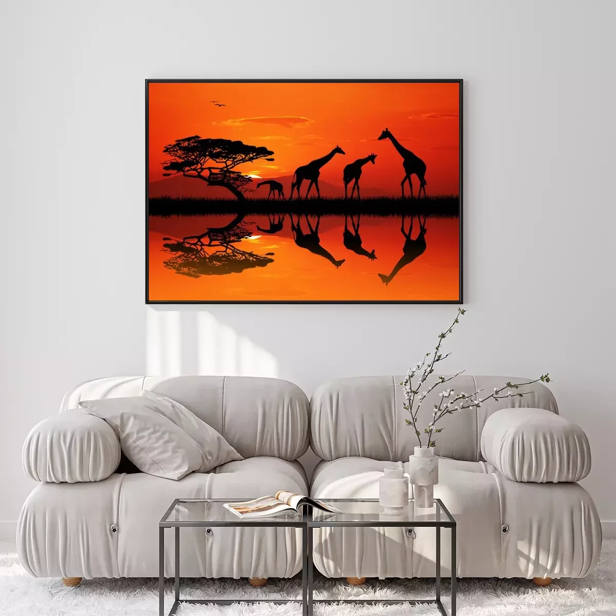 Poster: giraffe silhouet in Afrikaans landschap