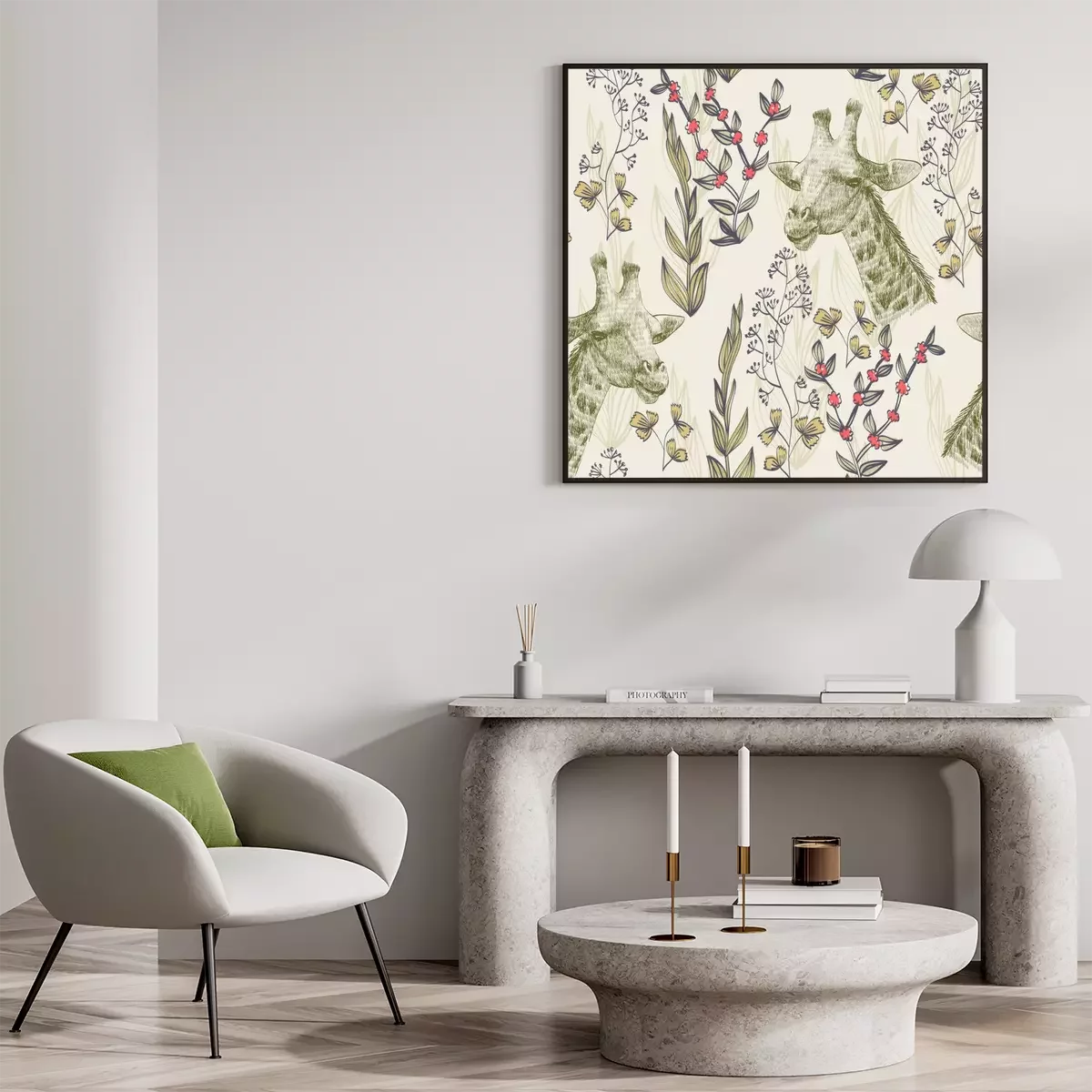 Gestippelde groene vossen op een witte en grijze achtergrond