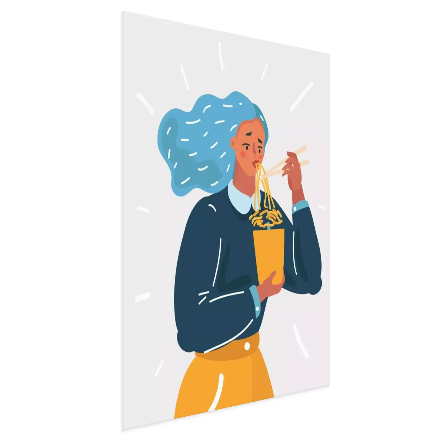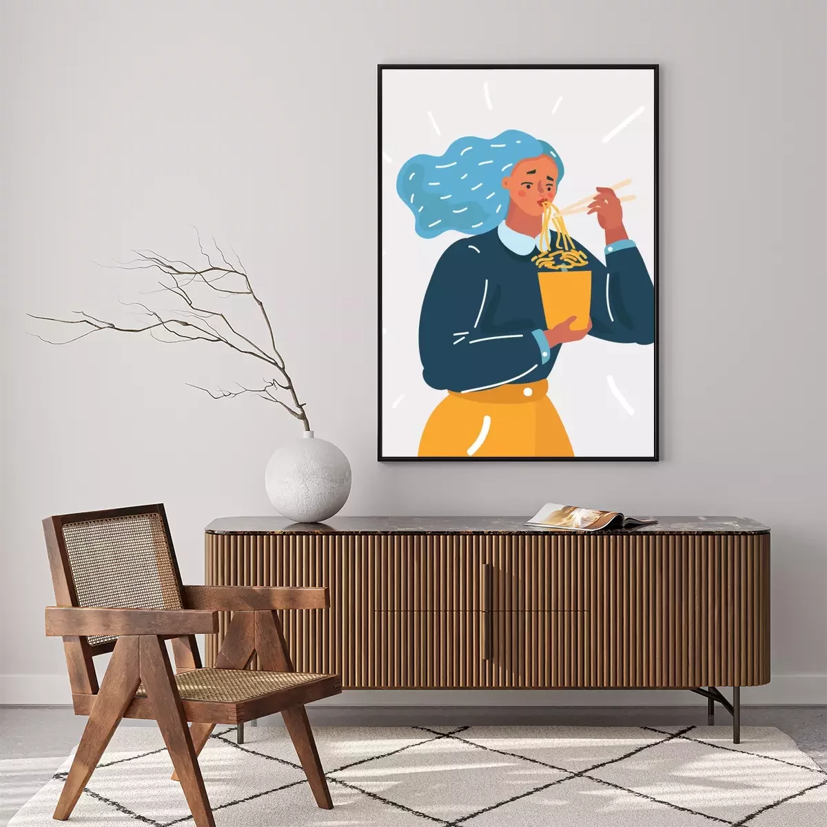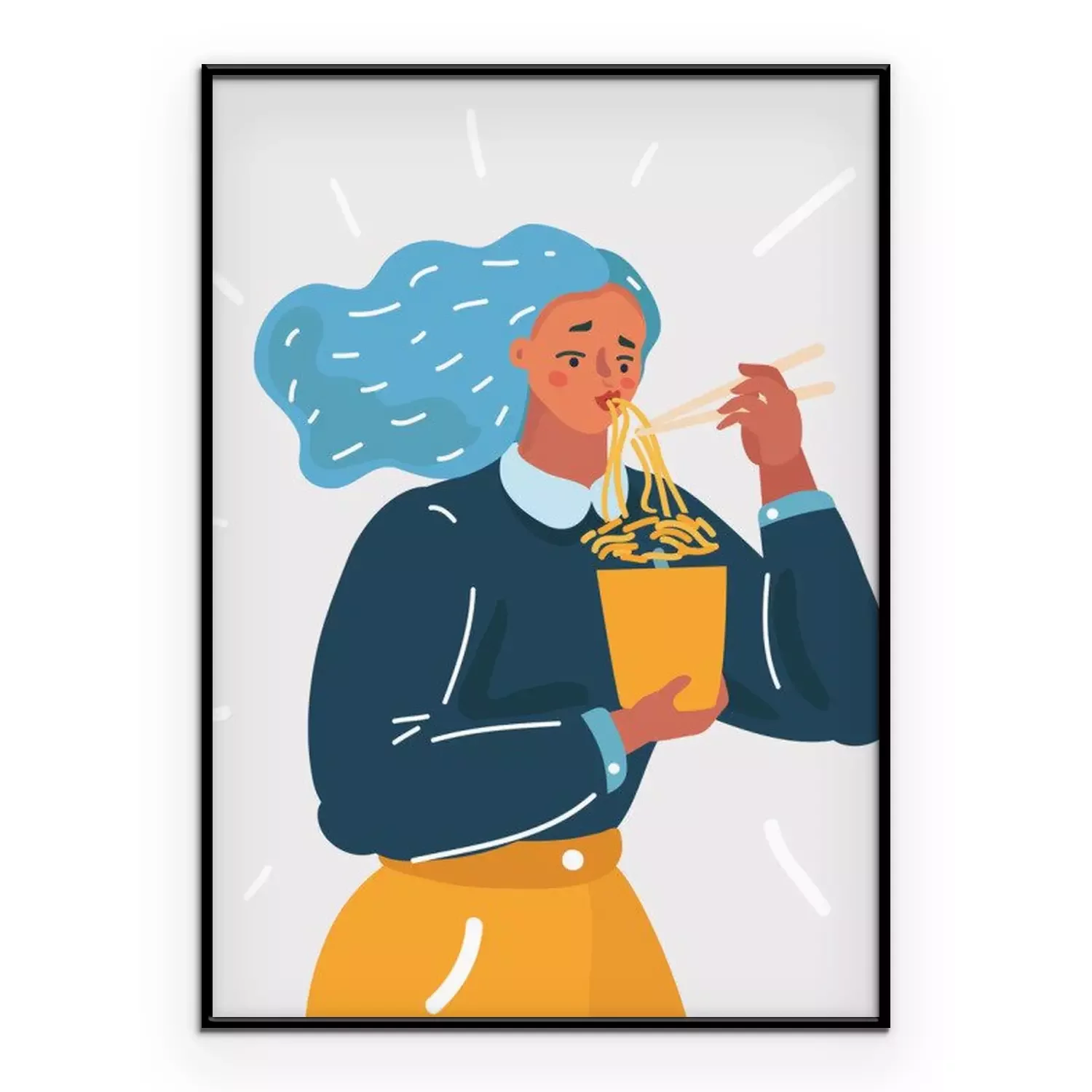 Poster: Girl enjoying her ramen noodle with chopstick.