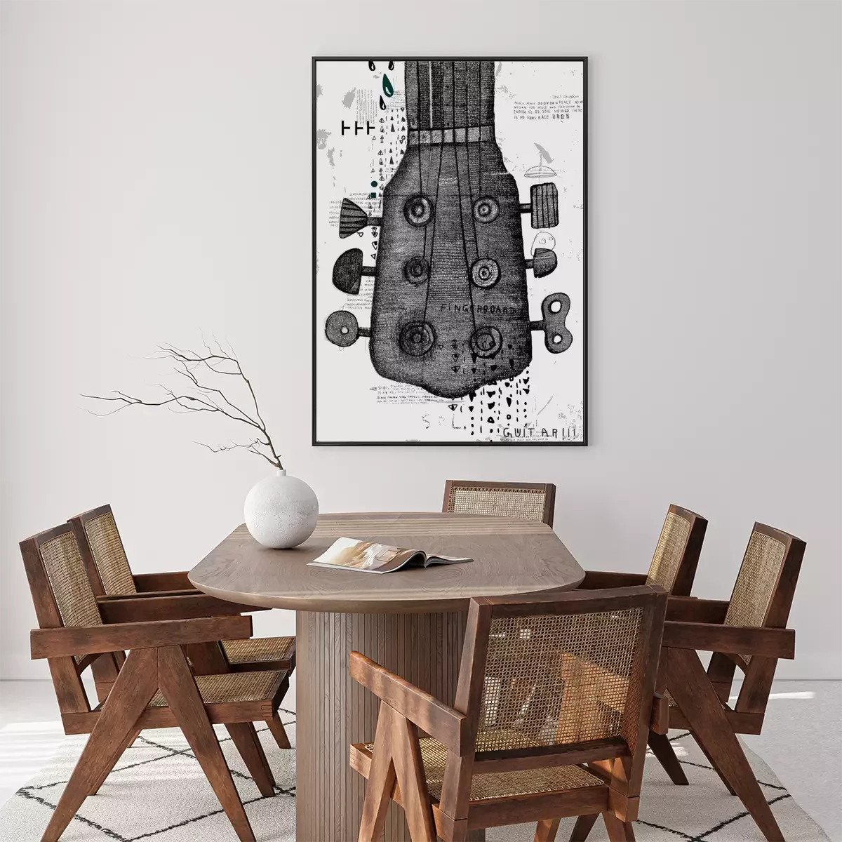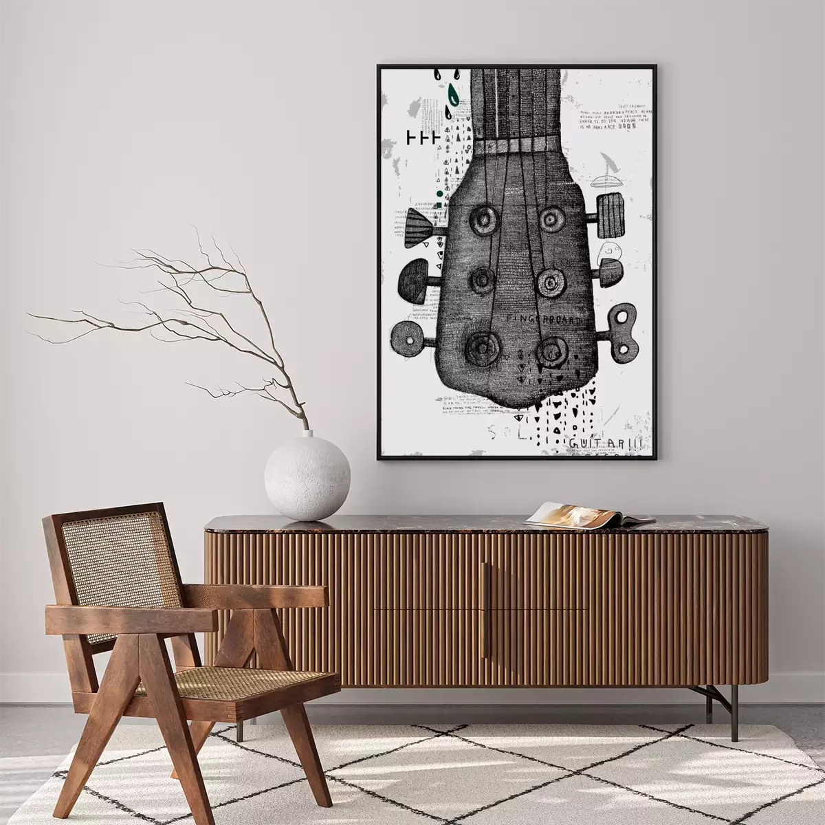 Poster: Gitaarasblok met ongebruikelijke toetsen