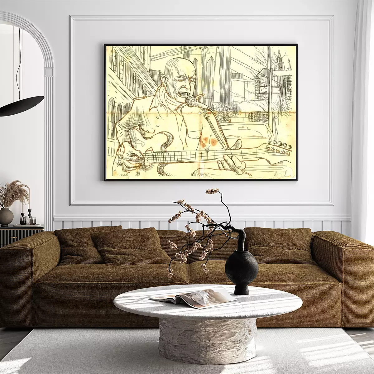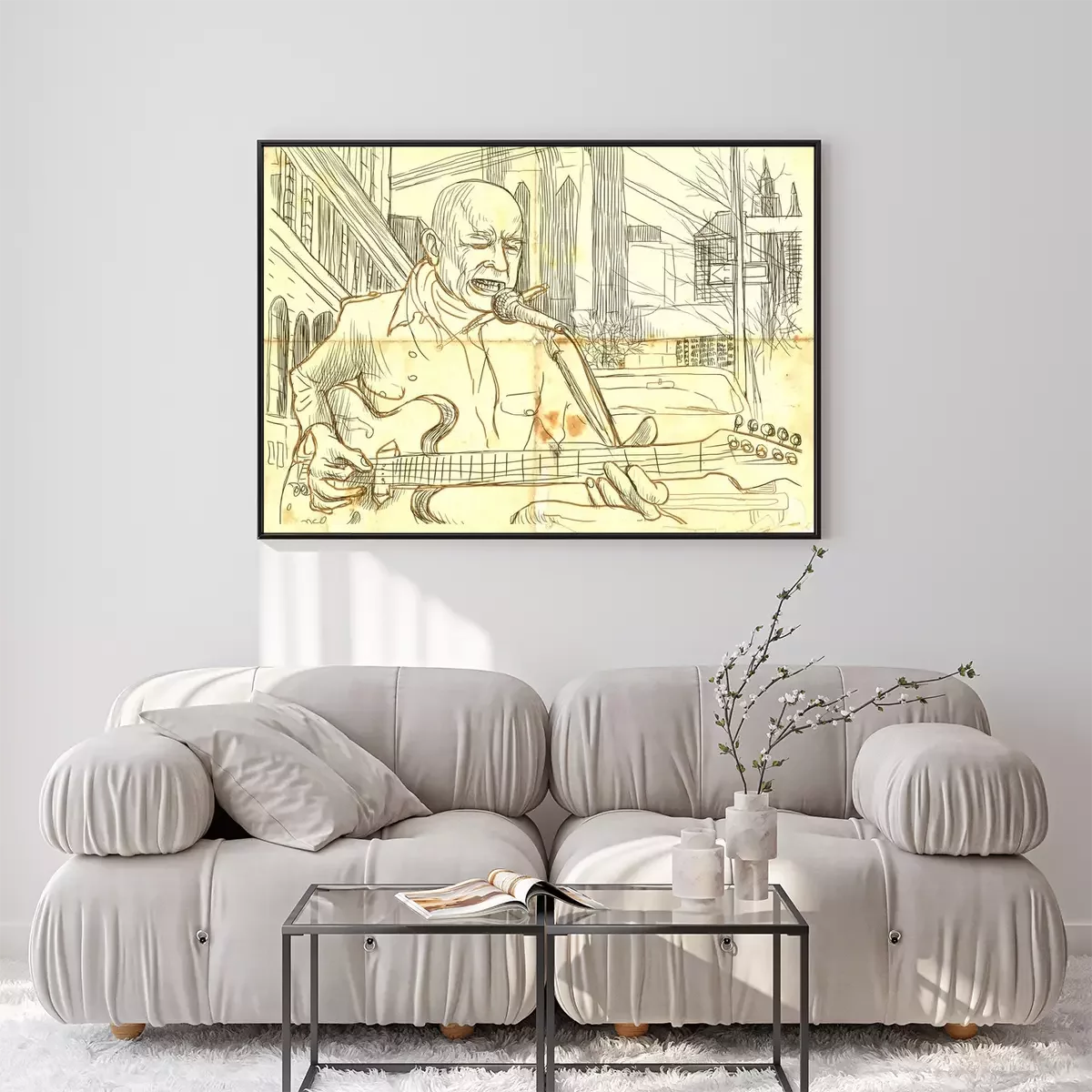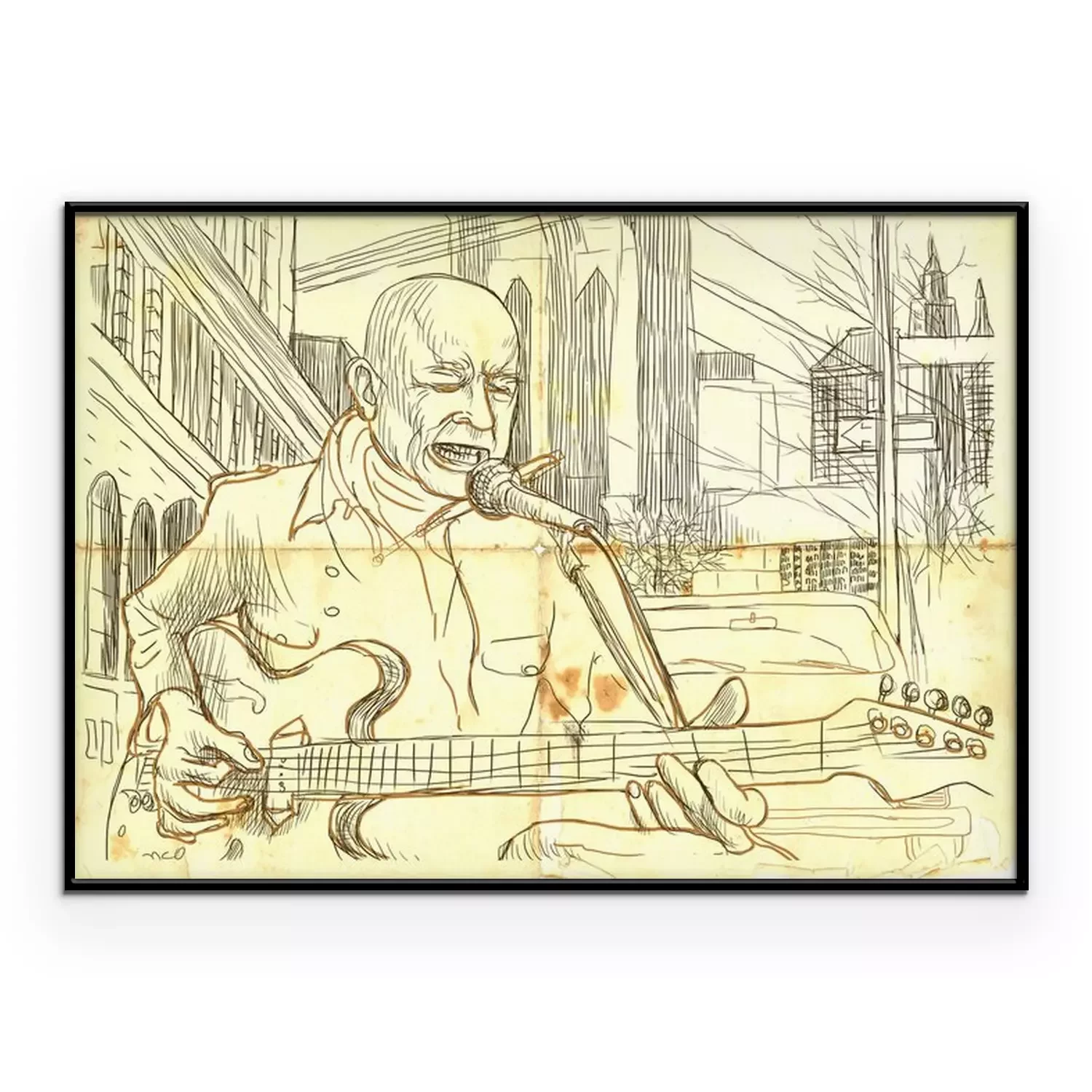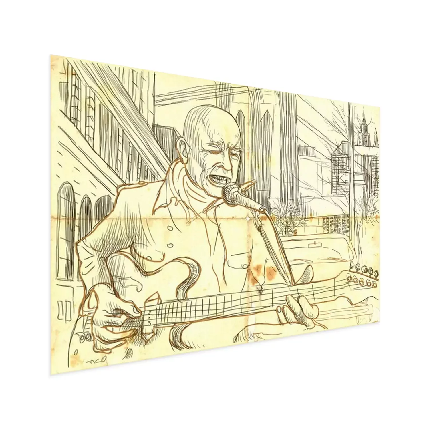 gitarist - een hand getekende illustratie van de grunge