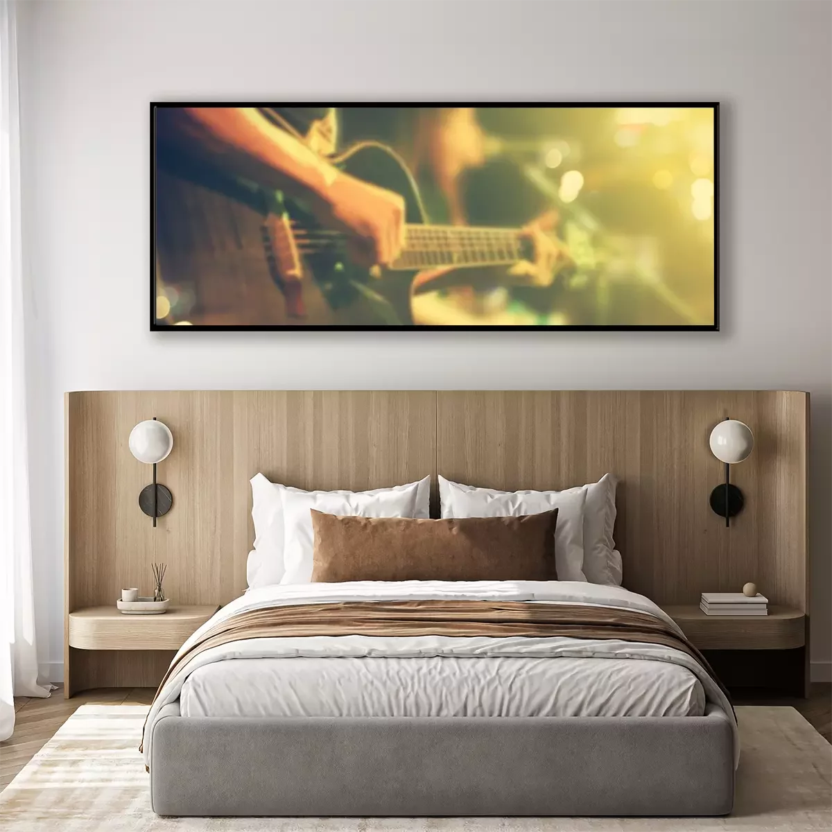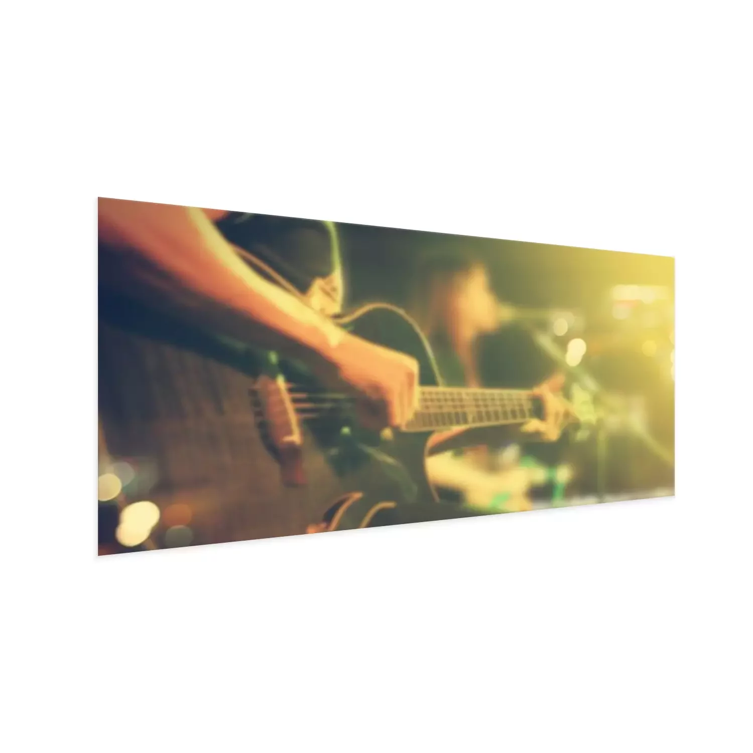 Poster: Gitarist op het podium voor de achtergrond, zacht en onscherpte concept, vintage toon