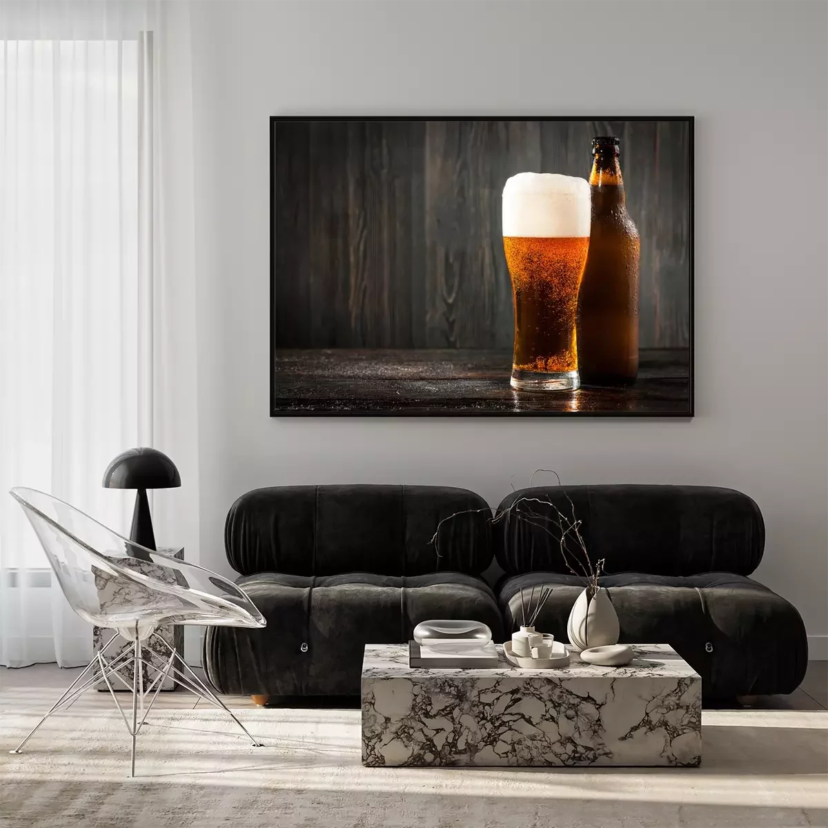 Poster: Glas bier en bierfles
