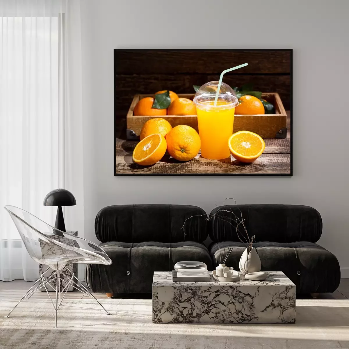 Poster: glas jus d'orange met verse vruchten
