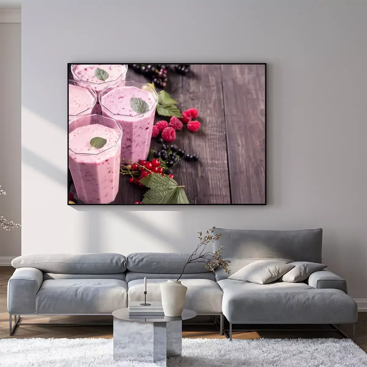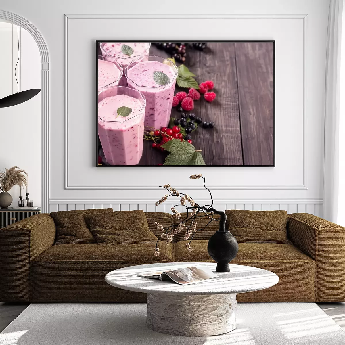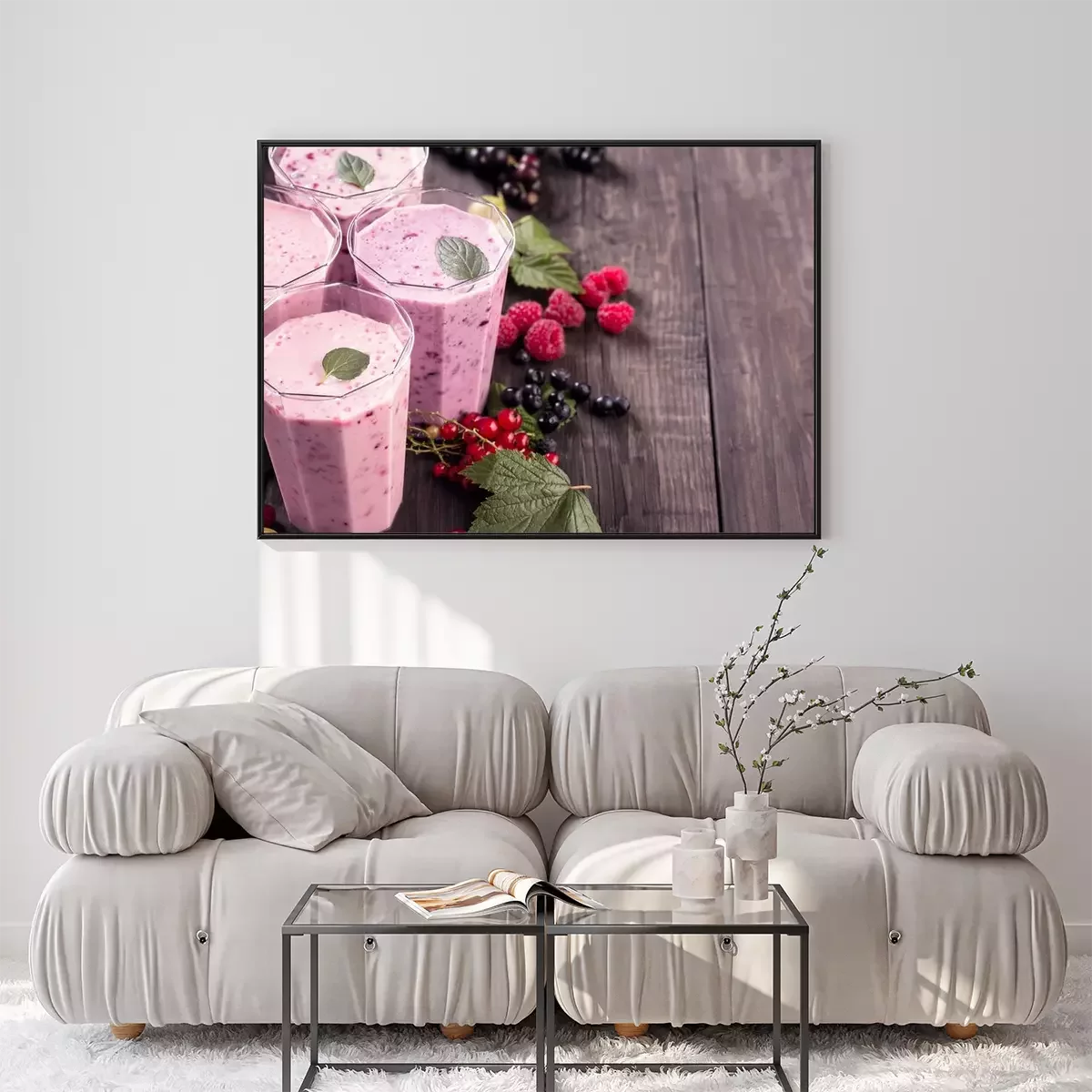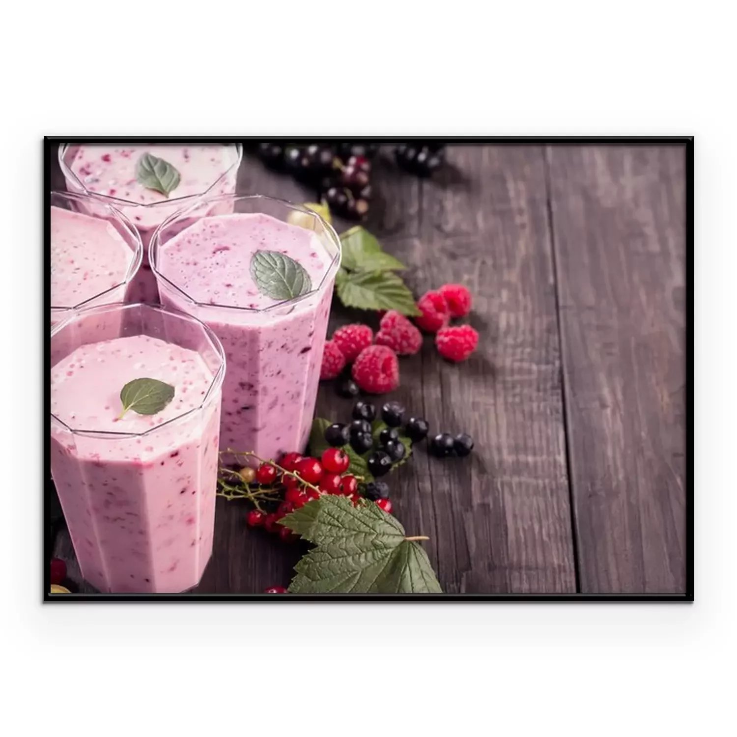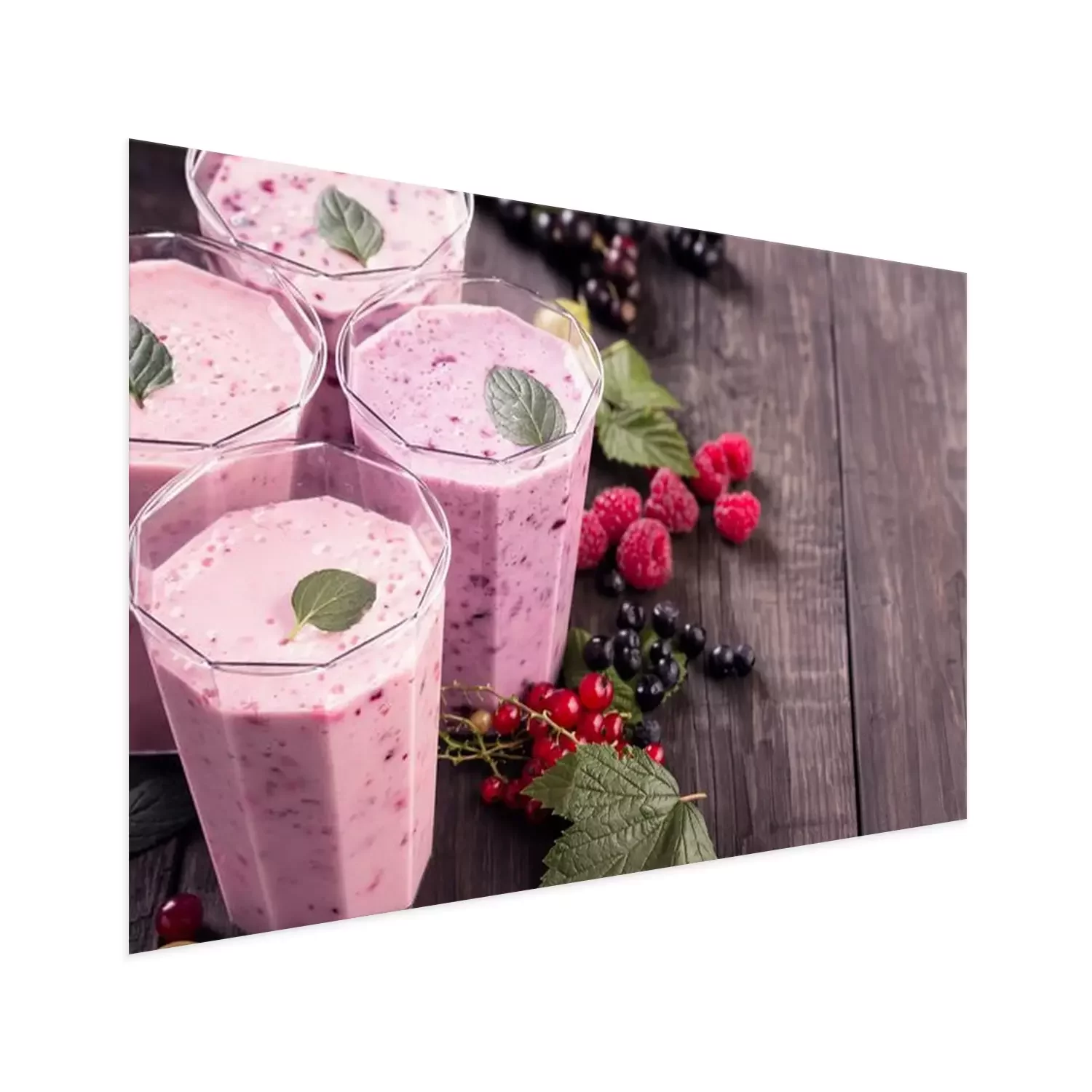 Poster: Glazen verschillende bessen smoothie aan de linkerkant