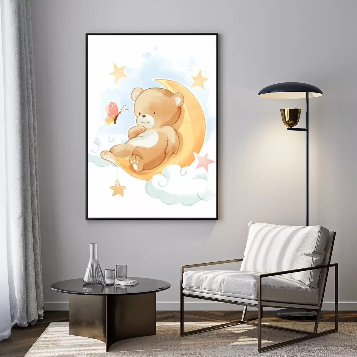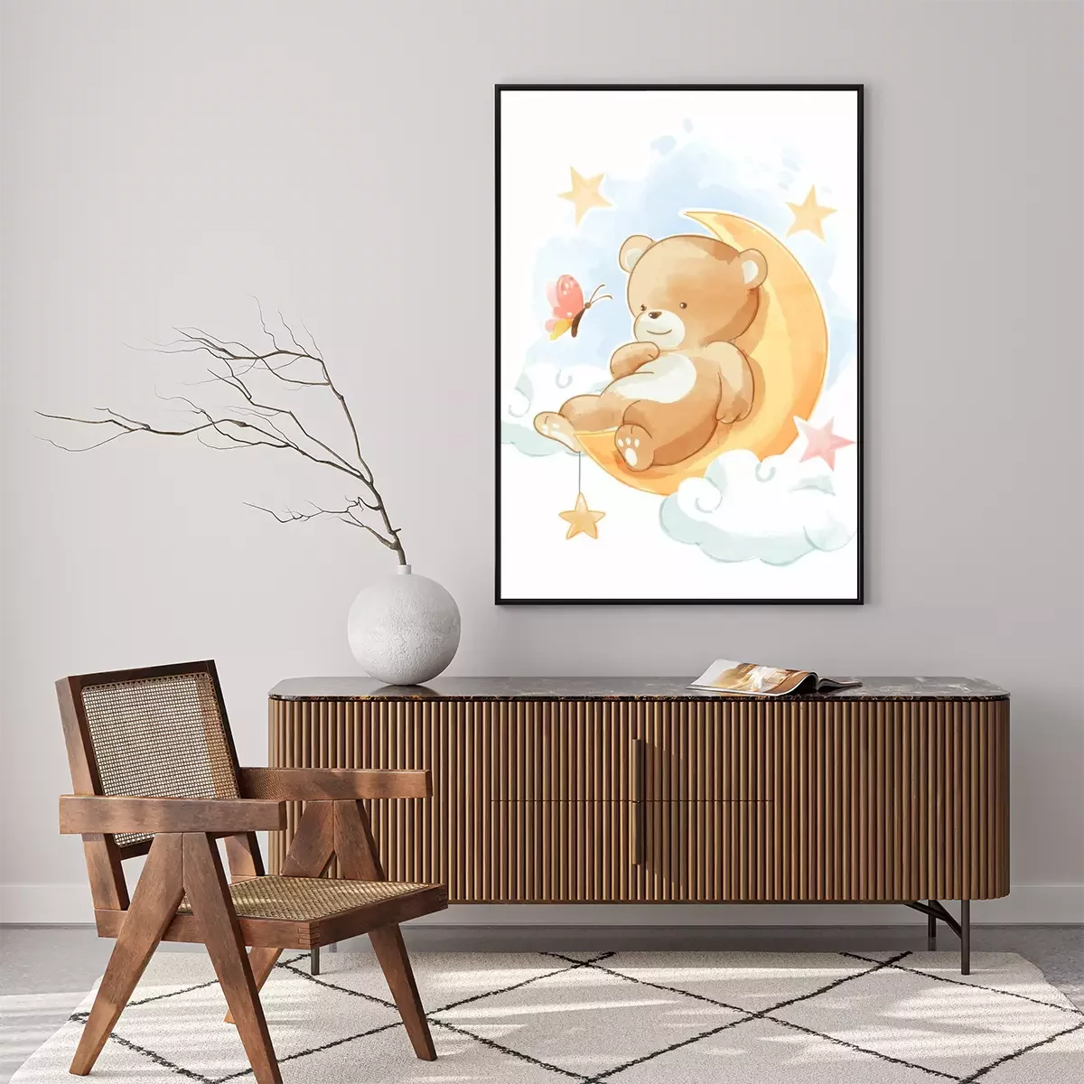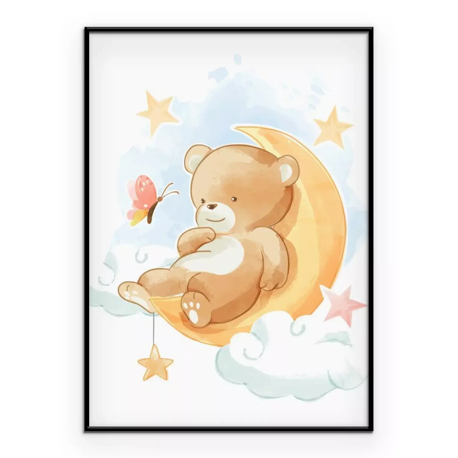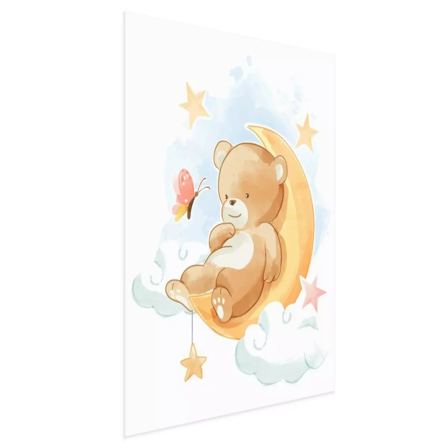 Poster: Glimlachende beer die op de maan ligt