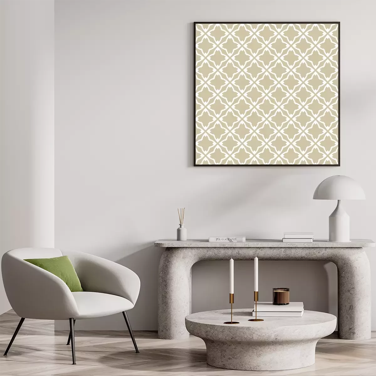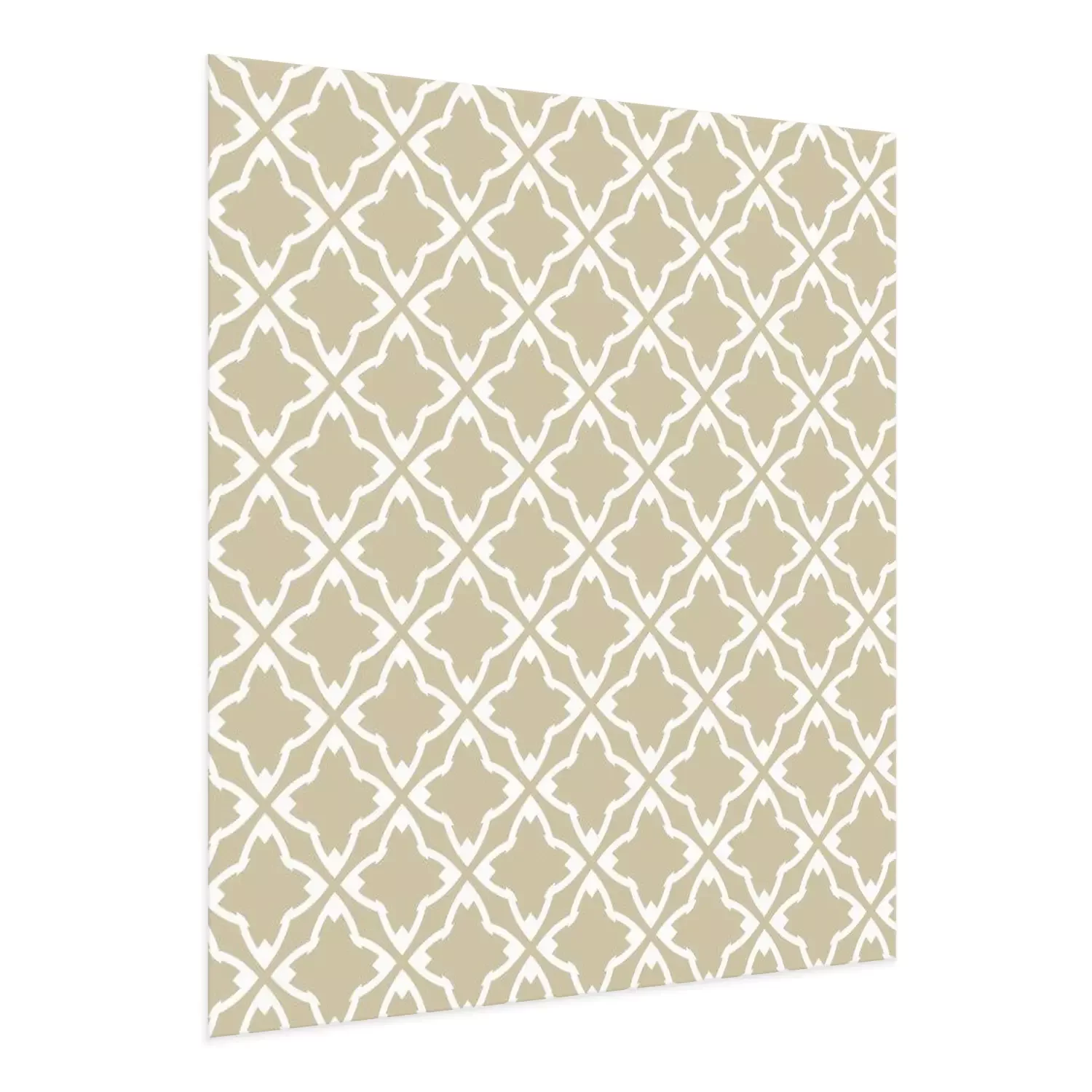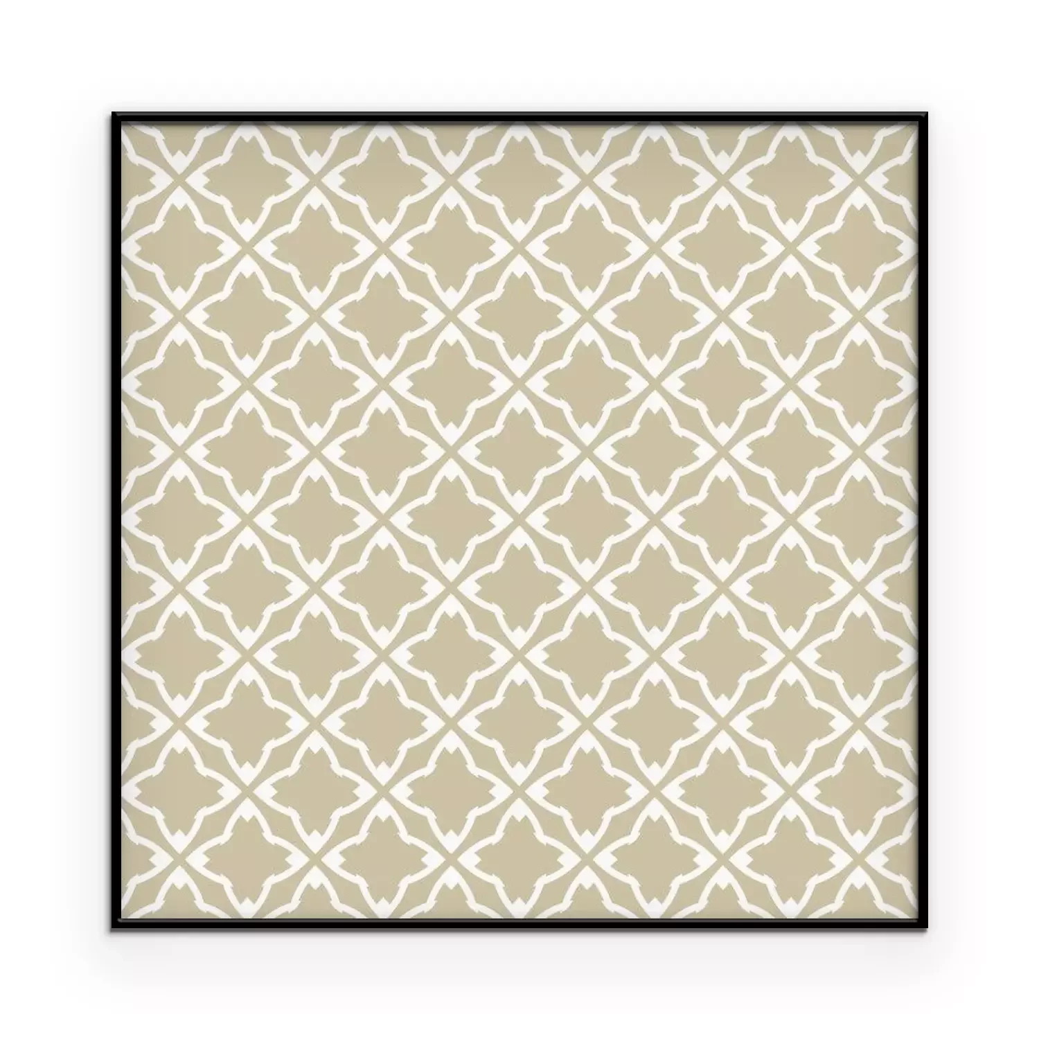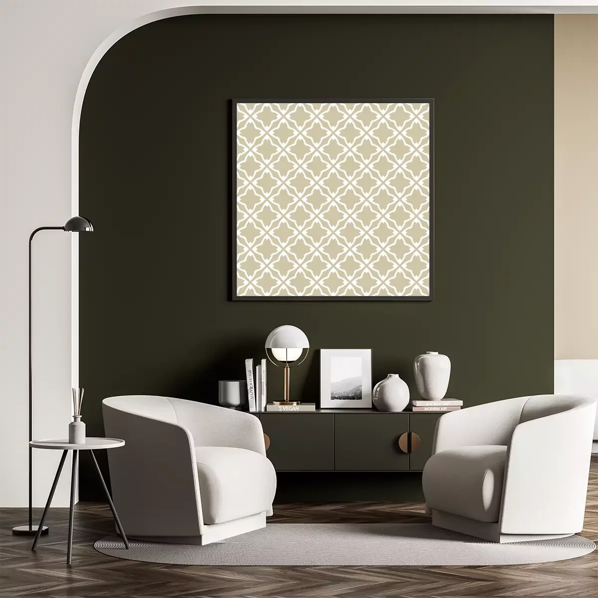 Poster Golden vector geometric seamless pattern in oriental style. White and gold ornamental texture. Abstract background with diamond shapes, stars, flower silhouettes, grid, repeat tiles. Luxury design