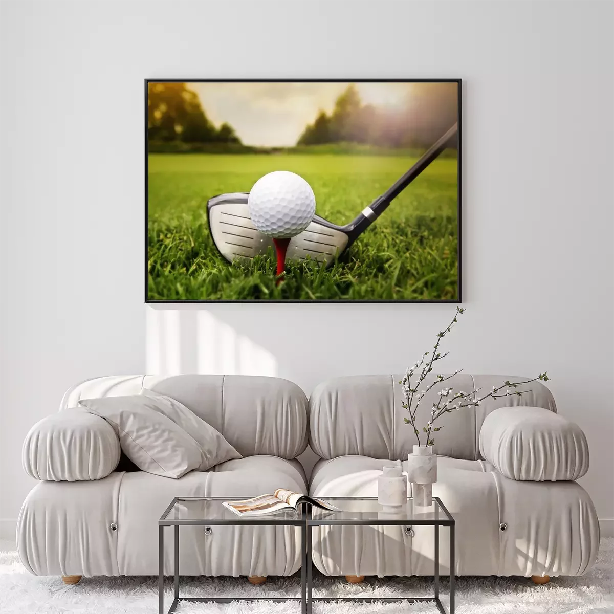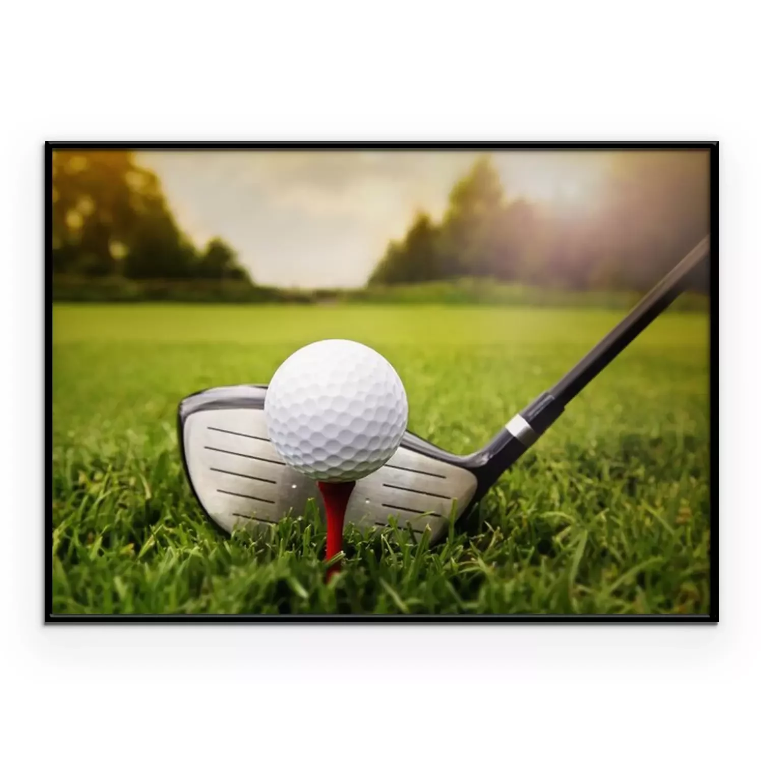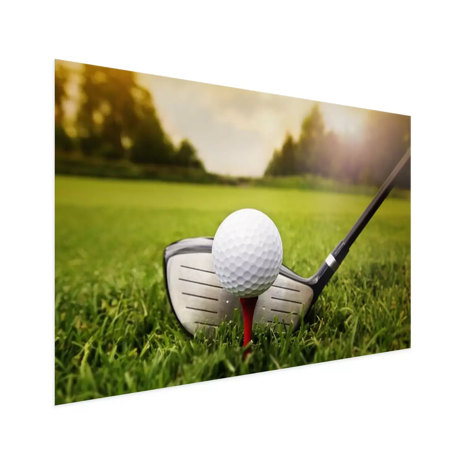 Poster: Golfclub en de bal in het gras