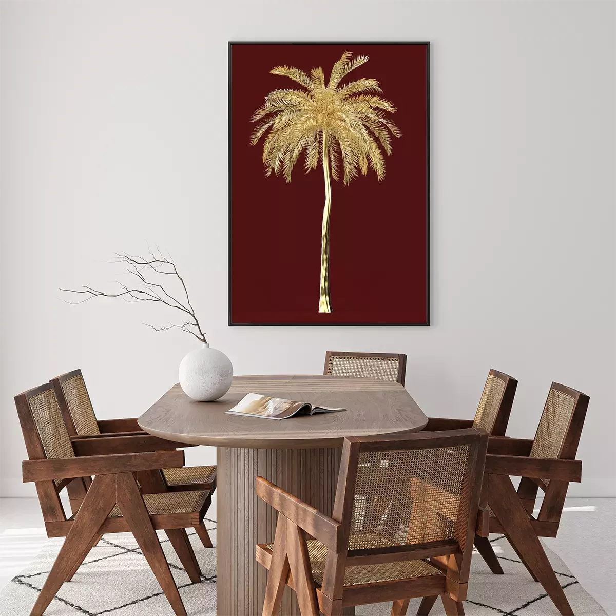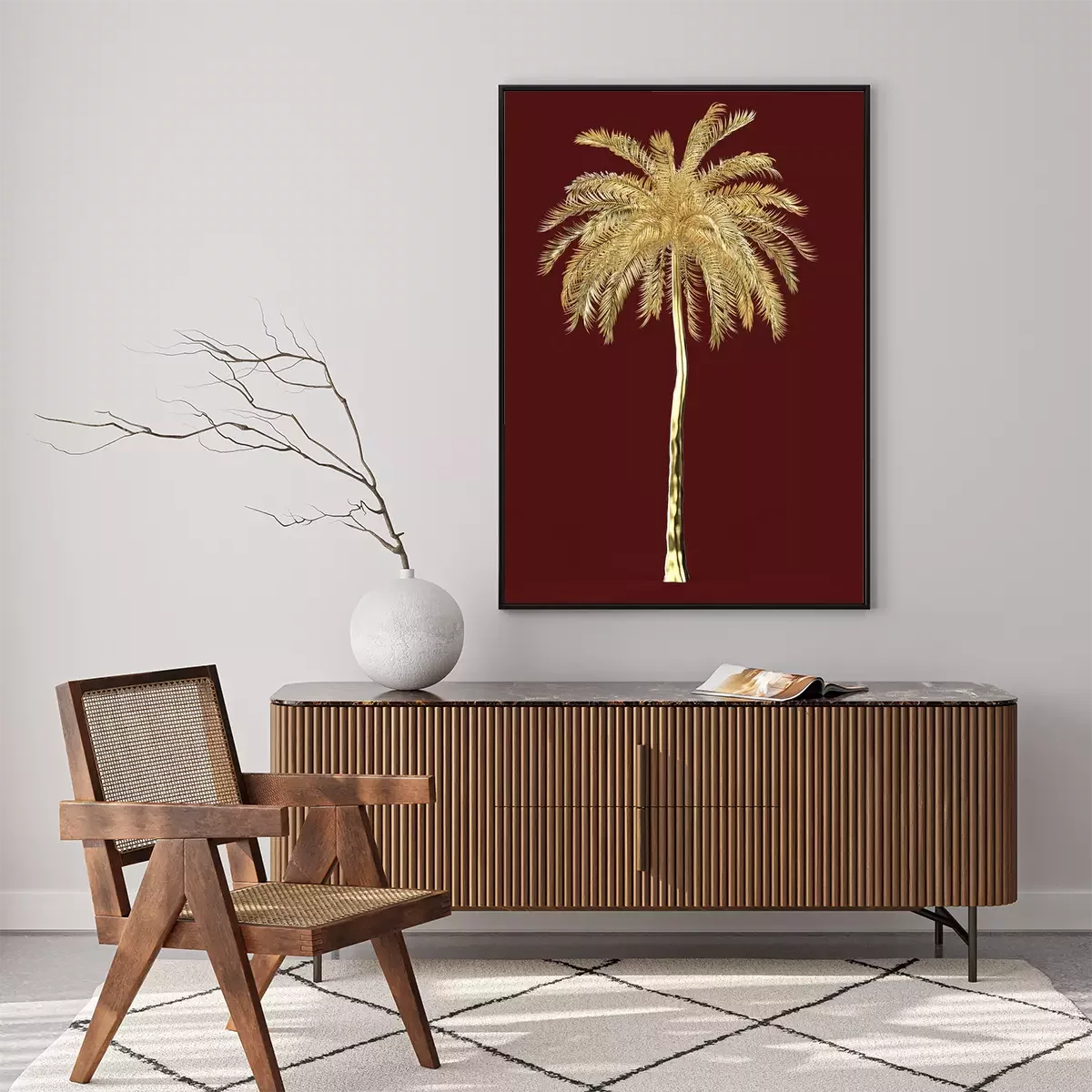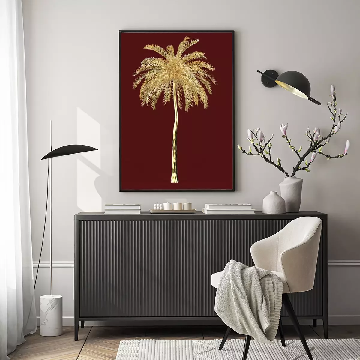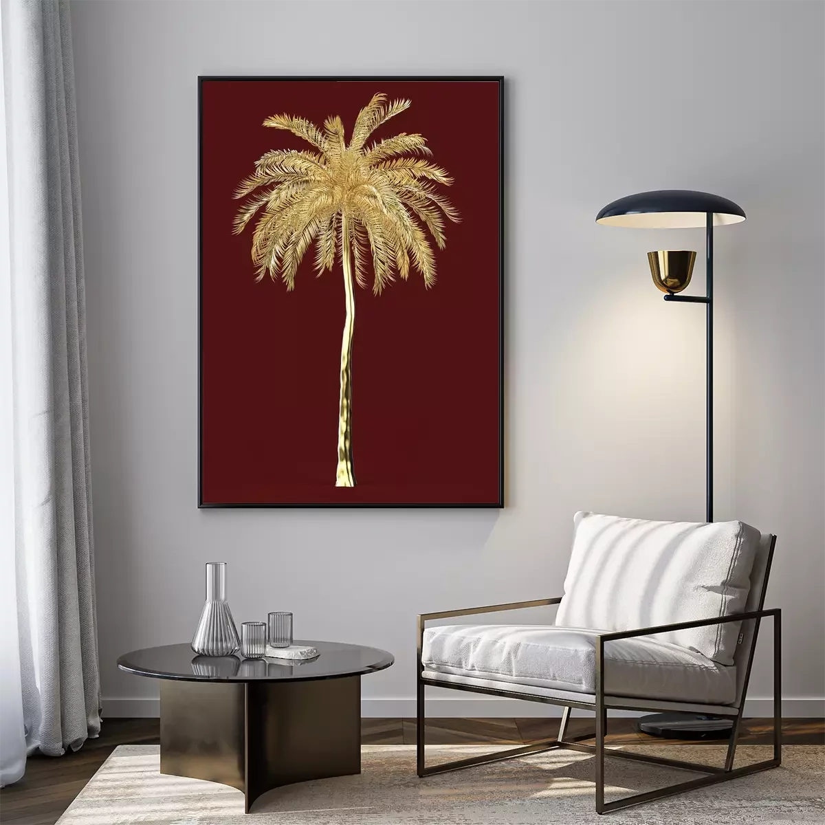 Poster: Gouden palm op een kastanjebruine achtergrond
