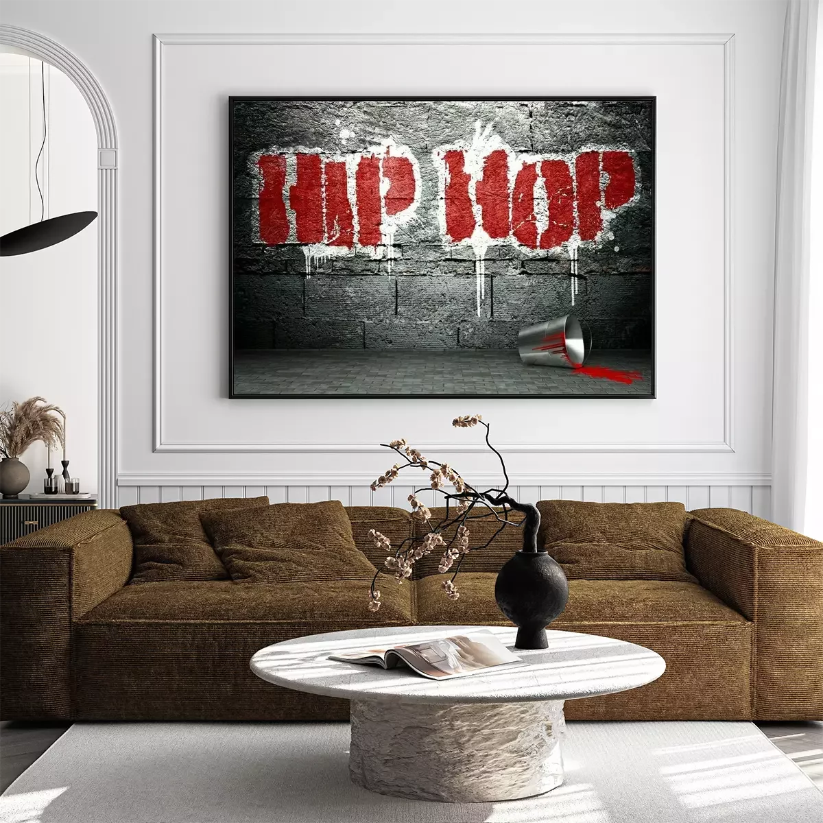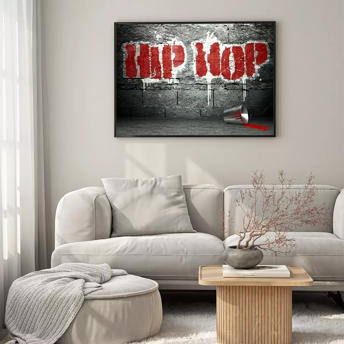 Poster: Graffiti muur met hiphop, straat achtergrond