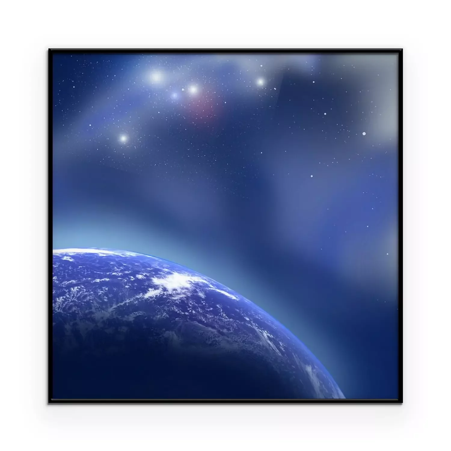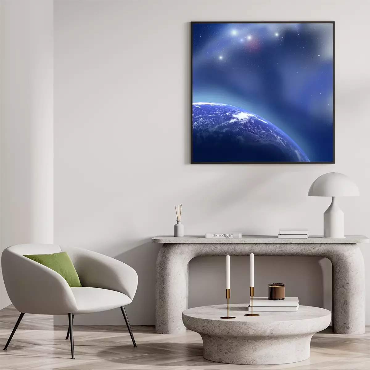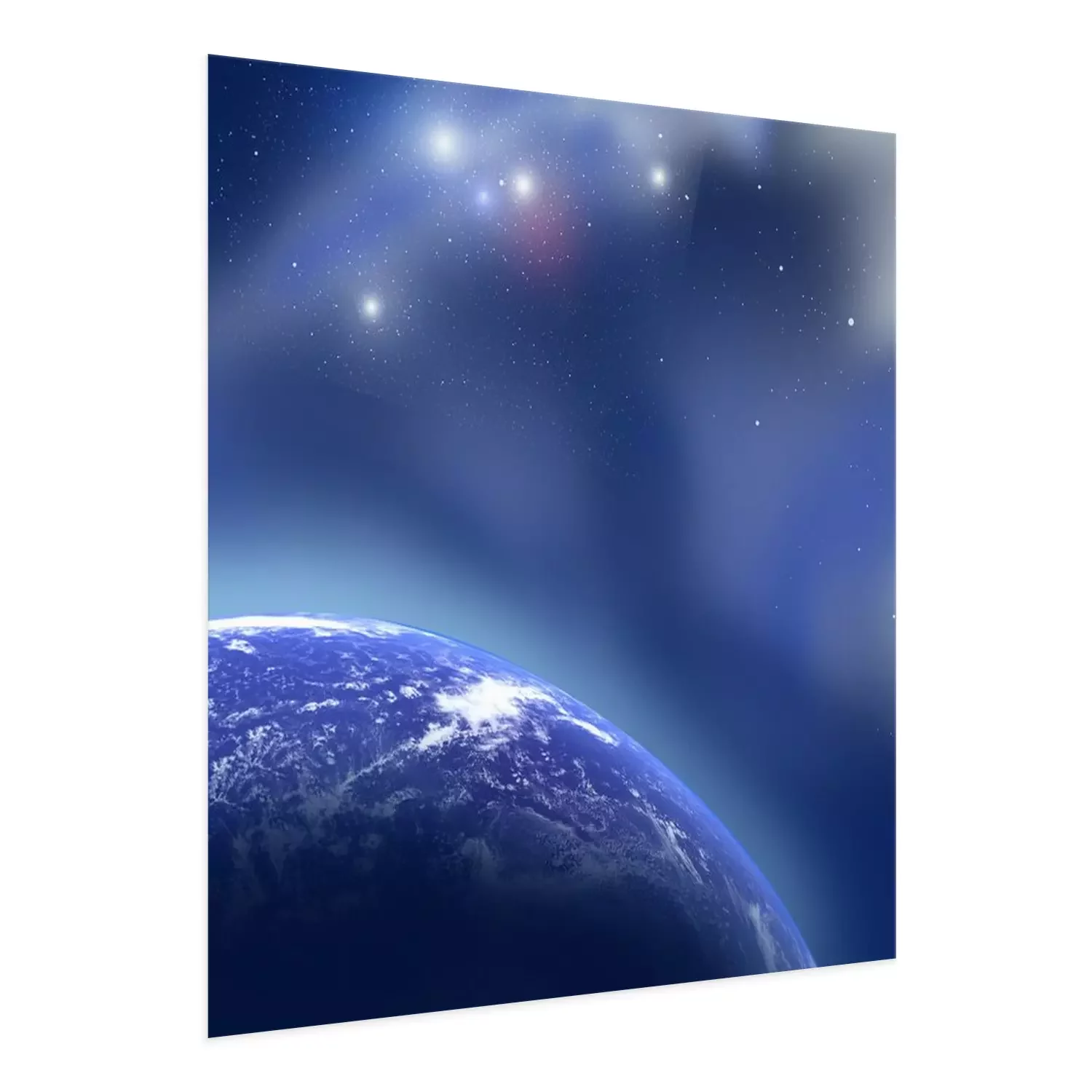 Poster: Grafische kosmos met een projectie van de planeet Aarde