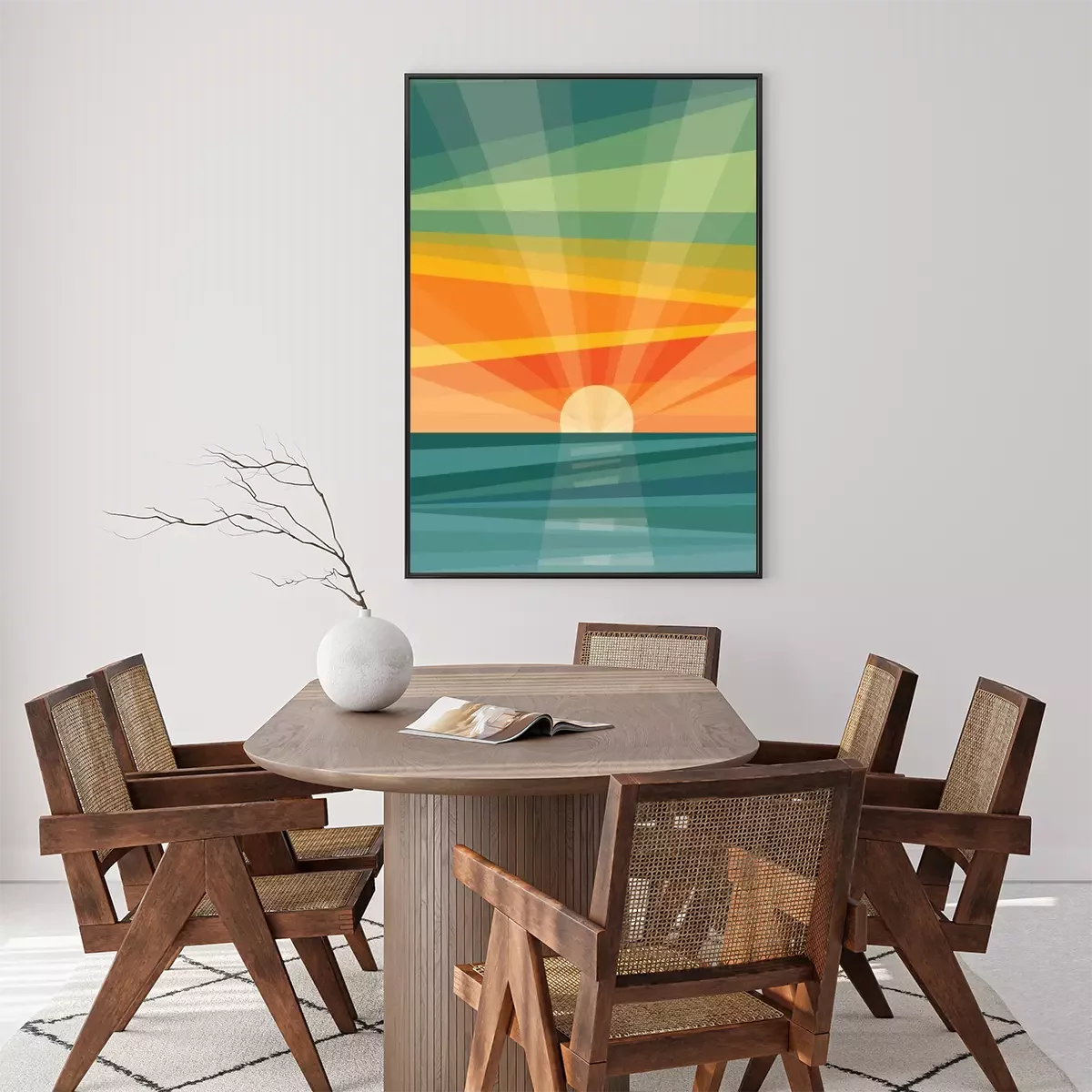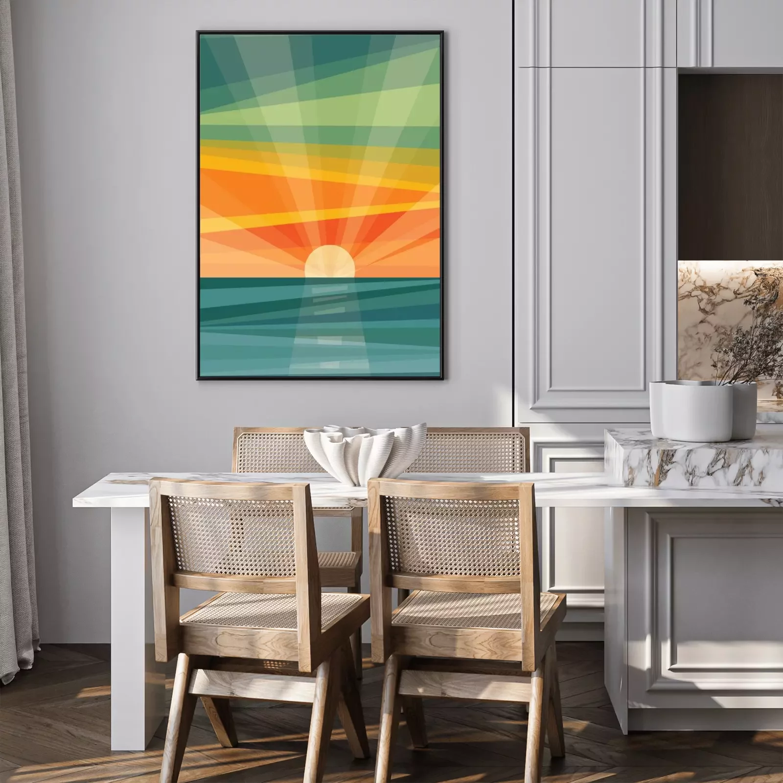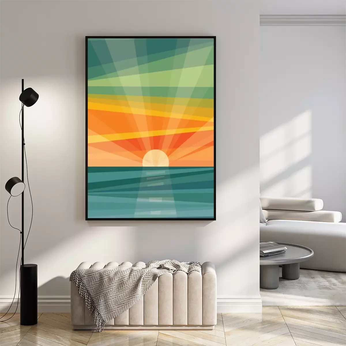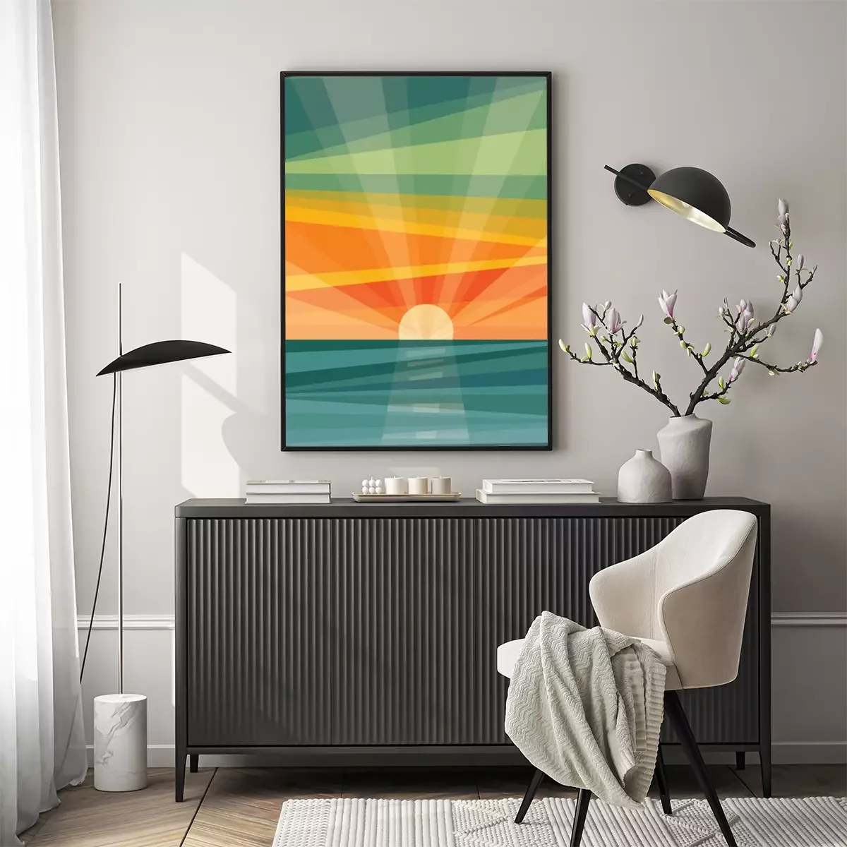 Poster: Grafische zonsopgang boven de zee