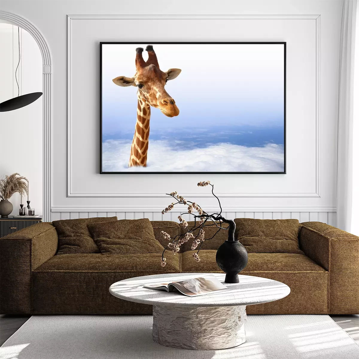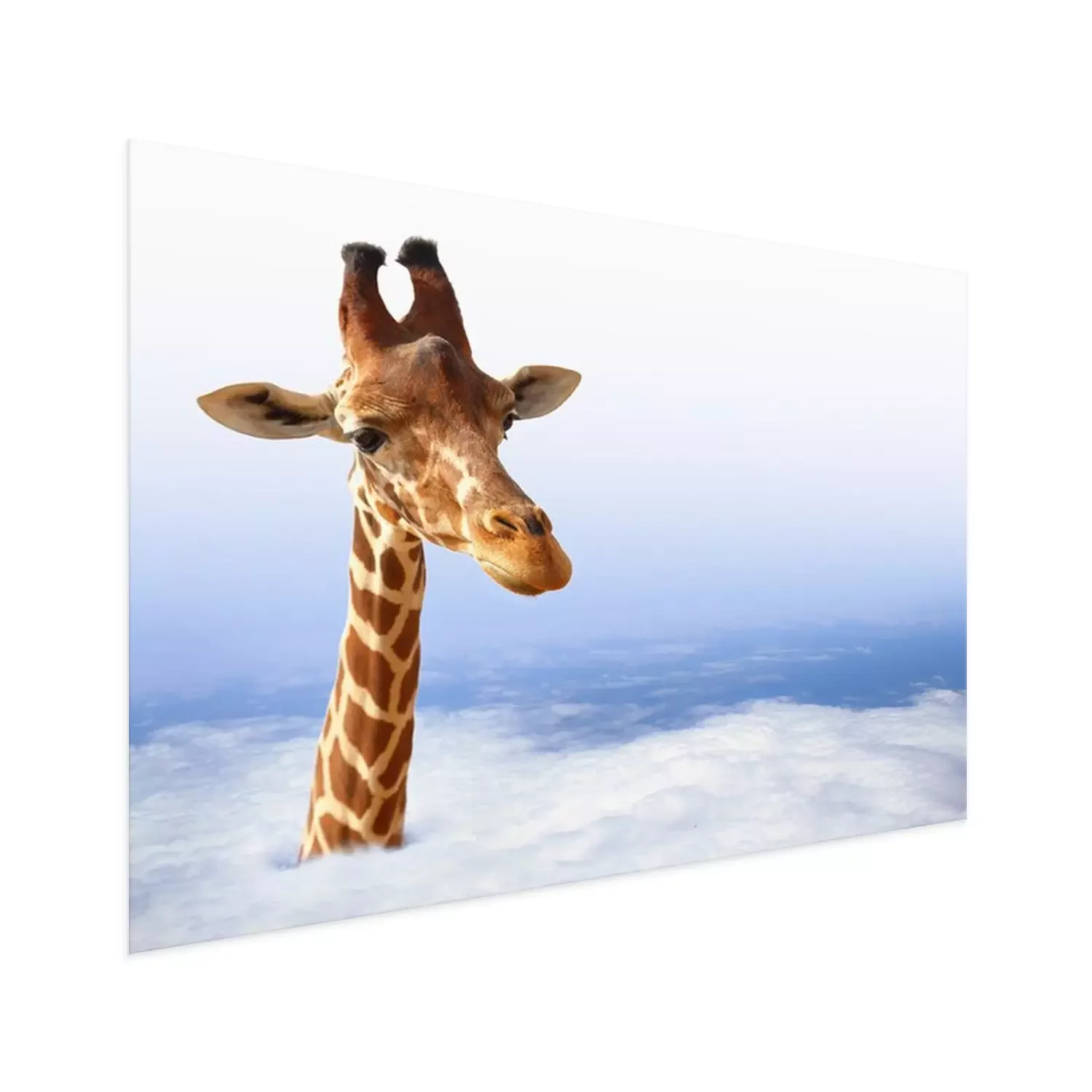 Poster: Grappige giraf met die uit de wolken