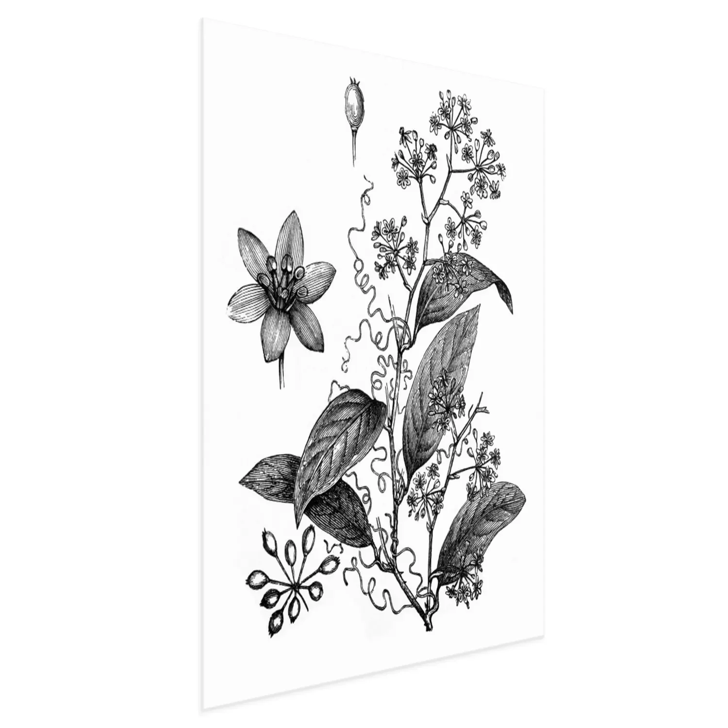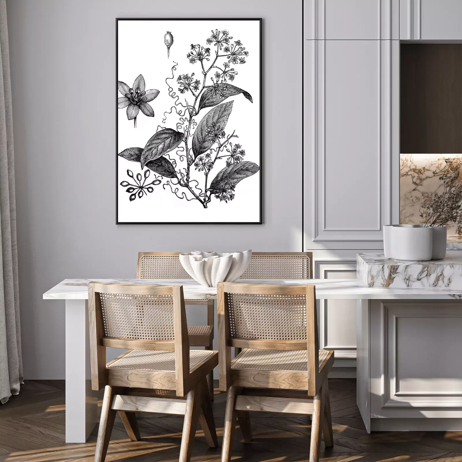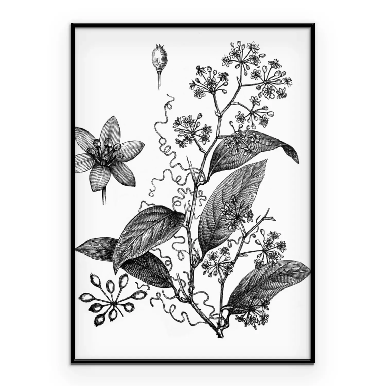 Poster Gravure van bloemen, bladeren en knoppen van kruidenplanten