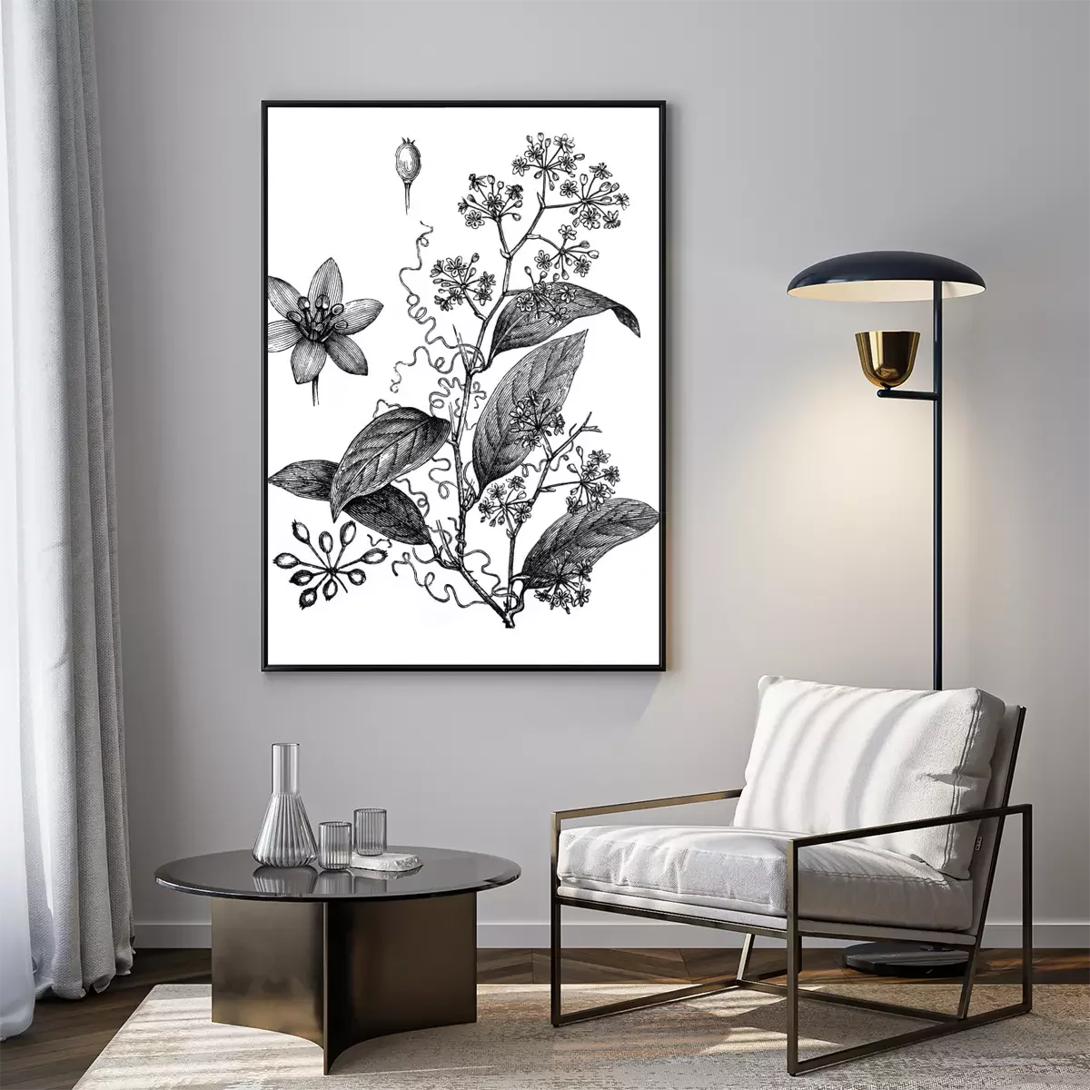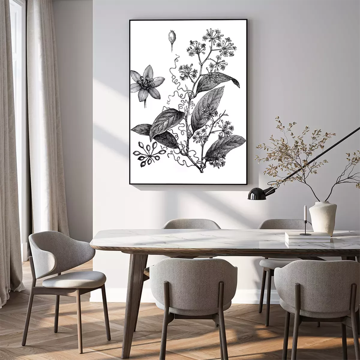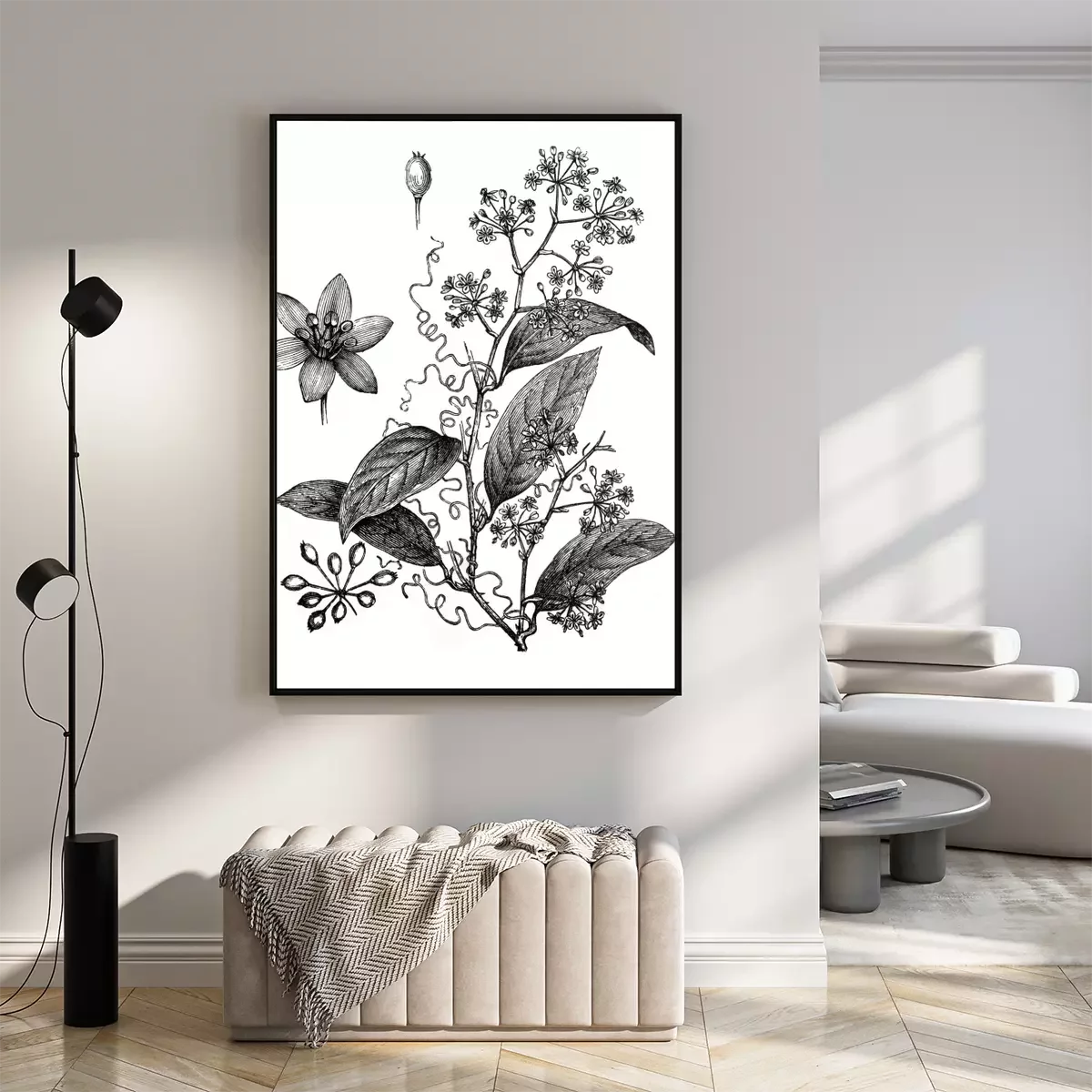 Poster Gravure van bloemen, bladeren en knoppen van kruidenplanten