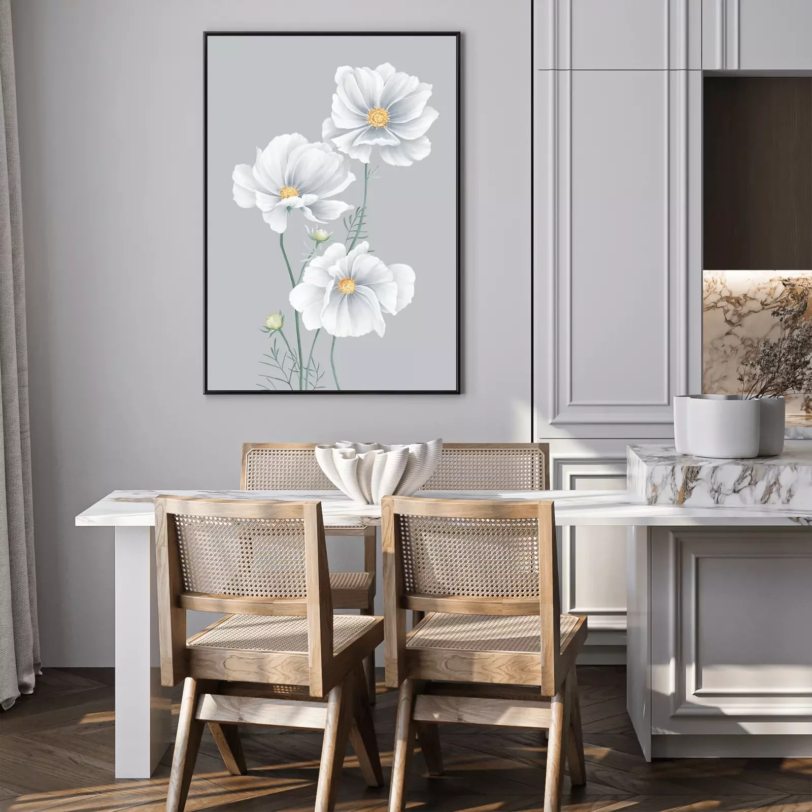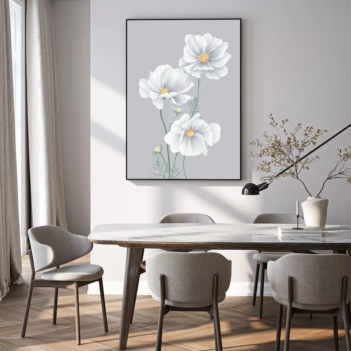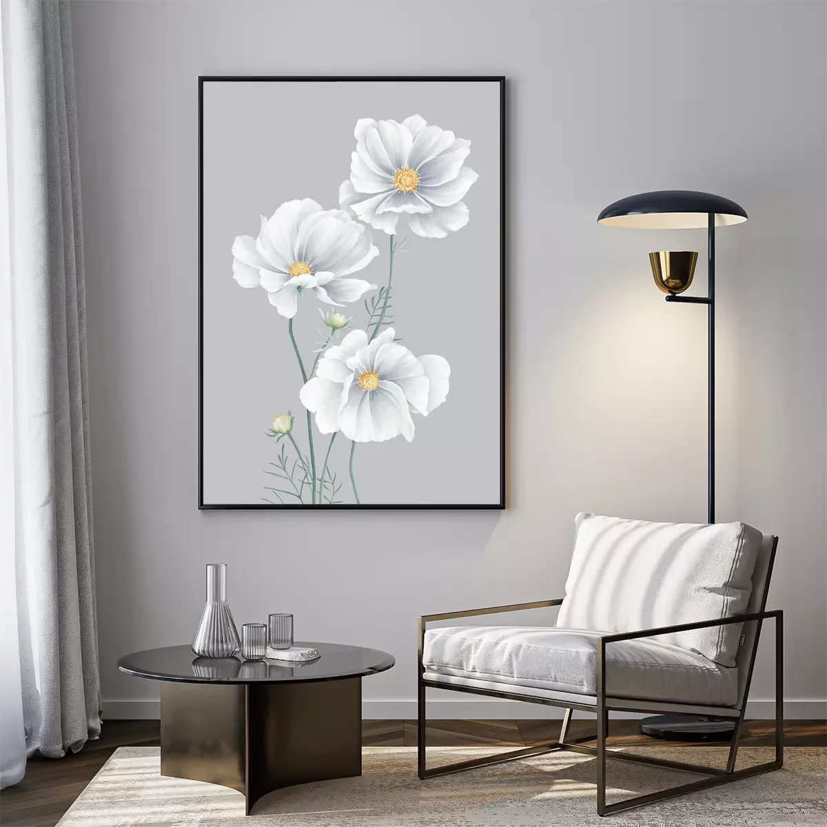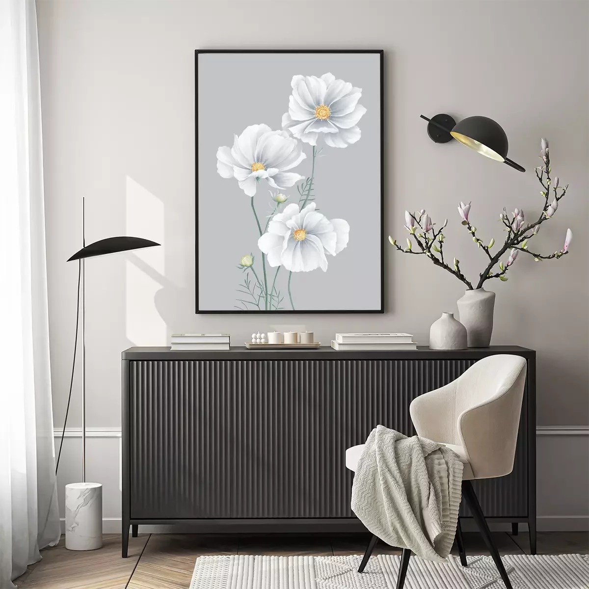 Poster: Grijze bloemblaadjes van wilde bloemen