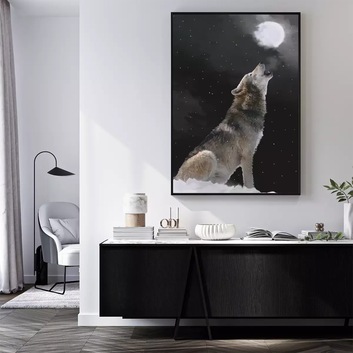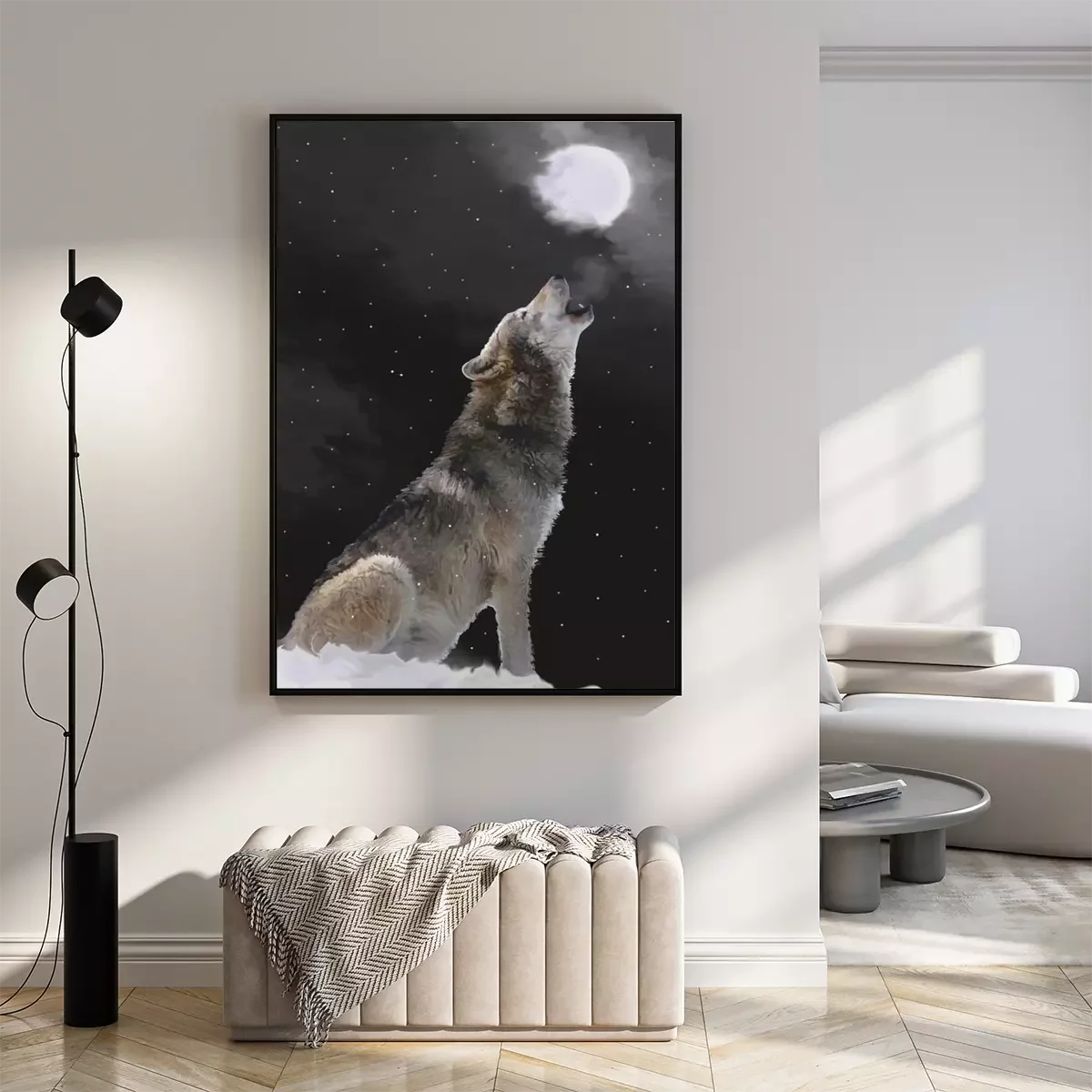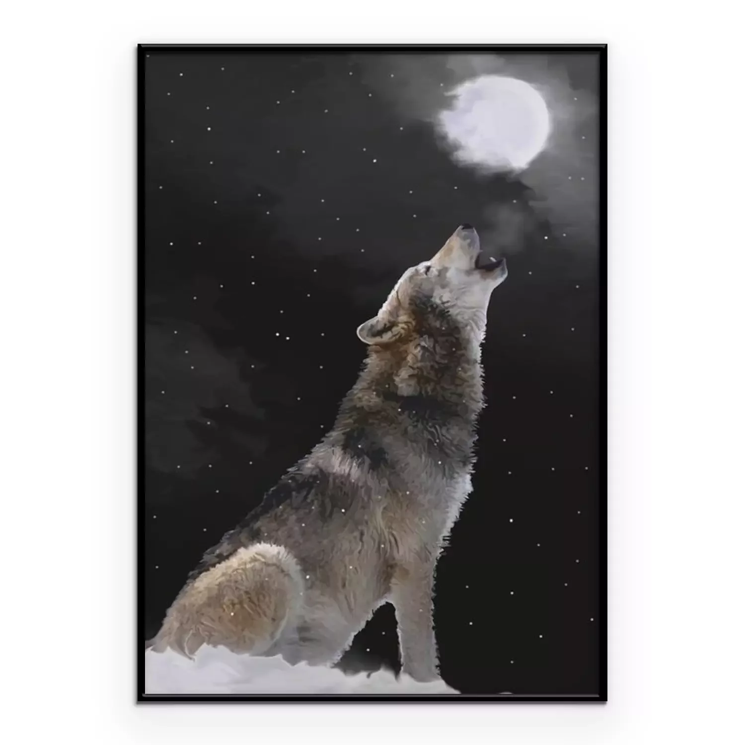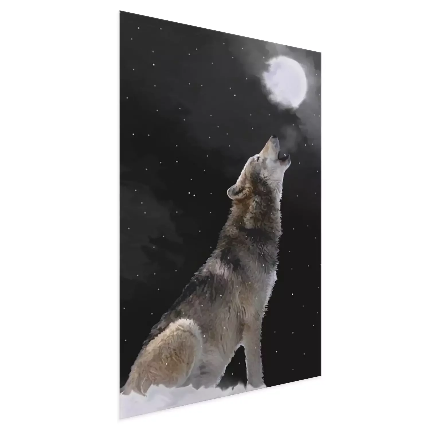 Poster: Grijze wolf huilt naar de maan