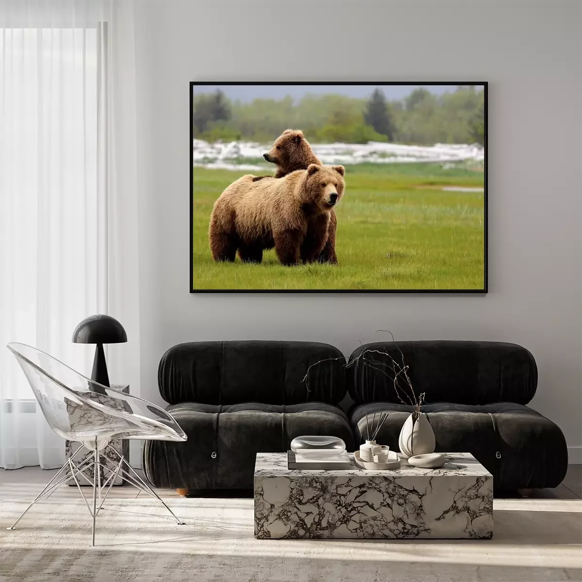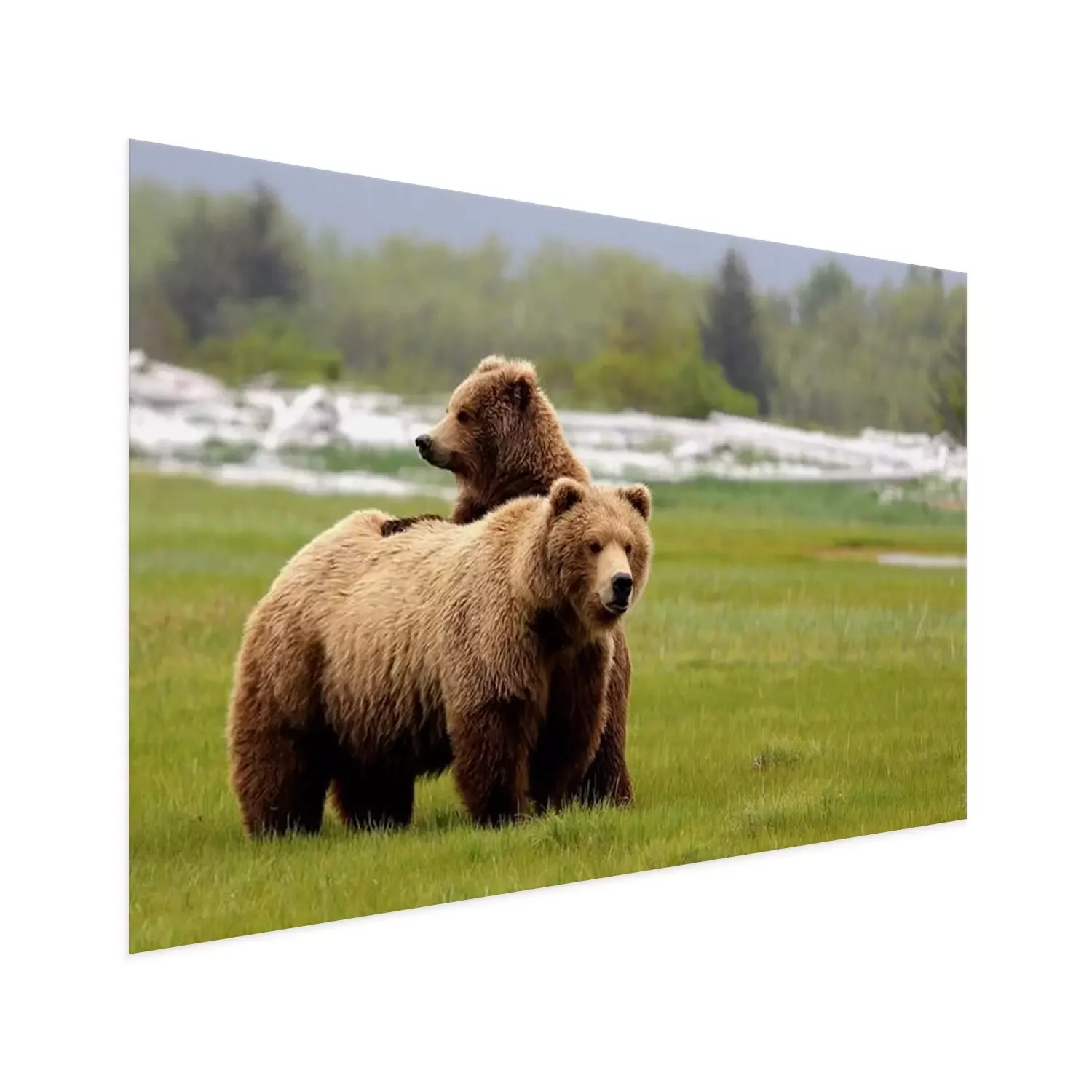 Poster Grizzly Bear Mom and Cub
